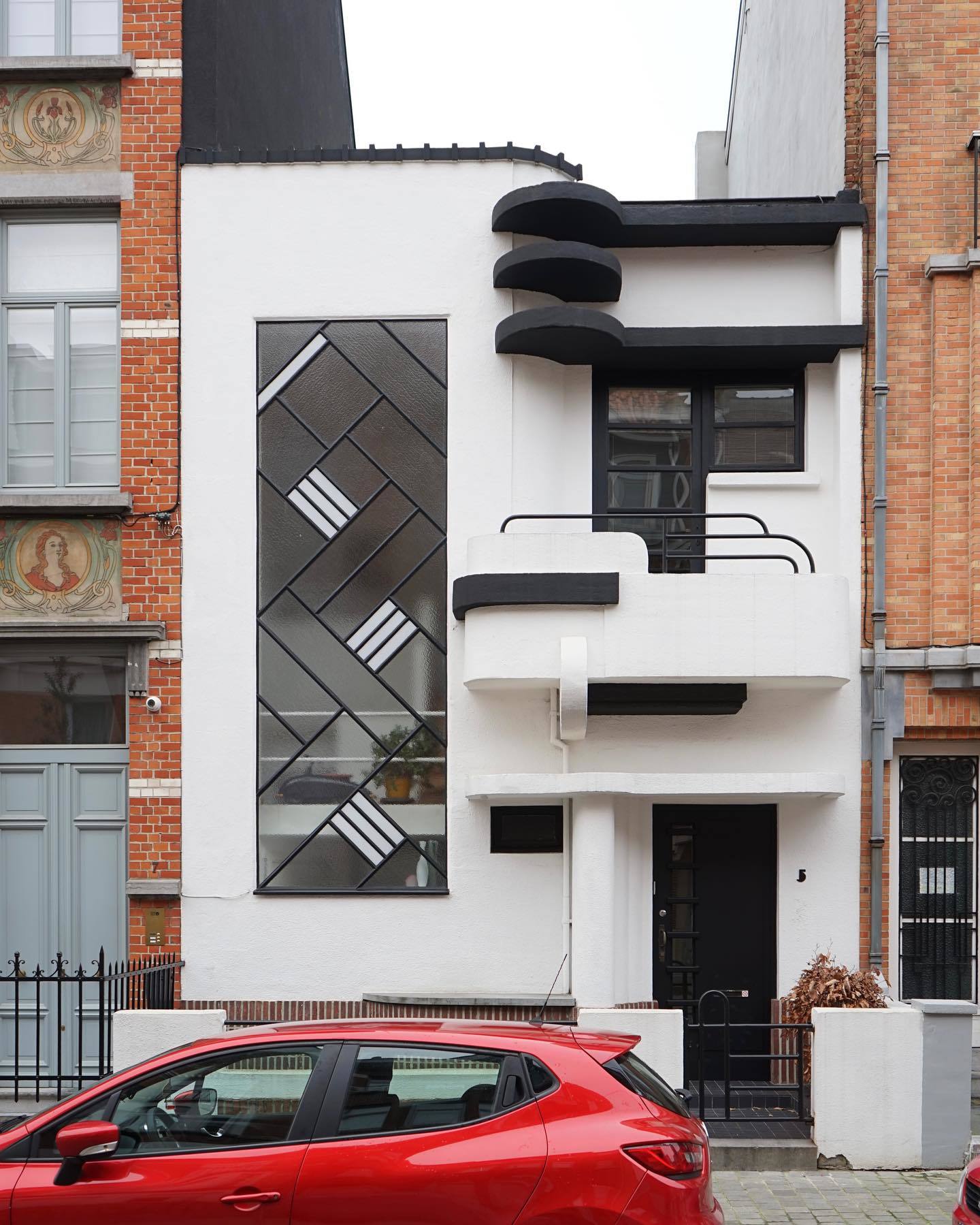 The Belgian Art Deco façade typology encompasses a wide range of styles, from floral and decorative motifs to aerodynamic and almost modernist forms. Spanning from the 1920s to the 1940s, this period is characterised by geometric patterns, relief decorations, symmetrical compositions and a variety of materials in façade design. The intricate craftsmanship on surfaces such as stone, brick, plaster, and ceramics reflects the period's artisanal expertise, while rounded corners, horizontal bands, and metal frames embody the evolving architectural language of the time.