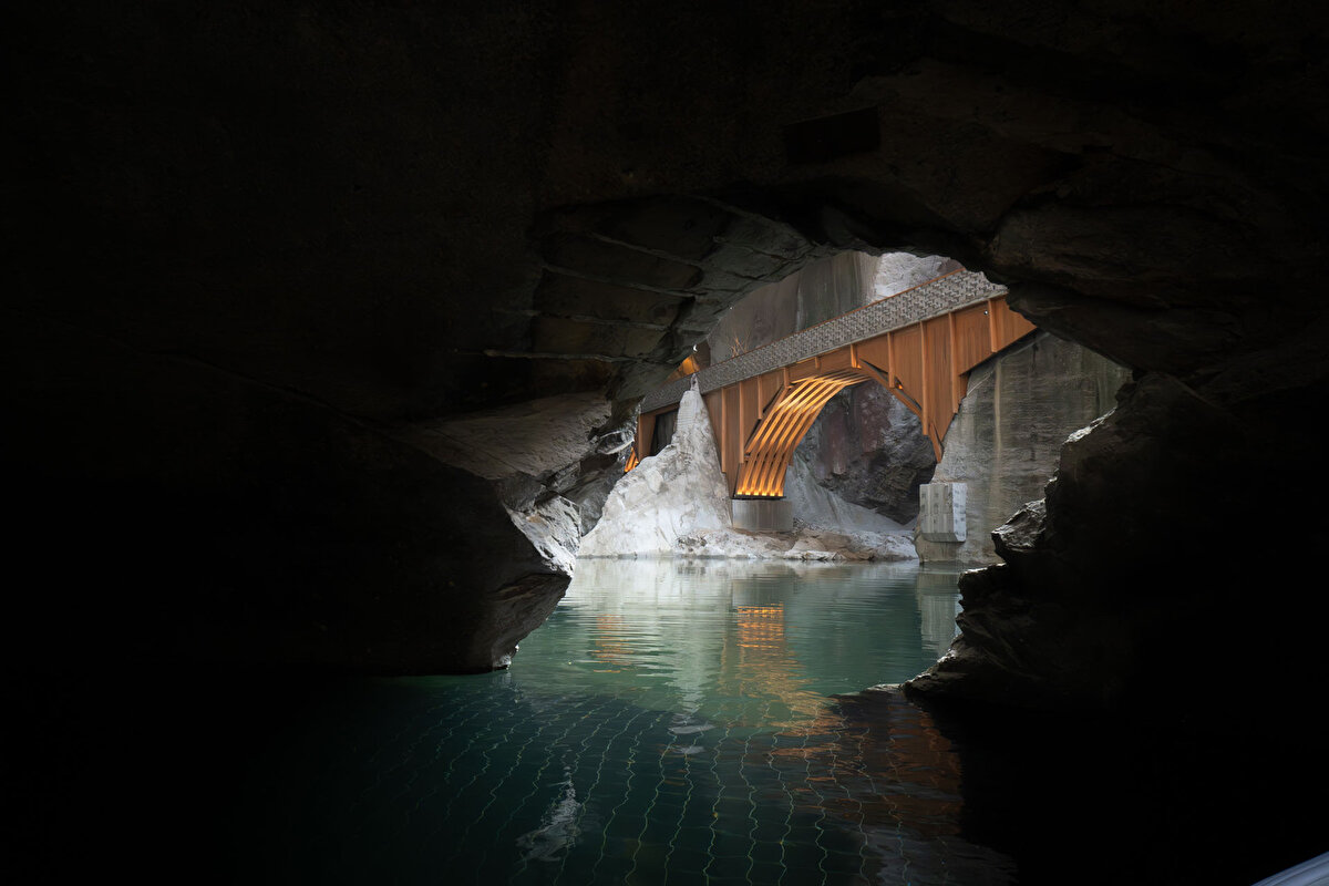 The Huangyan Stone Quarry Culture and Arts Centre, located in Taizhou on a 19,664 m² site, is being repurposed by DnA in 2024. The artificial cave system, formed by stone quarrying activities since the Tang Dynasty, is being transformed into a multi-functional urban cultural centre with minimal intervention. The design highlights the site's unique geological character through lighting strategies that illuminate the yellow mineral deposits and turquoise water pools.
