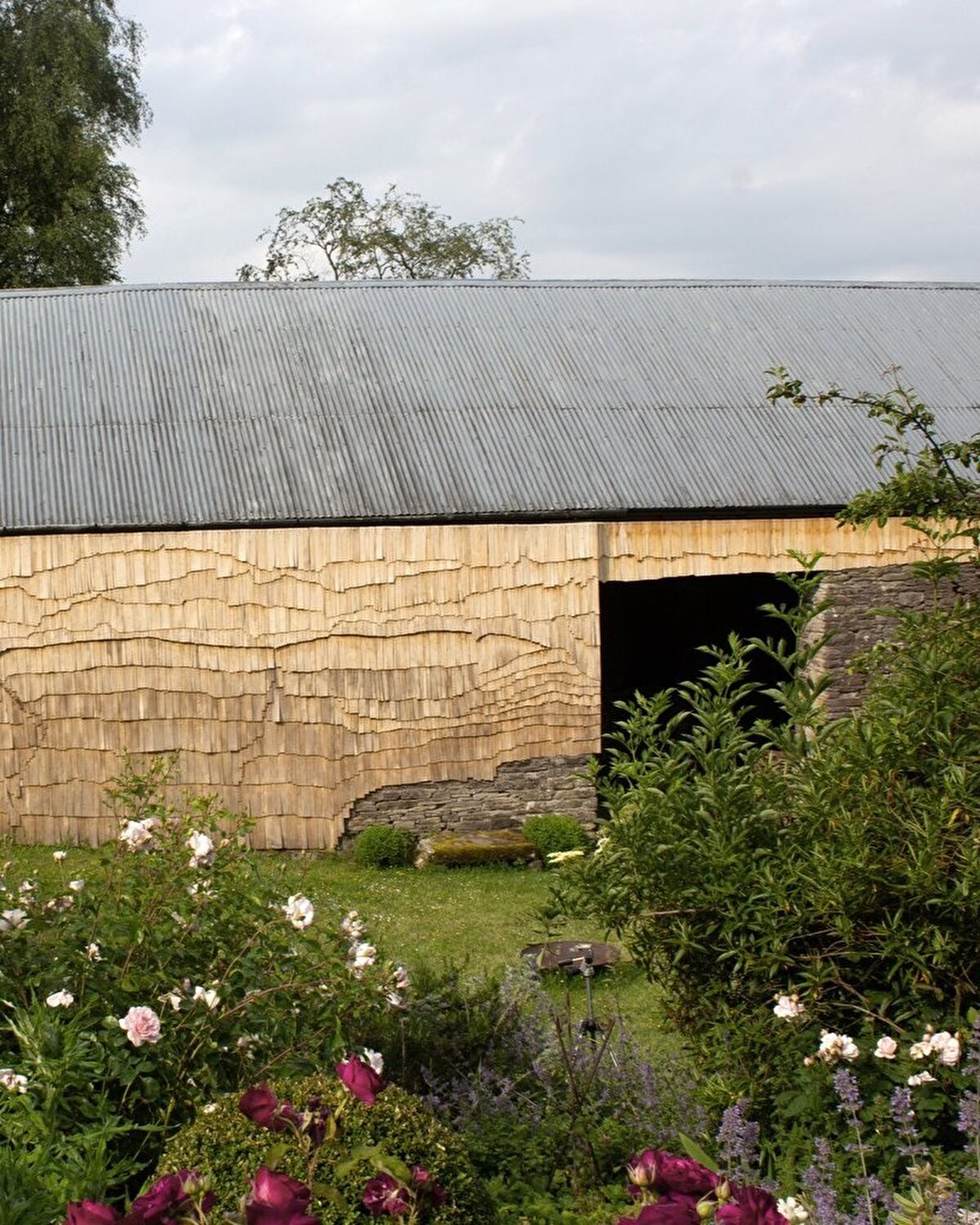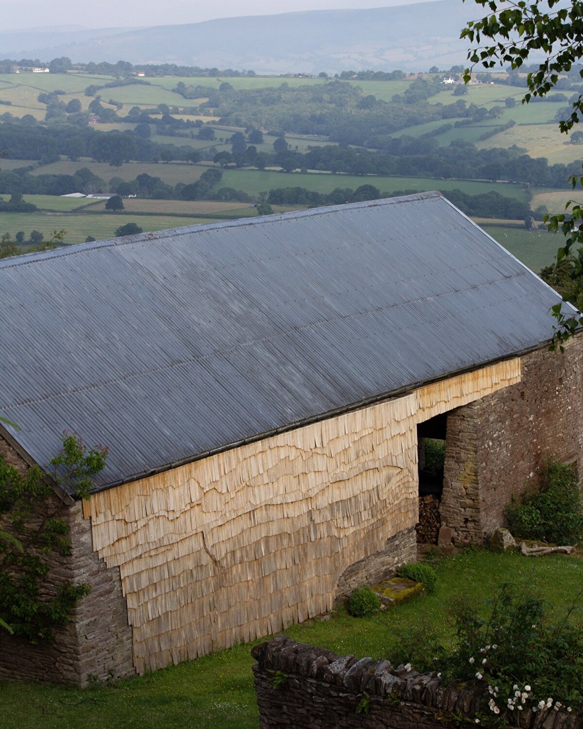 Located in Abergavenny, Monmouthshire, the building is set in untouched nature. The facade was renovated using English oak from the adjacent forest. Using a different technique, Stutchbury creates an unusual placement and design.