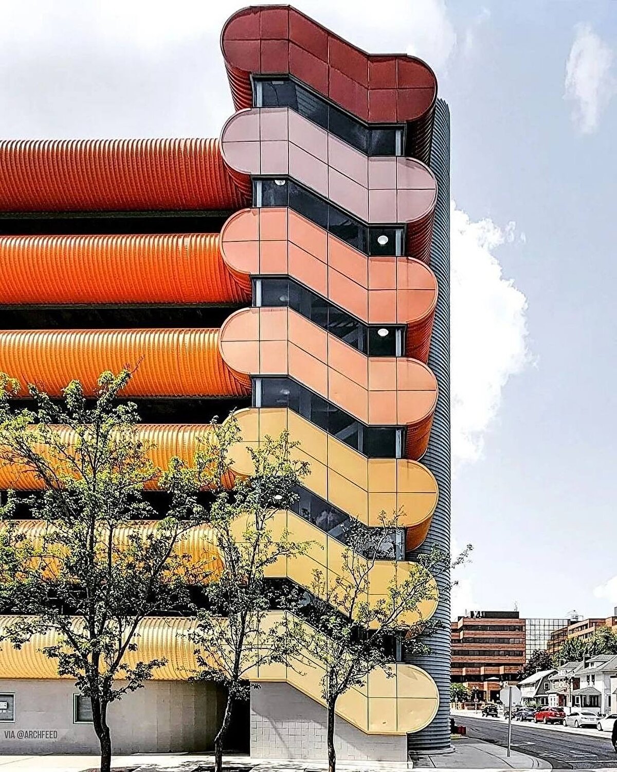 1990'ların başından beri East Lansing'de dikkat çeken yapıların başında Division Street Garage geliyor. Yerel halk arasında “Habitrail" ya da “Hamster Cage" (Hamster Kafesi) gibi lakaplarla anılıyor. Bu isimler, binanın renkli, boru benzeri dış cephe elemanlarına ve göze çarpan tasarımına gönderme yapıyor.