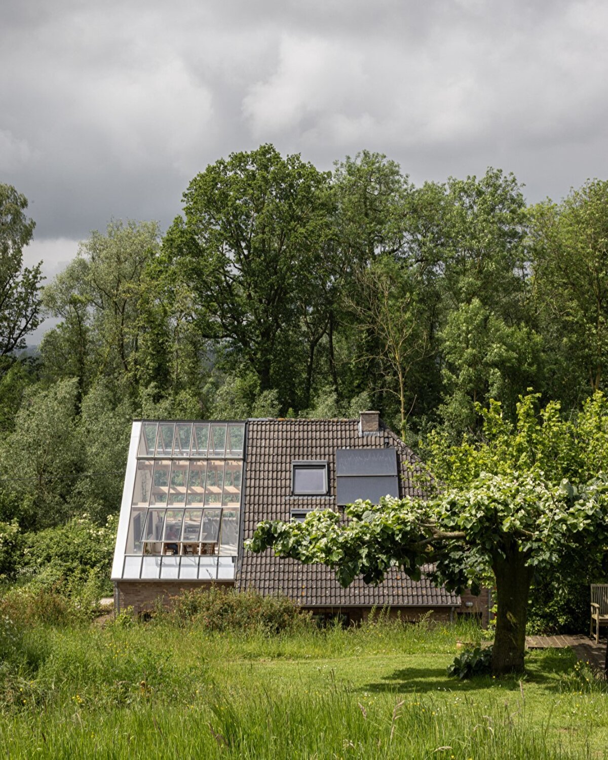 1990'lardan kalma tipik bir çiftlik evinin sahipleri, bu eve duydukları güçlü duygusal bağ nedeniyle sürdürülebilir bir yenileme talebiyle Hé! Architecten'e başvuruyor. Doğanın içinde, bu evde yaşlanmayı hayal eden çift, aynı zamanda yapının çevresiyle kopmuş olan bağını yeniden kurmayı hedefliyordu. Talepleri oldukça netti: Bir sobanın merkezde yer aldığı, açık ve samimi bir yaşam alanı oluşturmak. Bu süreçte aileleri ve dostları da projeye aktif olarak dahil oluyor.