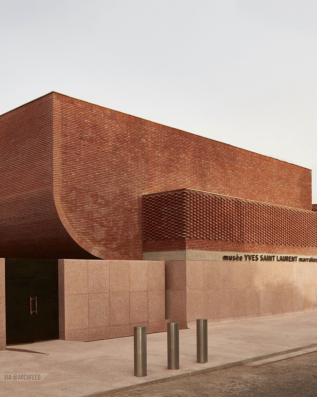 The museum is designed by Studio KO and spreads over an area of 4,000 m², next to the Jardin Majorelle. It includes 400 m² of permanent exhibition space, 150 m² of temporary exhibition space, a 130-seat auditorium, a bookshop and a research library with 5,000 books.