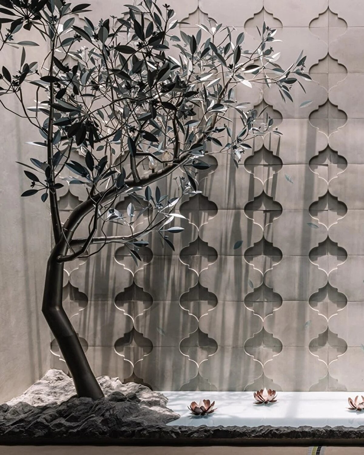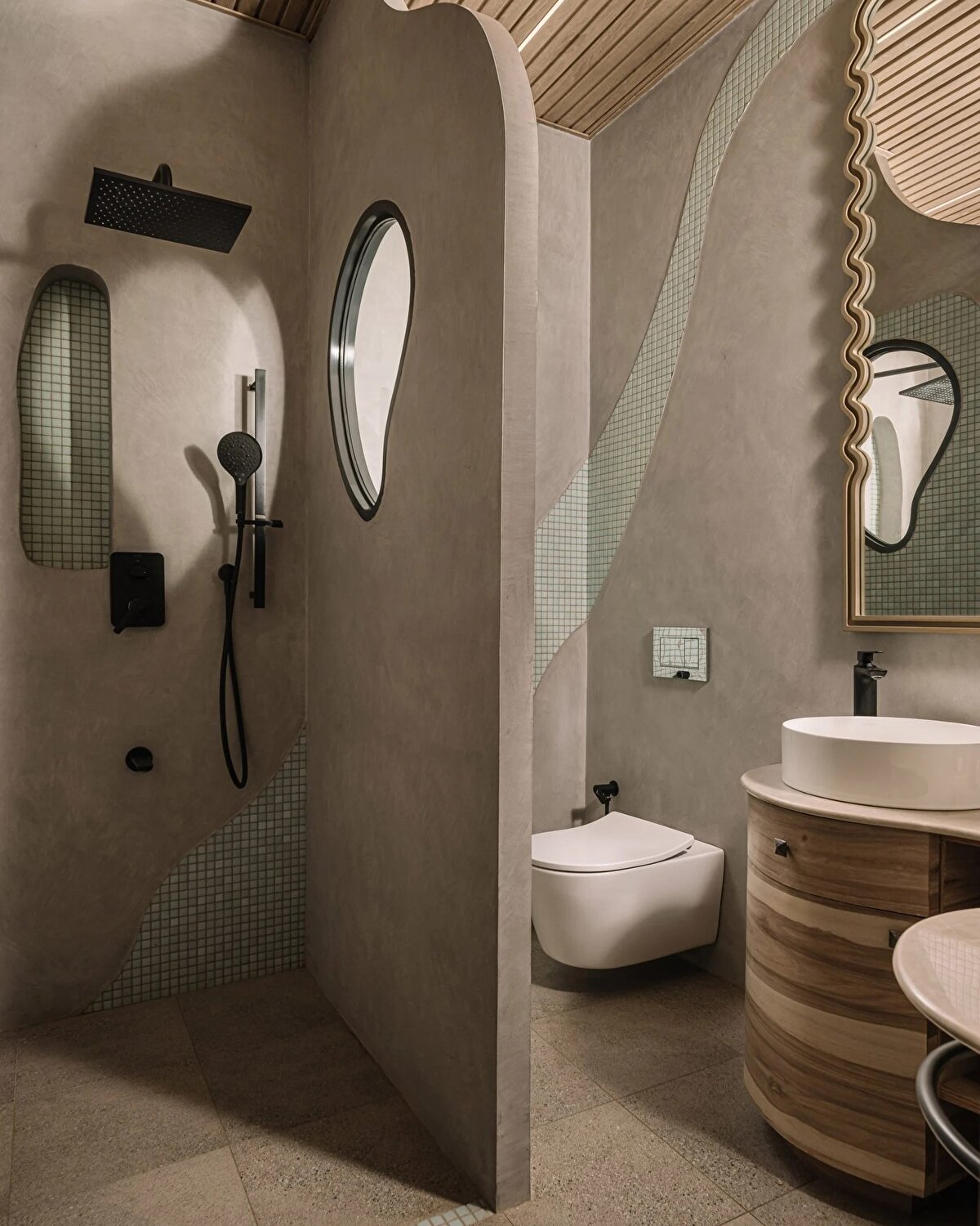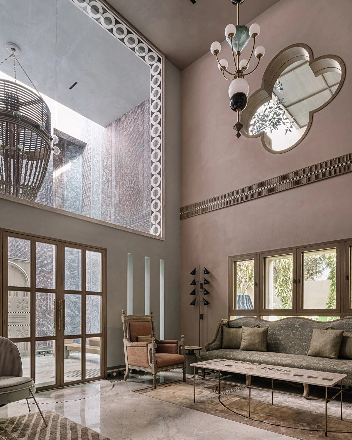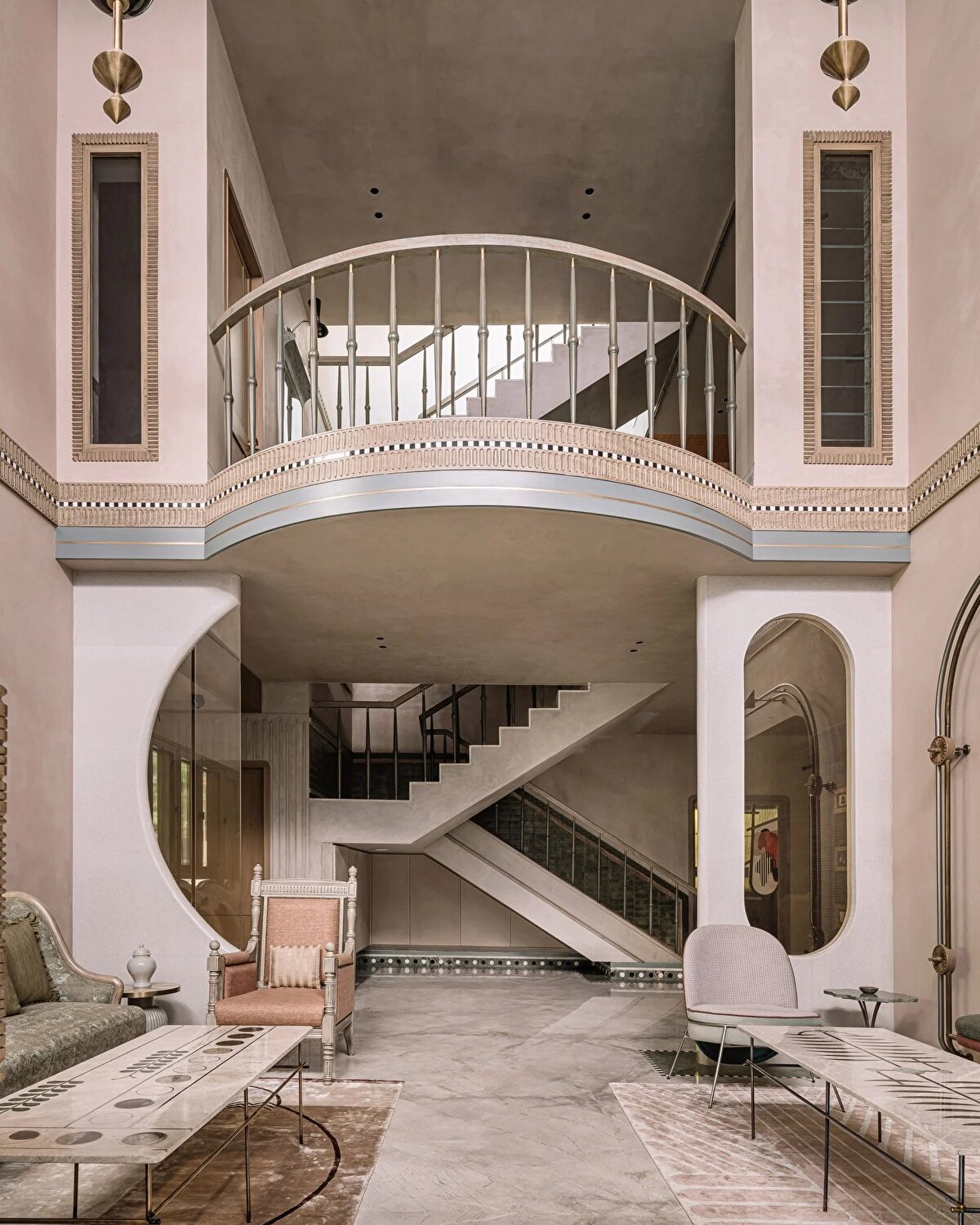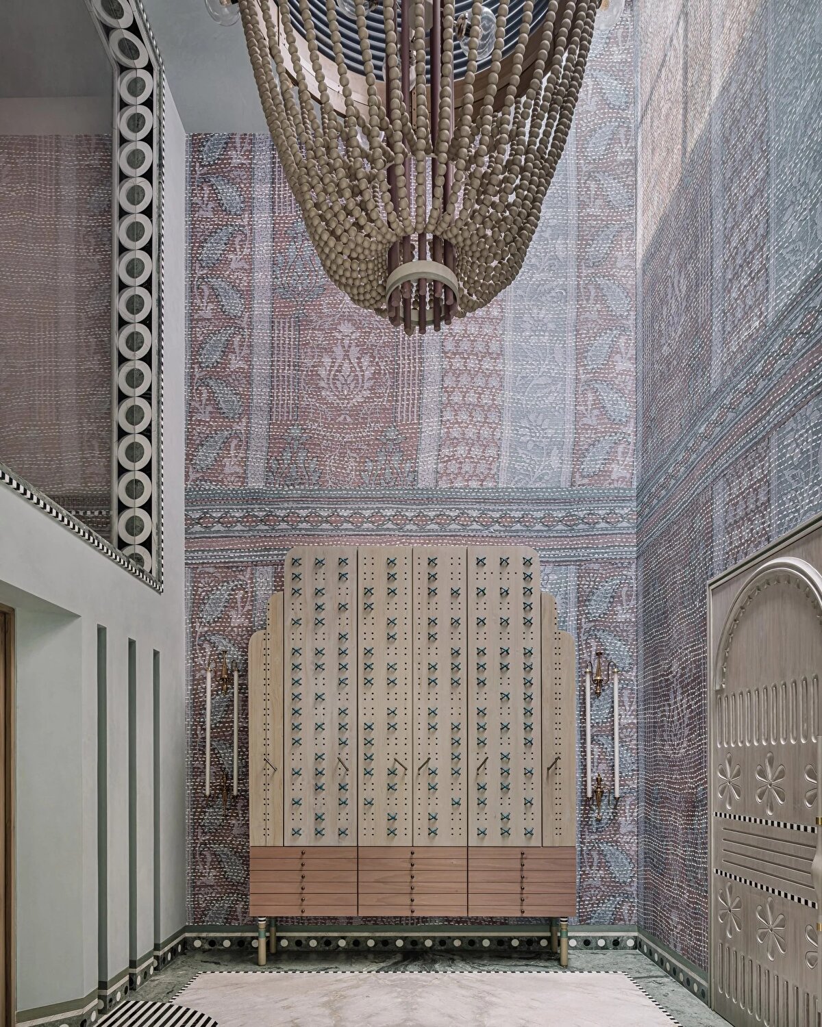 Multitude of Sins ekibi, yumuşak pastel duvar tonlarıyla evin içindeki sanatsal yoğunluğu dengelerken, her köşede geleneksel ve çağdaş işçiliği harmanlayan detaylar sunuyor.