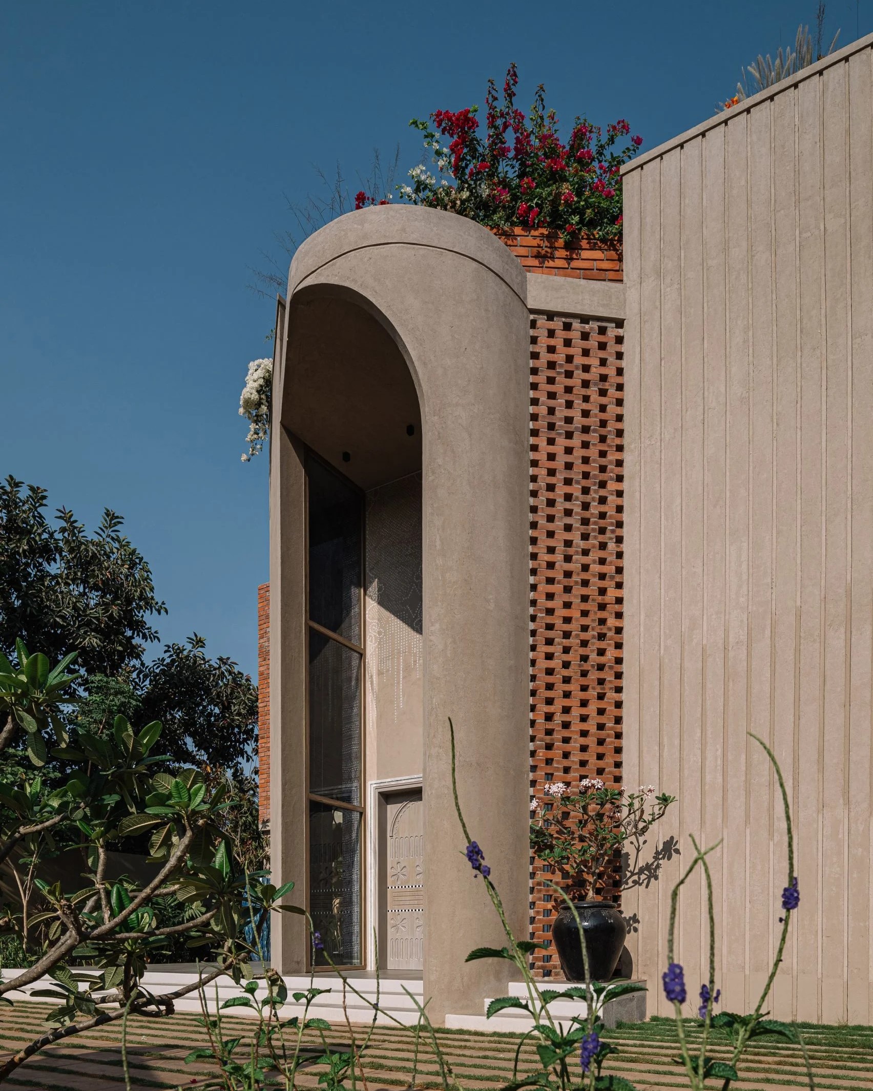Bengaluru merkezli Multitude of Sins tarafından tasarlanan bu Hint evi, ülkenin dört bir yanından 200 zanaatkarın iş birliğiyle hayat buluyor. "Pennyroyal Tea" adı verilen, ışık dolu bu iki katlı konut, özel yapım mobilya, aydınlatma ve sanat eserleriyle bezeniyor.
