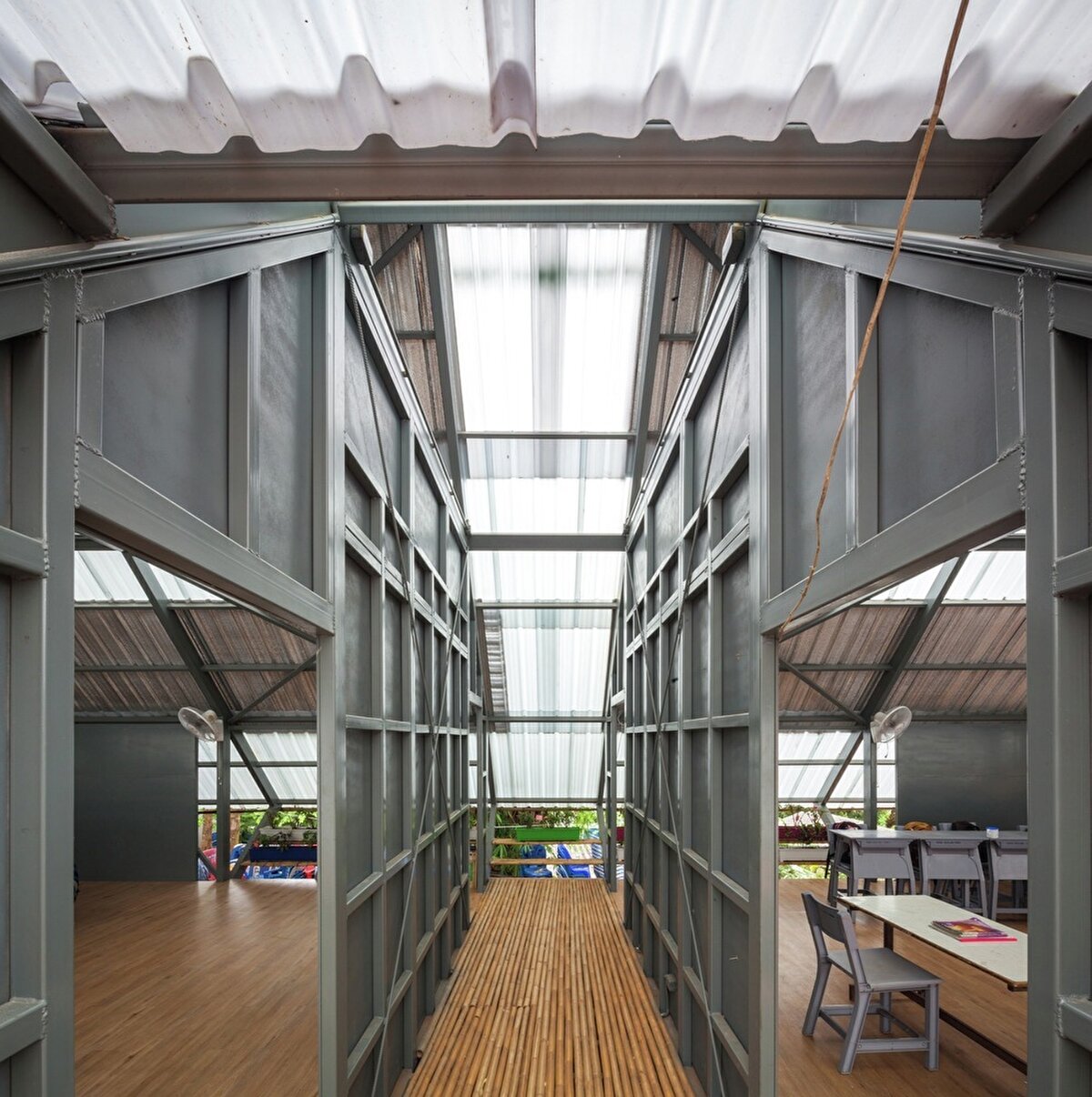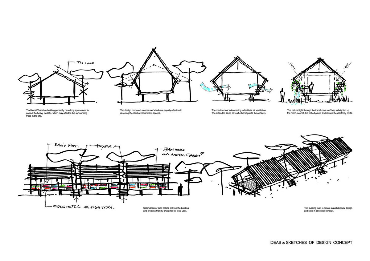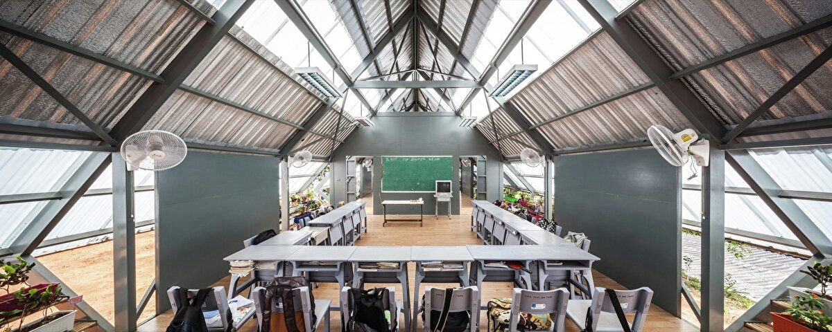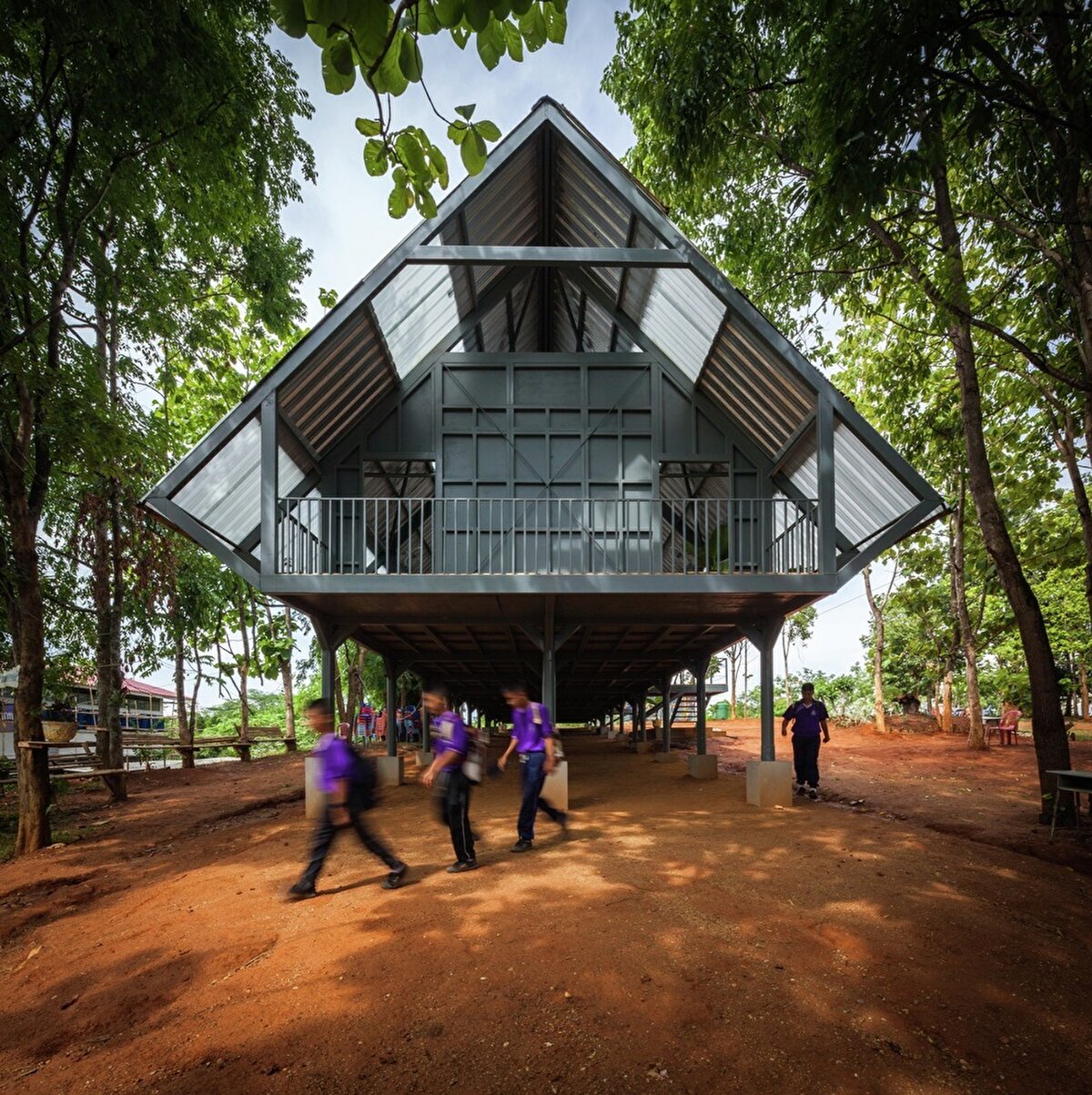 Vin Varavarn Architects'in tasarladığı Baan Huay Sarn Yaw Okulu'nun tasarım gereklilikleri, binanın depreme dayanıklı olması, yerel işçiler tarafından kolayca inşa edilmesi ve mümkün olduğunca düşük bütçe gerektirmesiydi.