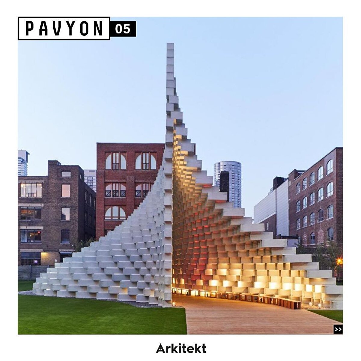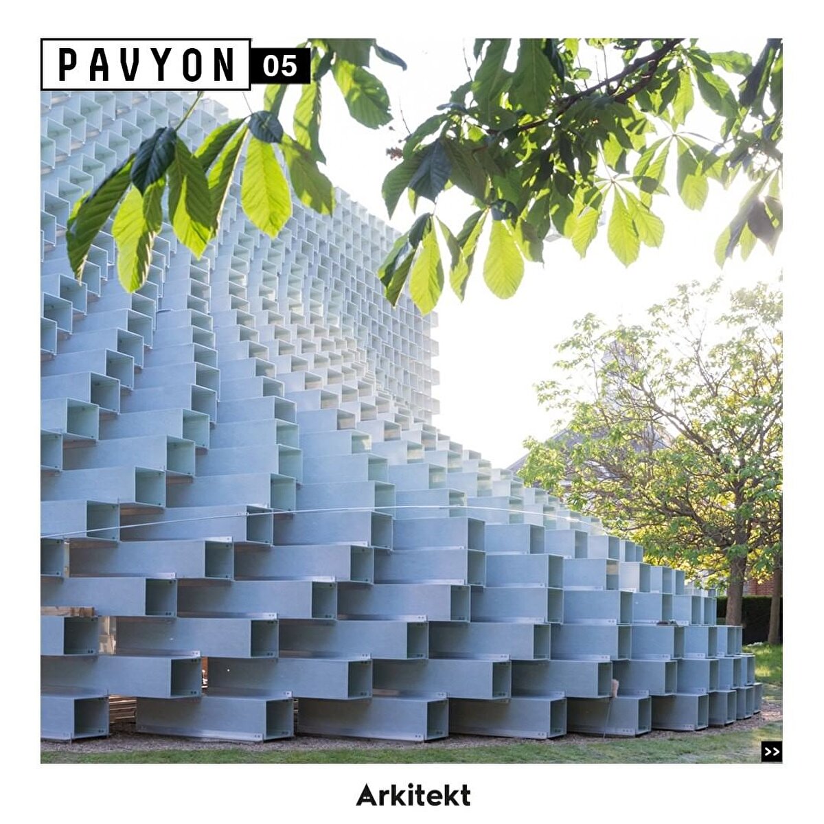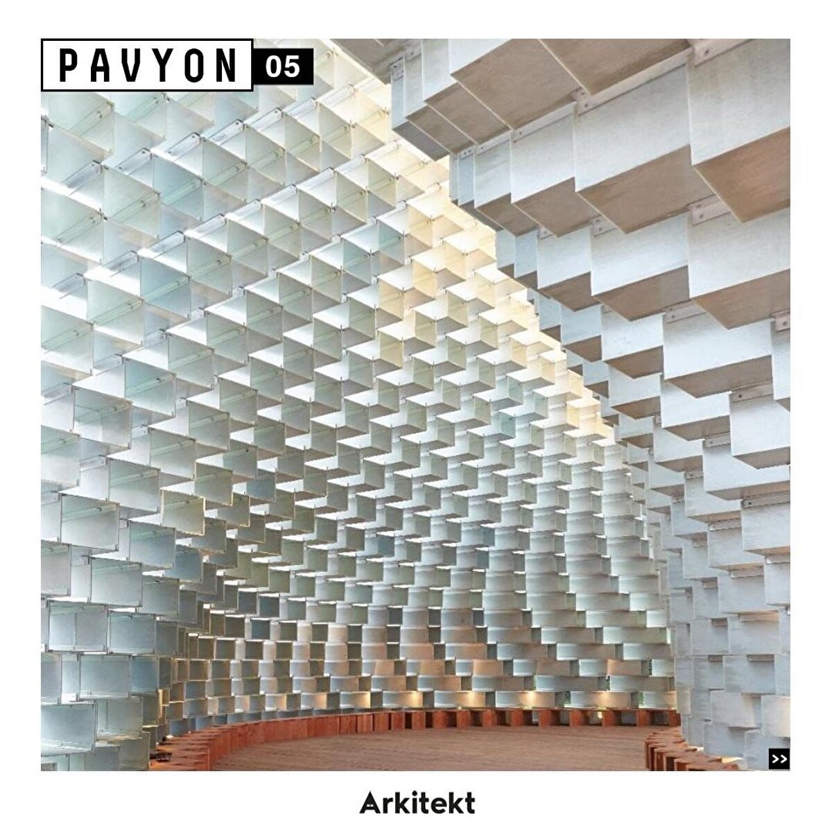 Basit geometriler kullanılarak tasarlanan heykel formundaki pavyon, 1800 adet hafif fiberglas bileşen kullanılarak inşa edildi.