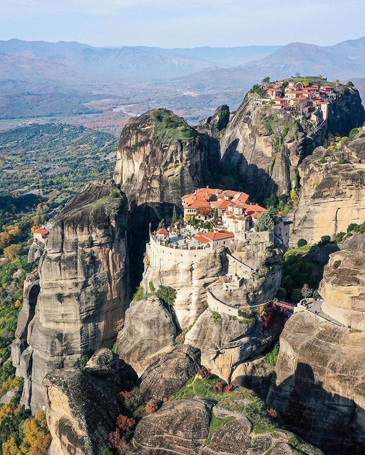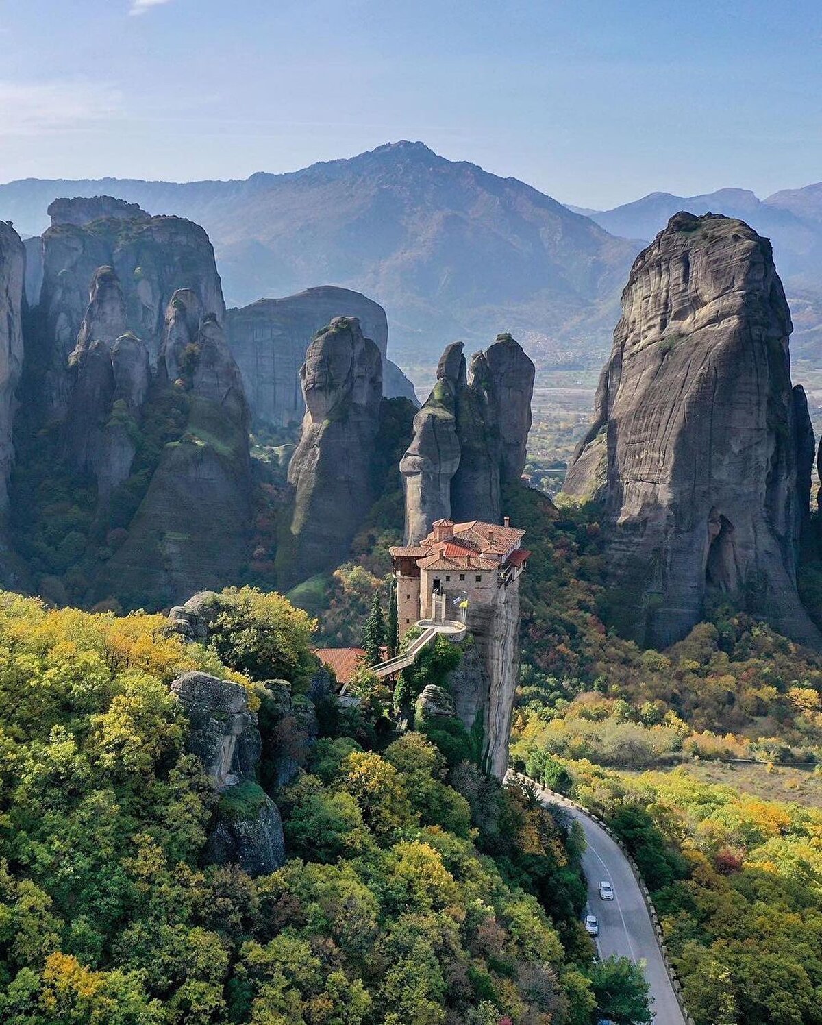 Yunanistan'daki Teselya Ovası'ndan yükselen #Meteora, 300 metre yüksekliğe kadar ulaşan, etkileyici bir yapı grubu olarak karşımıza çıkıyor.