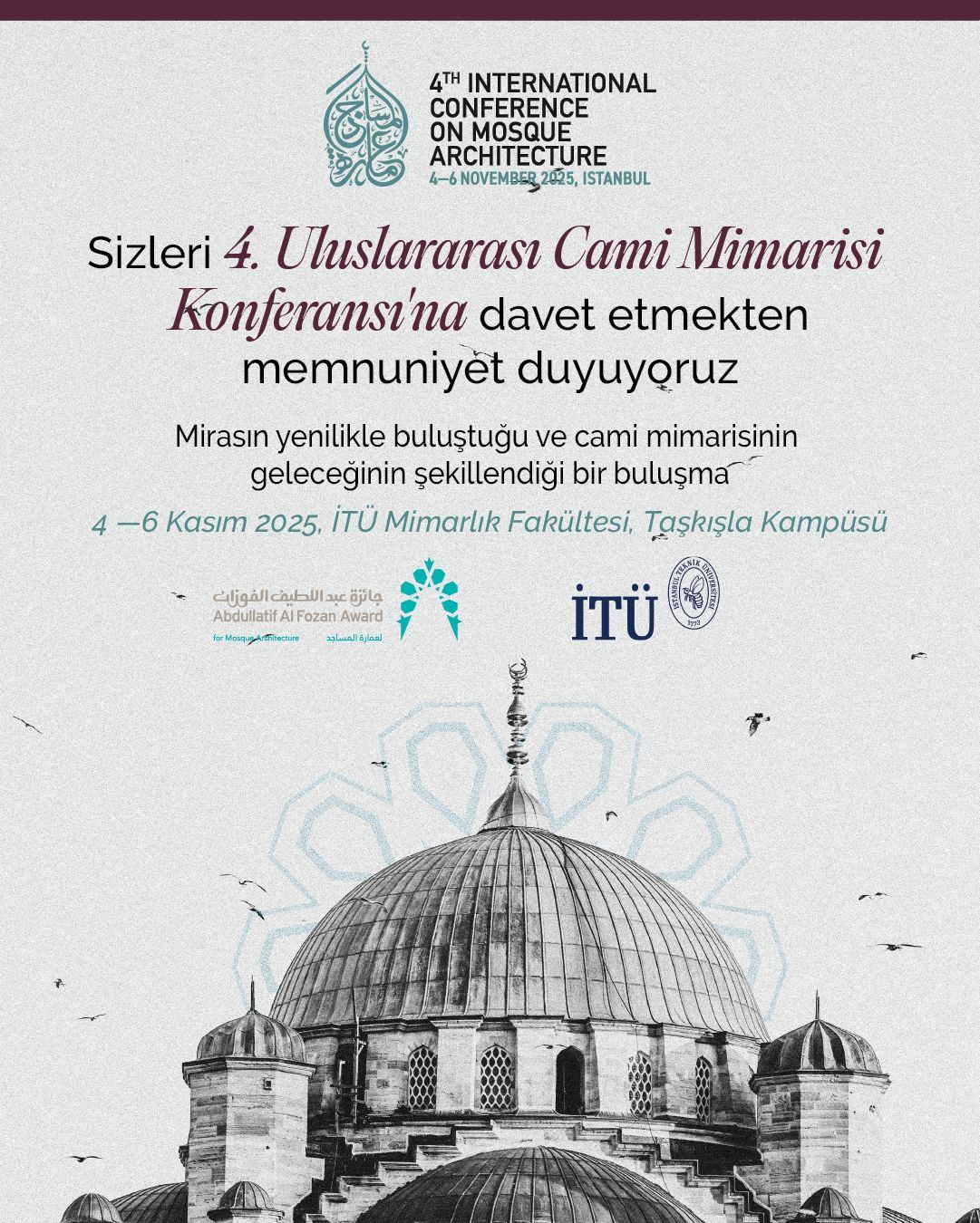 İstanbul Teknik Üniversitesi ile Abdullatif Al-Fozan Cami Mimarisi Ödülü iş birliğinde düzenlenen 4. Uluslararası Cami Mimarisi Konferansı, 4–6 Kasım 2025 tarihleri arasında İTÜ Mimarlık Fakültesi Taşkışla Kampüsü'nde gerçekleştirilecektir.