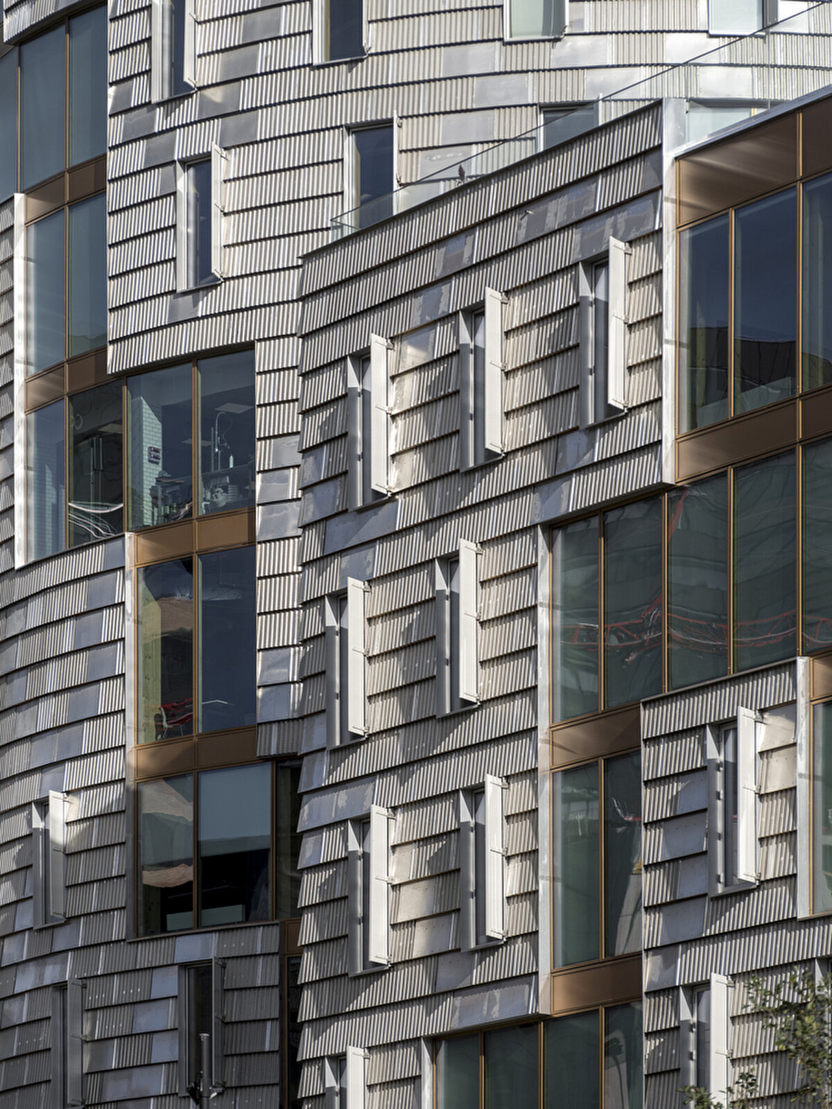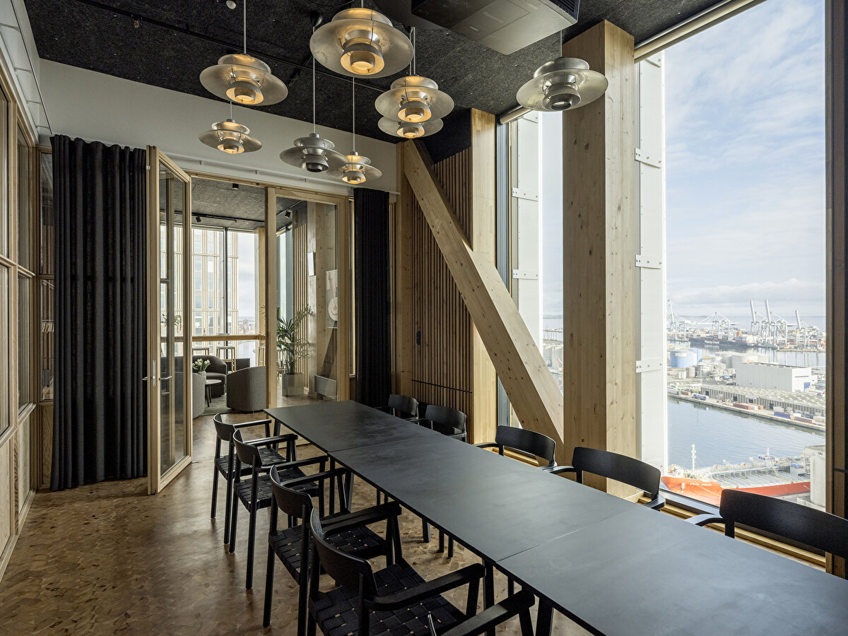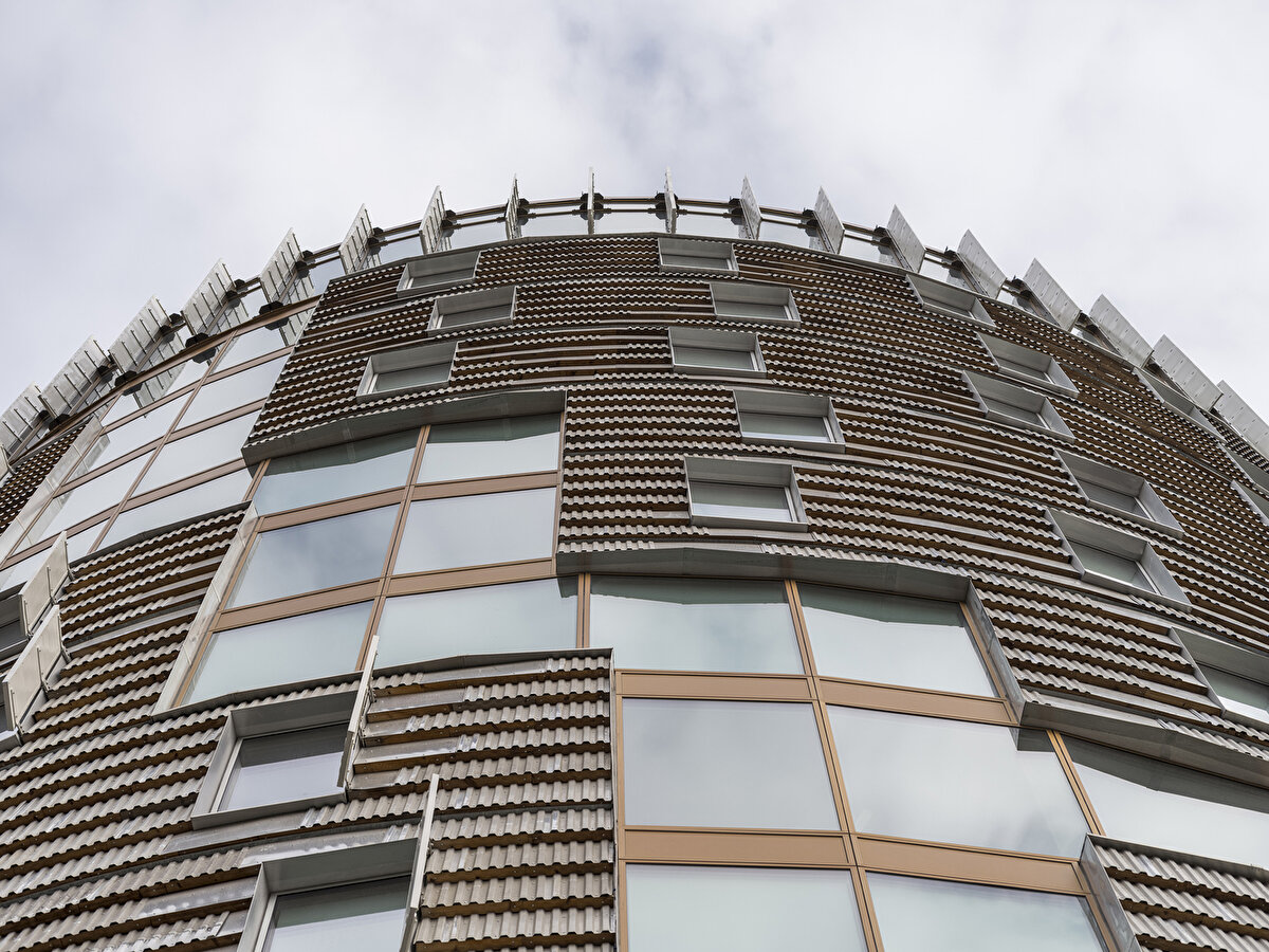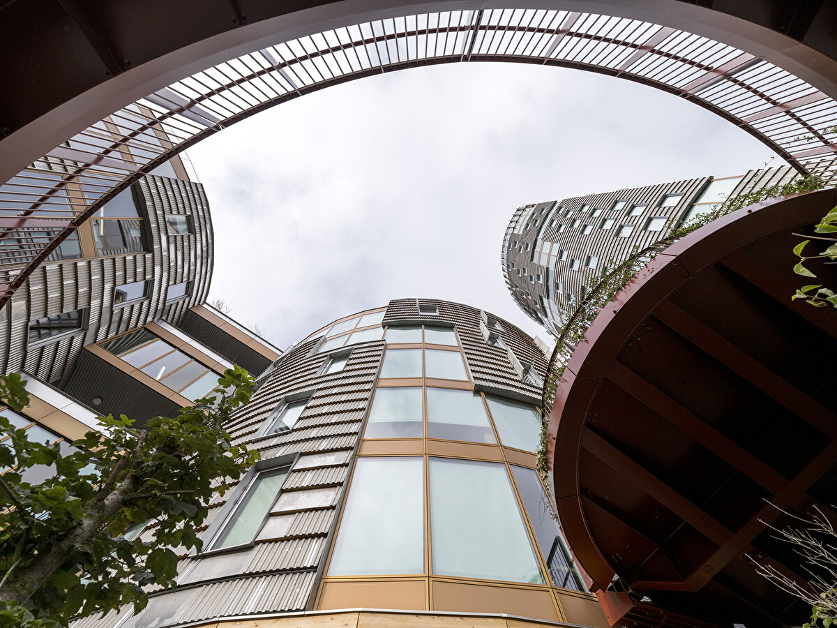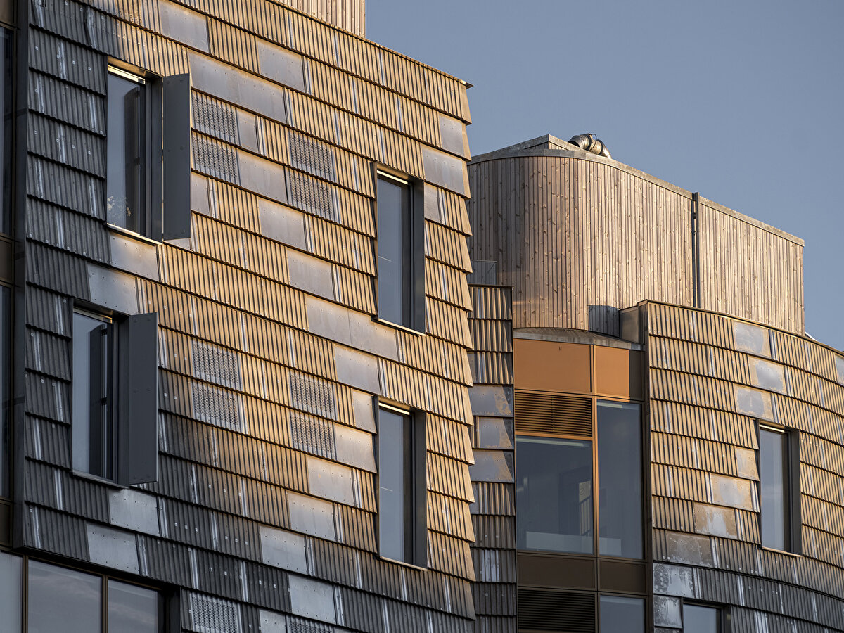 2025'te Lendager Arkitekter tarafından tasarlanan TRÆ, Aarhus'un eski endüstri limanında konumlanarak lamine ahşap kolonlar, CLT döşemeler ve düşük karbonlu beton çekirdeklerden oluşan hibrit taşıyıcı sistemiyle yüksek katlı ahşap yapıların yapısal gerekliliklerine yanıt veriyor. Geri kazanılmış alüminyum levhalarla kaplanan cephe, çevresel bağlamla uyumlu, ışık ve hava koşullarına bağlı olarak değişen bir yüzey etkisi oluşturuyor.