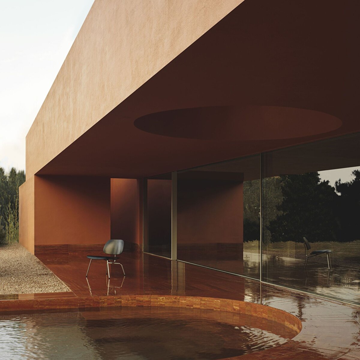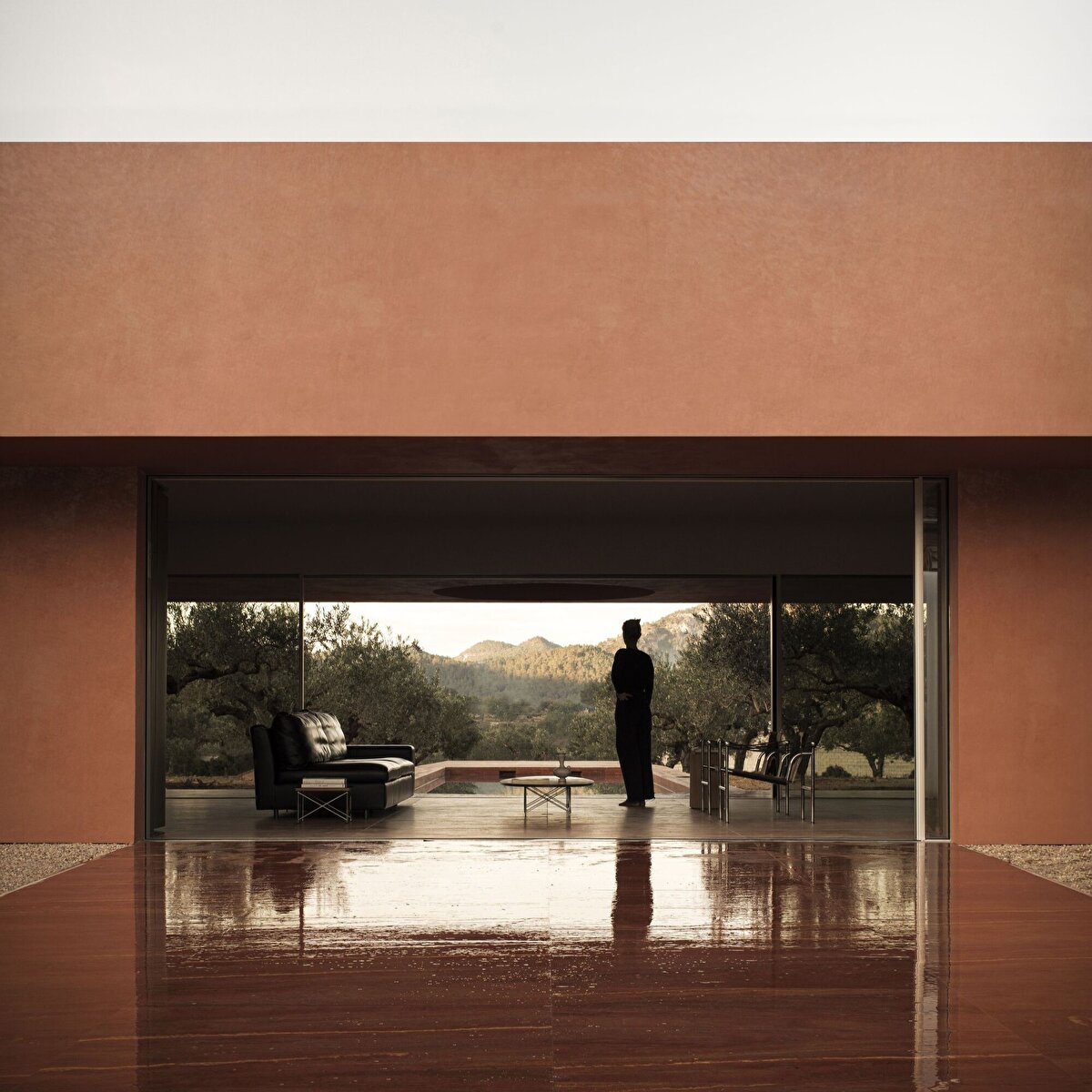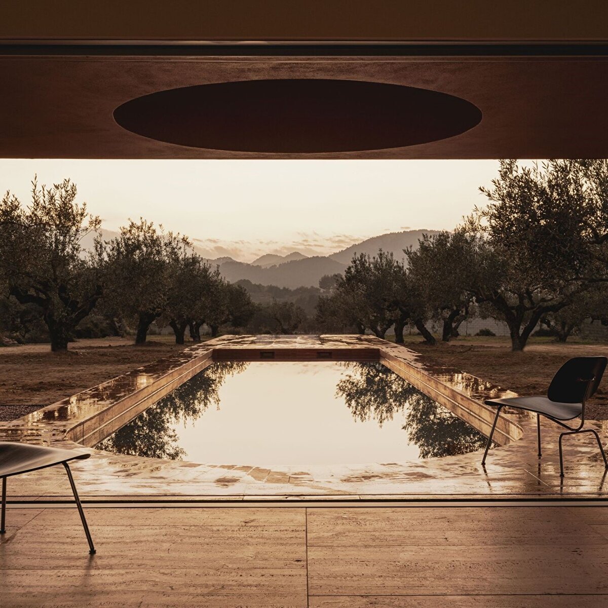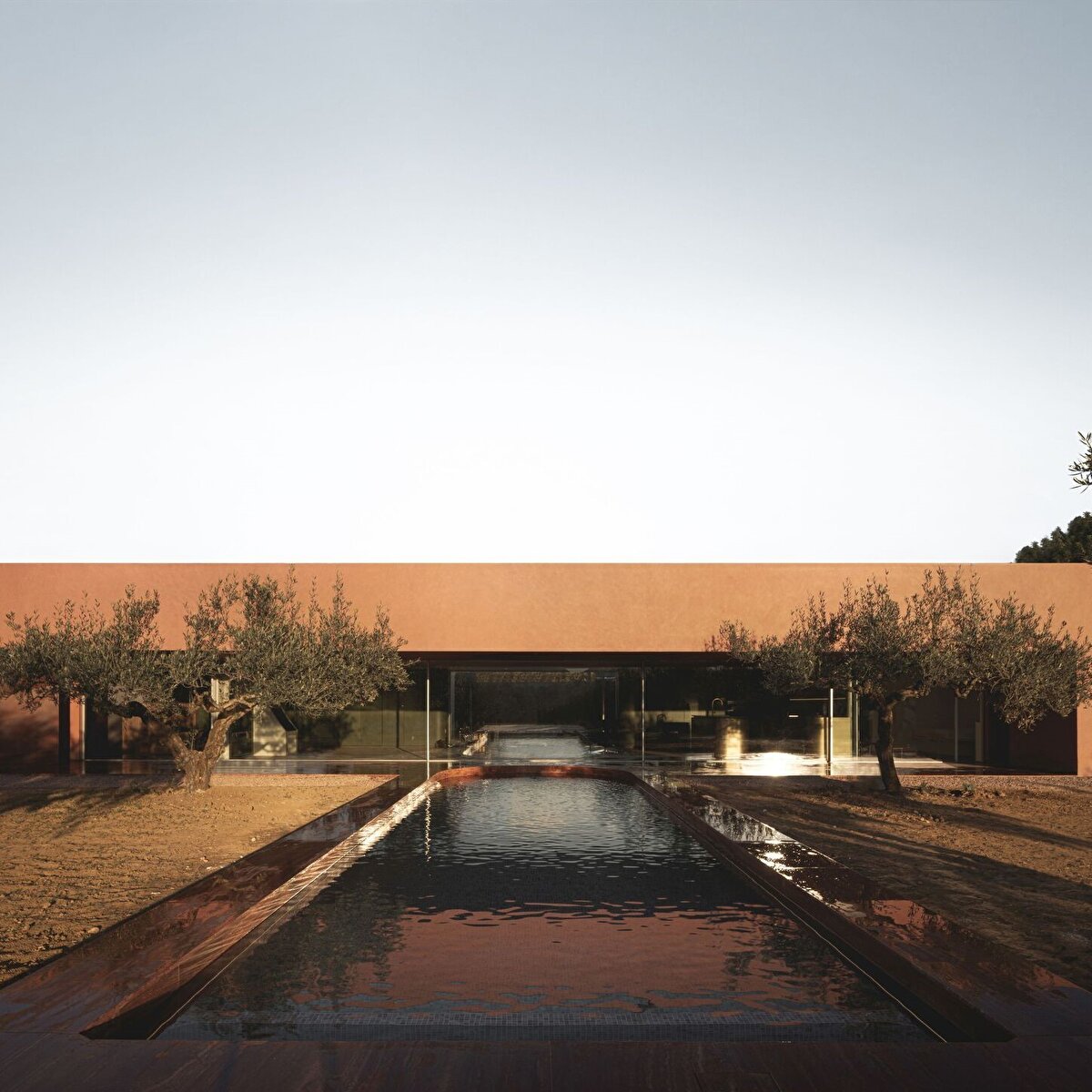 The building includes three courtyards opening onto olive trees, a porch characteristic of Mediterranean culture that protects the building from the heat of the west, and a large pool extending into the olive field. All these areas are connected by wide openings.