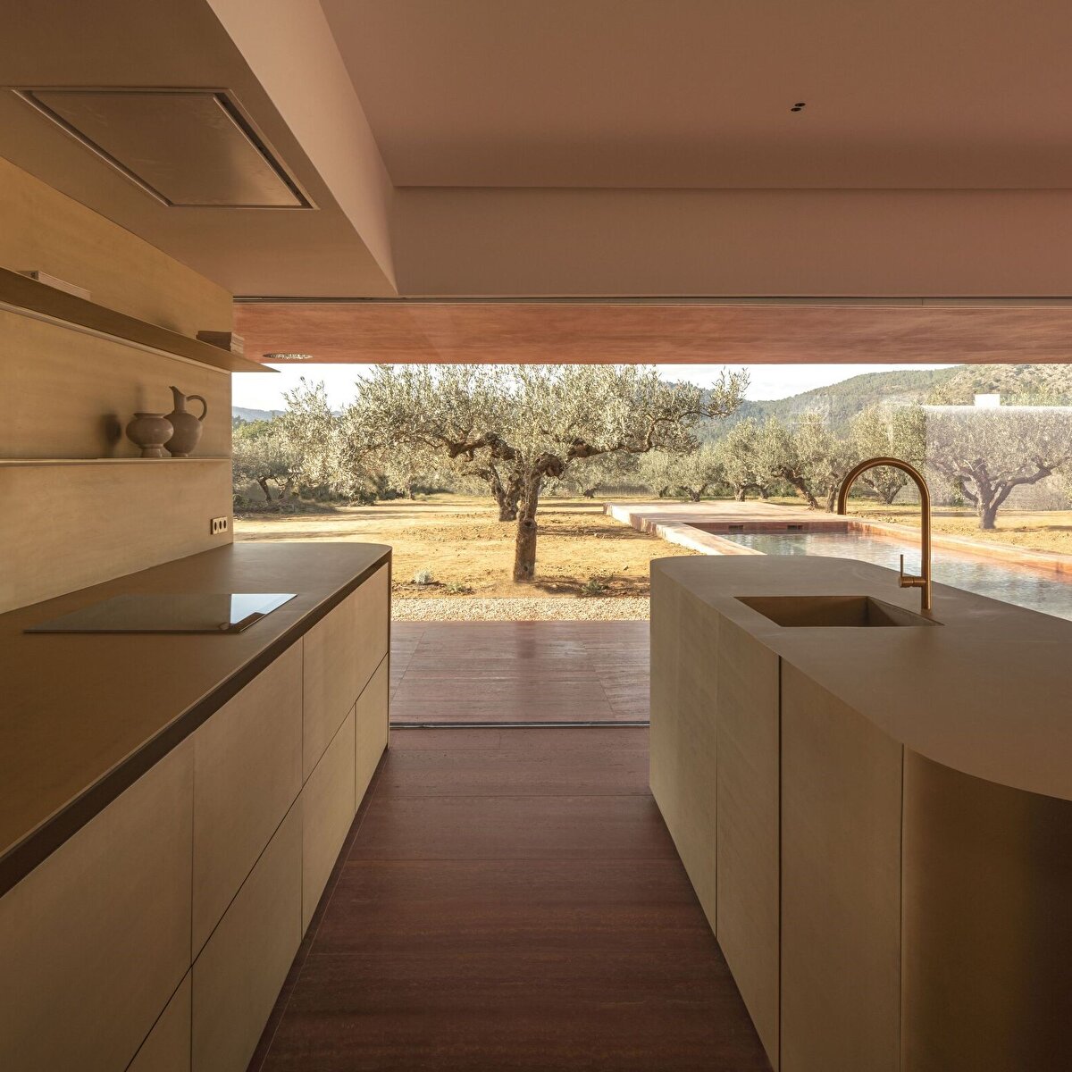 Olivos House is located in Quesa, in the interior of Valencia. The owners, from Barcelona, spent part of their childhood in Quesa, a small Mediterranean village of Arab origin. So when they revisited the town years later, they decided to build a house here.
