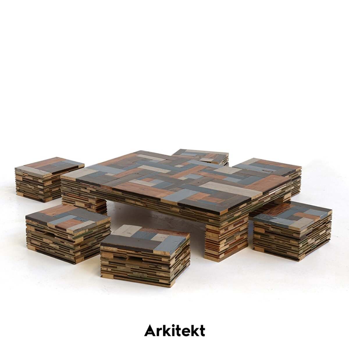 Waste Coffeecube with Stools in Scrapwood