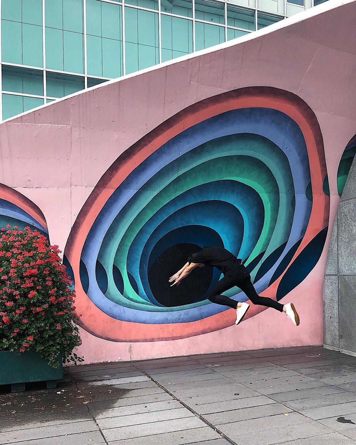 Portuguese artist Tiago Silva creates striking optical illusions in architectural photographs. Using shadow, perspective and color, he draws inspiration from a variety of sources, from graffiti and landmarks to objects. @umtiago