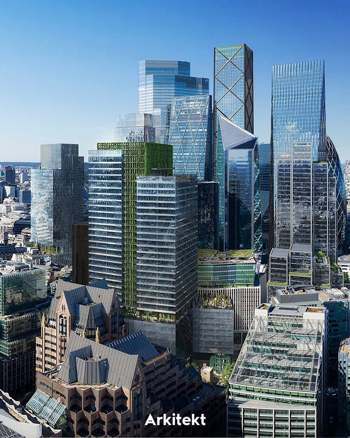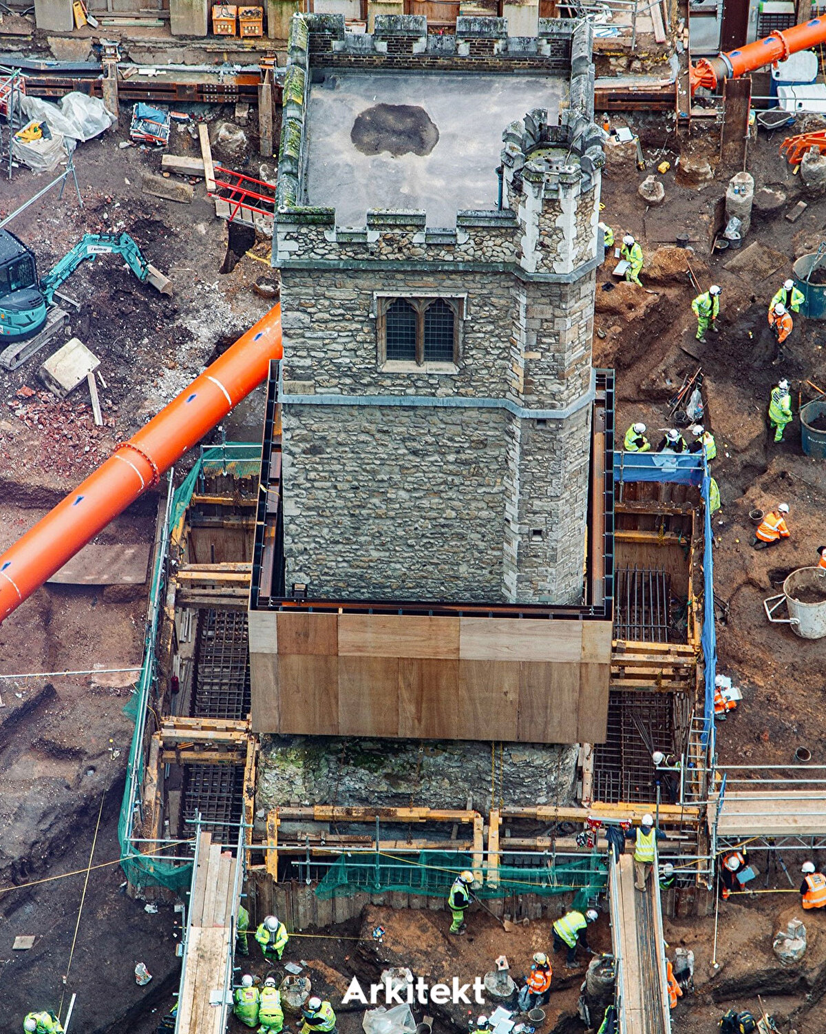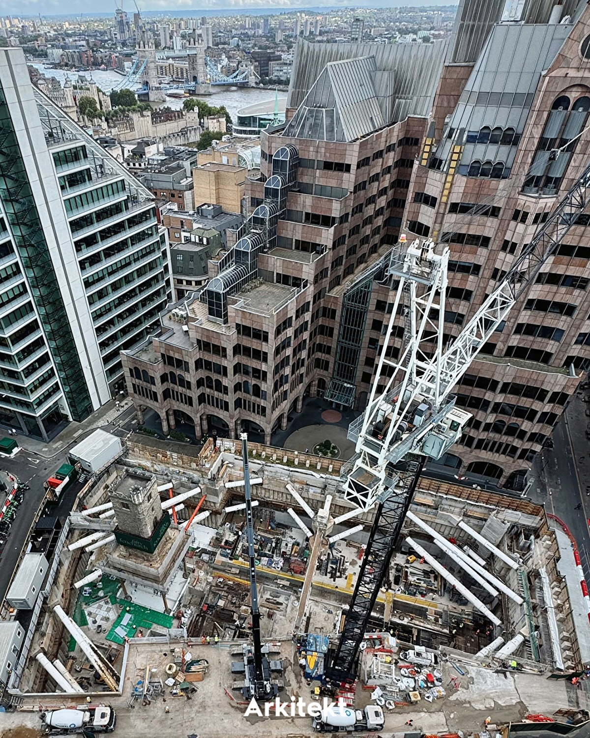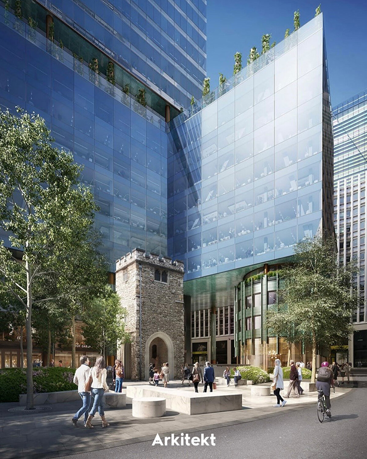 2028 yılında tamamlanması beklenen 50 Fenchurch Street projesi, Eric Parry Architects tarafından tasarlanıyor. Bölgenin eski yapılarından biri olan All Hallows Staining Kulesi korunarak projeye dahil ediliyor. Kule, 1666'daki Büyük Londra Yangını'nda yıkılan kiliseden günümüze kalan tek bölüm olarak öne çıkıyor ve bugün şantiye alanındaki temel çalışmalarının üzerinde geçici desteklerle ayakta duruyor. Projede, Lambe's Chapel Crypt'in yeni konumuna taşınarak halkın ziyaretine açılması öngörülüyor. - The 50 Fenchurch Street development, scheduled for completion in 2028, is being designed by Eric Parry Architects. The All Hallows Staining Tower, one of the area's historic structures, is being preserved and integrated into the project. The tower stands out as the only surviving part of the church destroyed in the Great Fire of London in 1666 and currently remains supported by temporary structures above the site's foundation works. The project also envisions relocating Lambe's Chapel Crypt to a new site, where it will be open to public visitation.