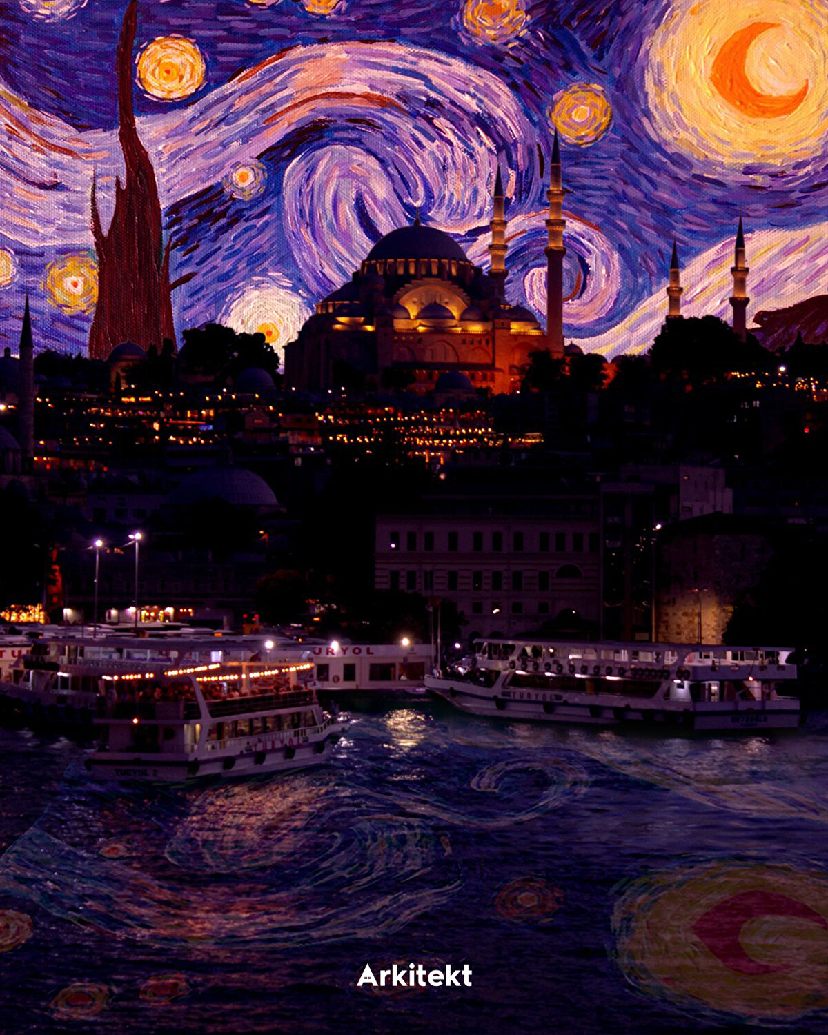 1- Süleymaniye Camii, Starry Night - Vincent Van Gogh (1889) 2- Galata Kulesi, Almond Blossom - Vincent Van Gogh (1889) (Orijinal Fotoğraf: pexels'ten Selim Çetin) 3- La Condition Humaine - René Magritte (1933) ( Orijinal Fotoğraf: @antoinefbr ) 4- Iris - Vincent Van Gogh (1889) ( Orijinal Fotoğraf: Unsplash'ten Jannis Lucas ) 5- Notte Stellata - Vincent Van Gogh (1889) ( Orijinal Fotoğraf: Unsplash'ten Rifad Lafir ) 6- Manarola, La Corniche near Monaco - Claude Monet (1884) ( Orijinal Fotoğraf: pexels'ten @e.cam )