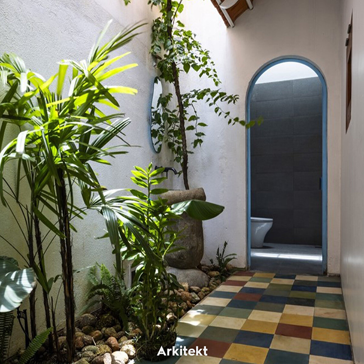Tropik iklime rağmen serin kalacak şekilde tasarlanan evin cephesinde ve çatısında bulunan kiremitler doğal havalandırmayı kolaylaştırıyor. Merkezi avlu, ışığın ve havanın mekanlara dağıtılmasına katkı sağlıyor.
