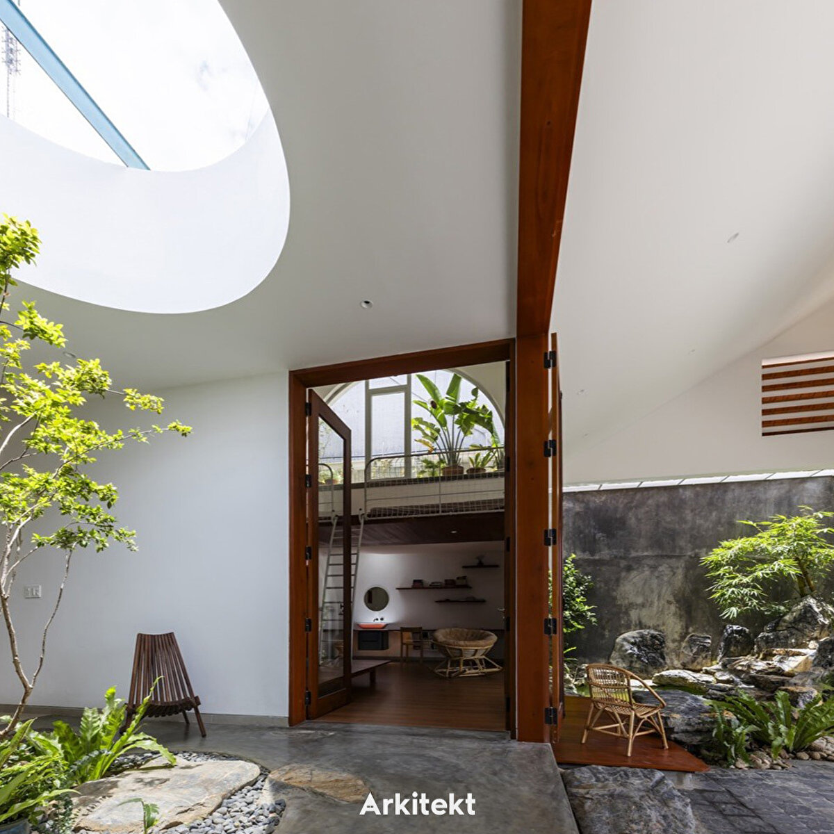 Oturma odası, mutfak ve yemek odasından doğrudan bu iç avluya ve ayrıca arsanın çevresini çepeçevre saran yeşil teraslara erişim sağlıyor. Tüm yaşam alanları ve yatak odaları, yeşil terasların manzarasını sunan yüksek tavanlara sahip.
