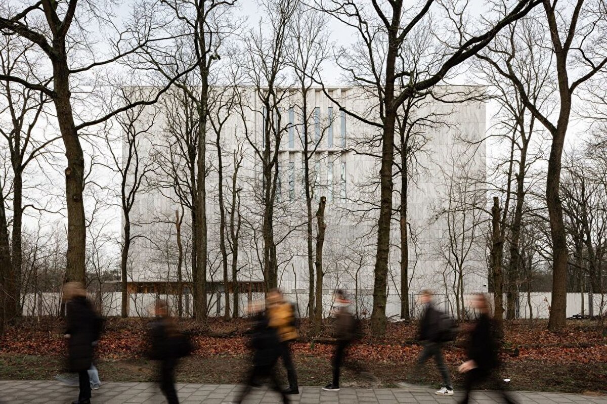 Designed by Powerhouse Company in the wooded campus of Tilburg University, the building includes a foyer, an auditorium, 13 classrooms and individual study areas for approximately 1,000 students.