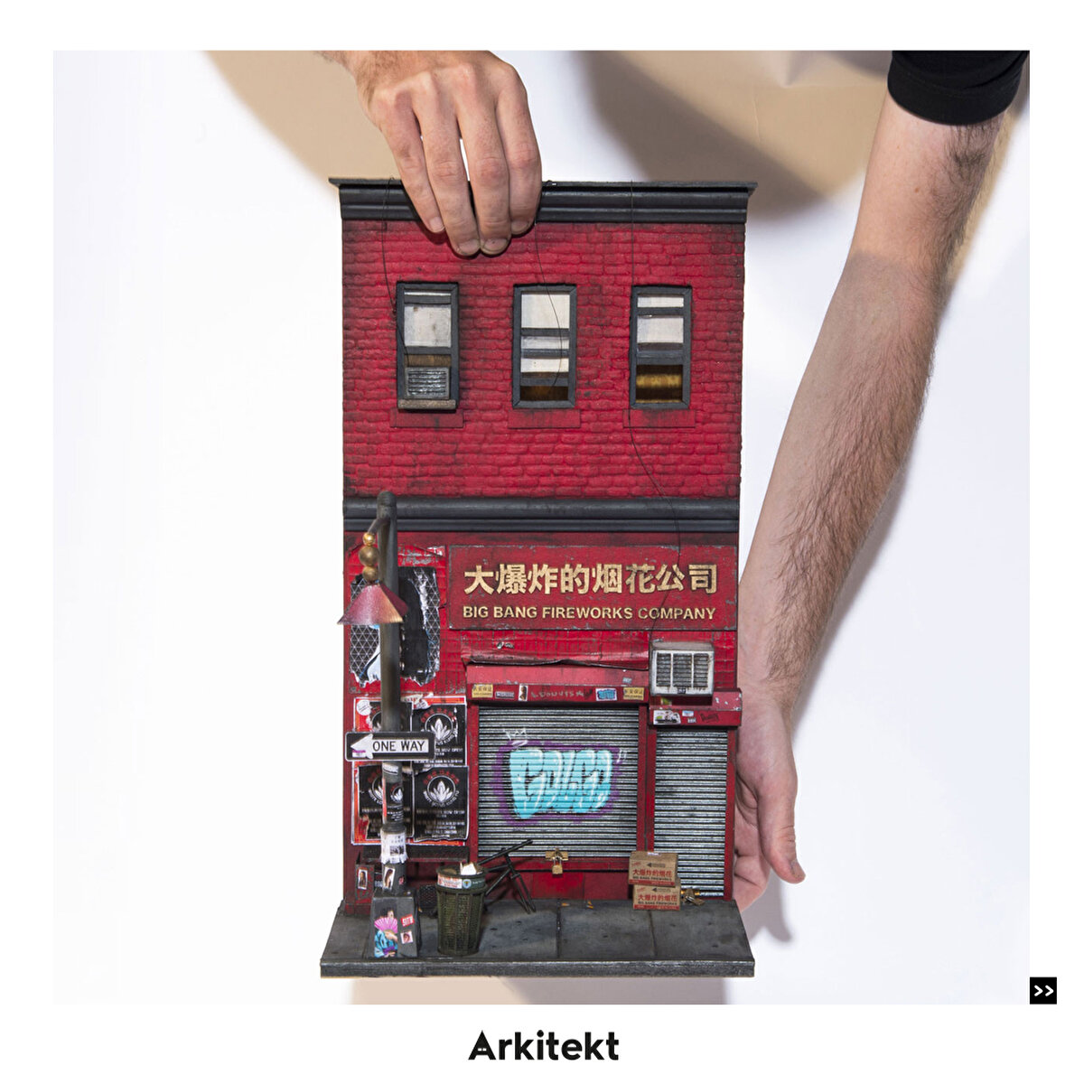 Avustralyalı sanatçı Joshua Smith, ahşap, karton, plastik levha, tebeşir ve tel gibi malzemeleri geri dönüştürerek ölçekli minyatürler elde ediyor.