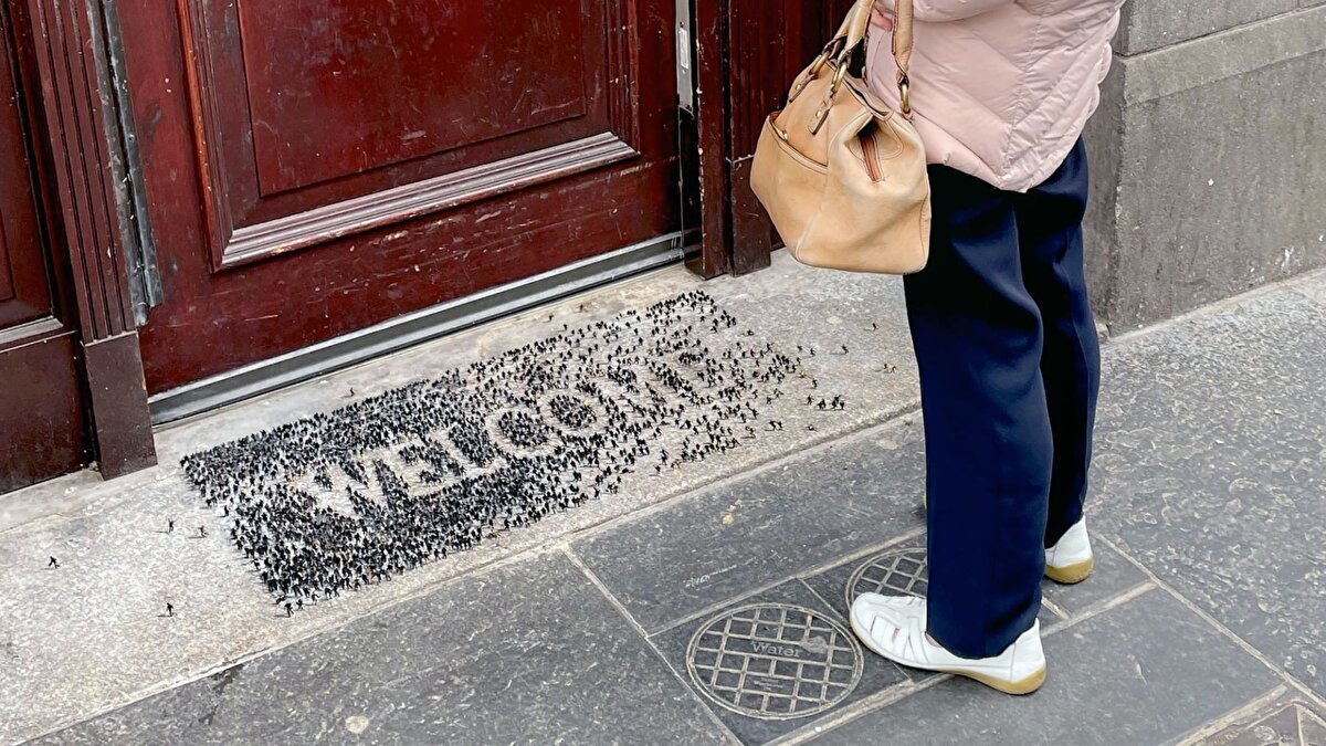 Şehrin tam merkezindeki bir binanın girişini seçen Pejac, buranın özel bir mülk olduğunu, birçok hayır kurumuna ve sosyal dışlanmayla karşı karşıya kalan savunmasız sakinler için ev sahipliği yaptığını söylüyor.