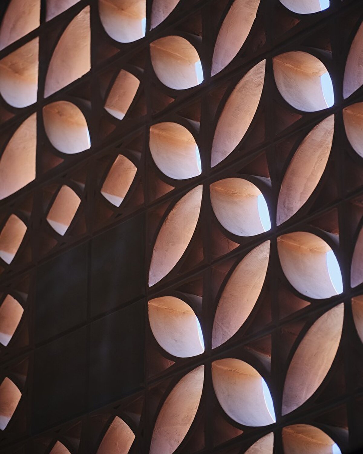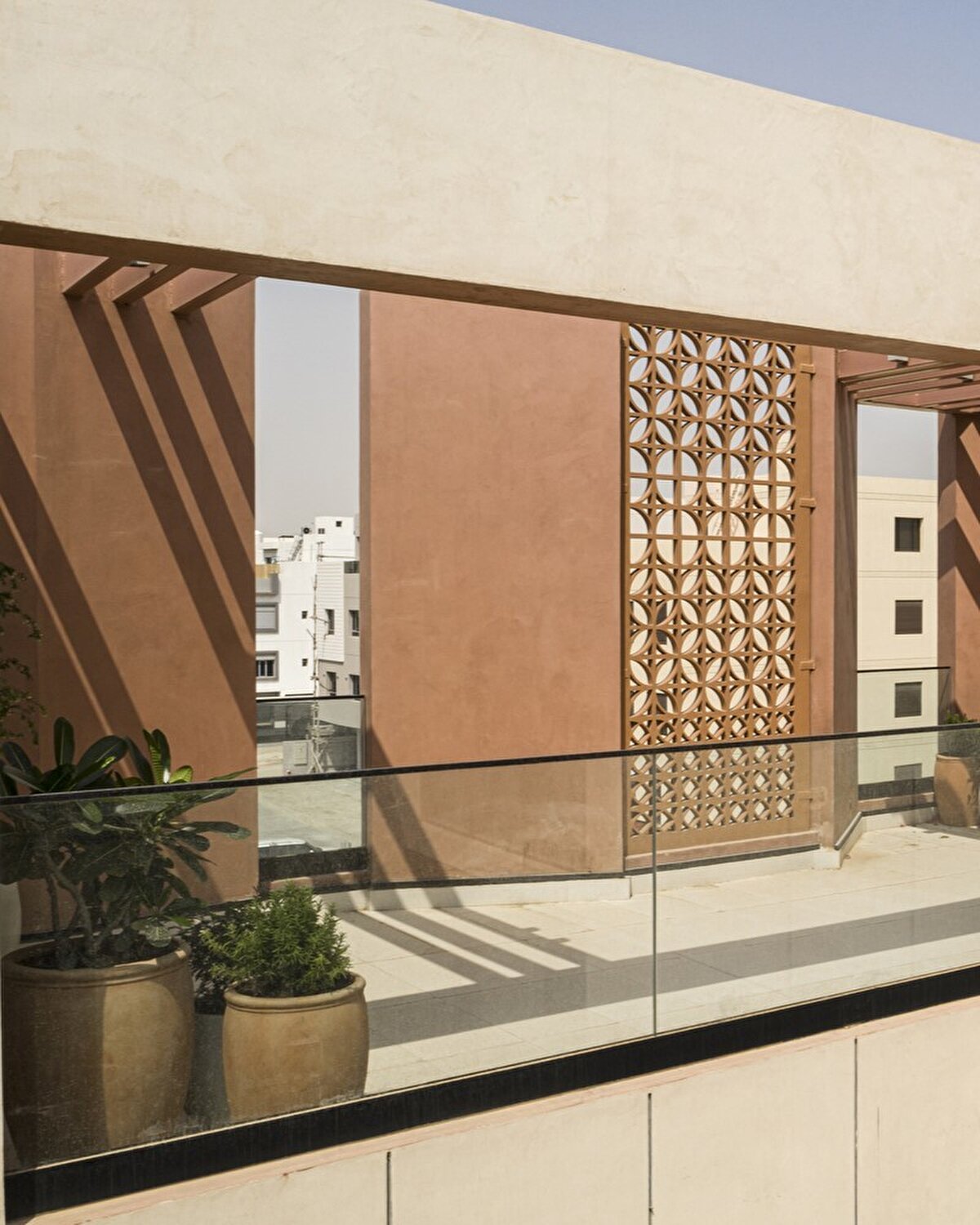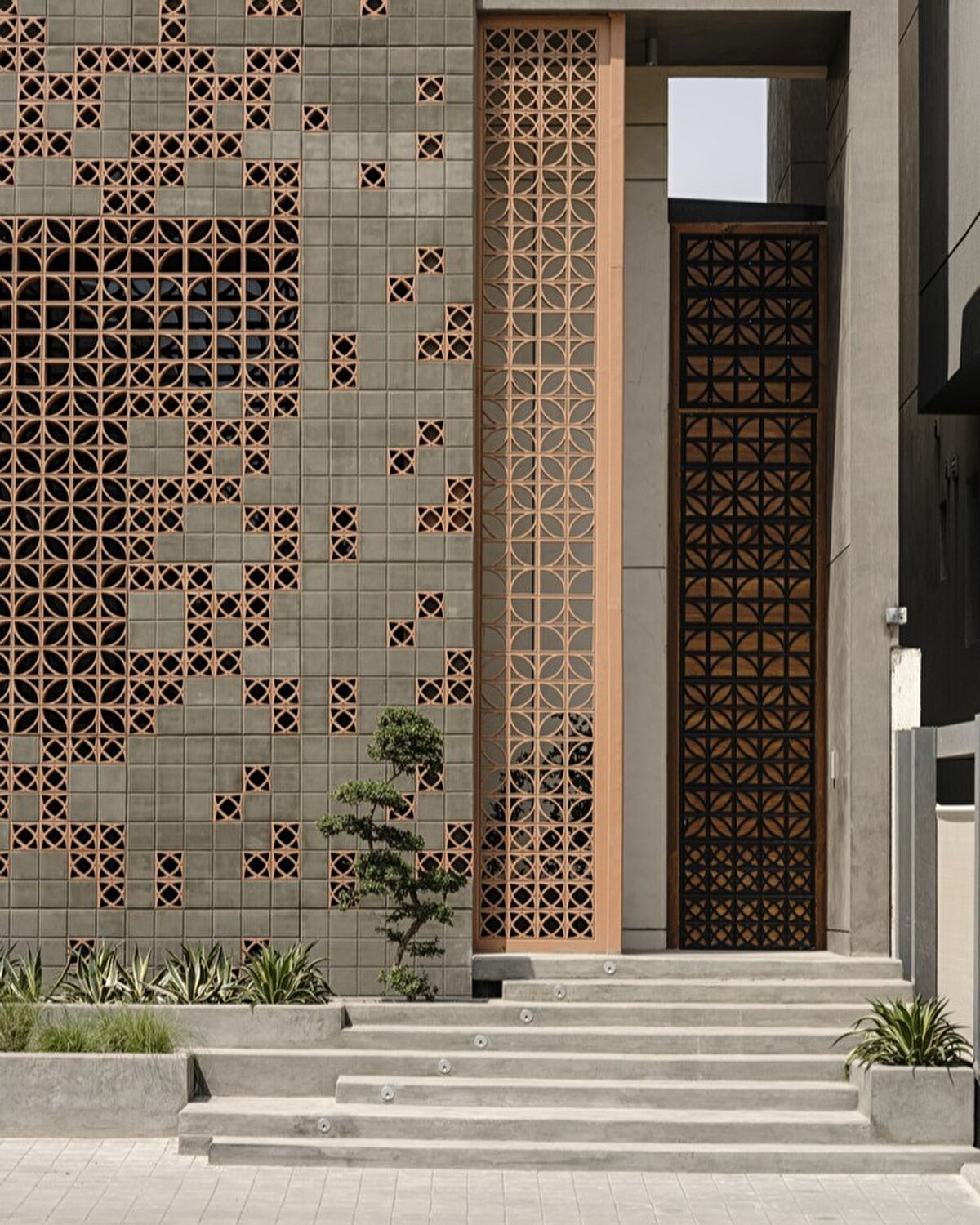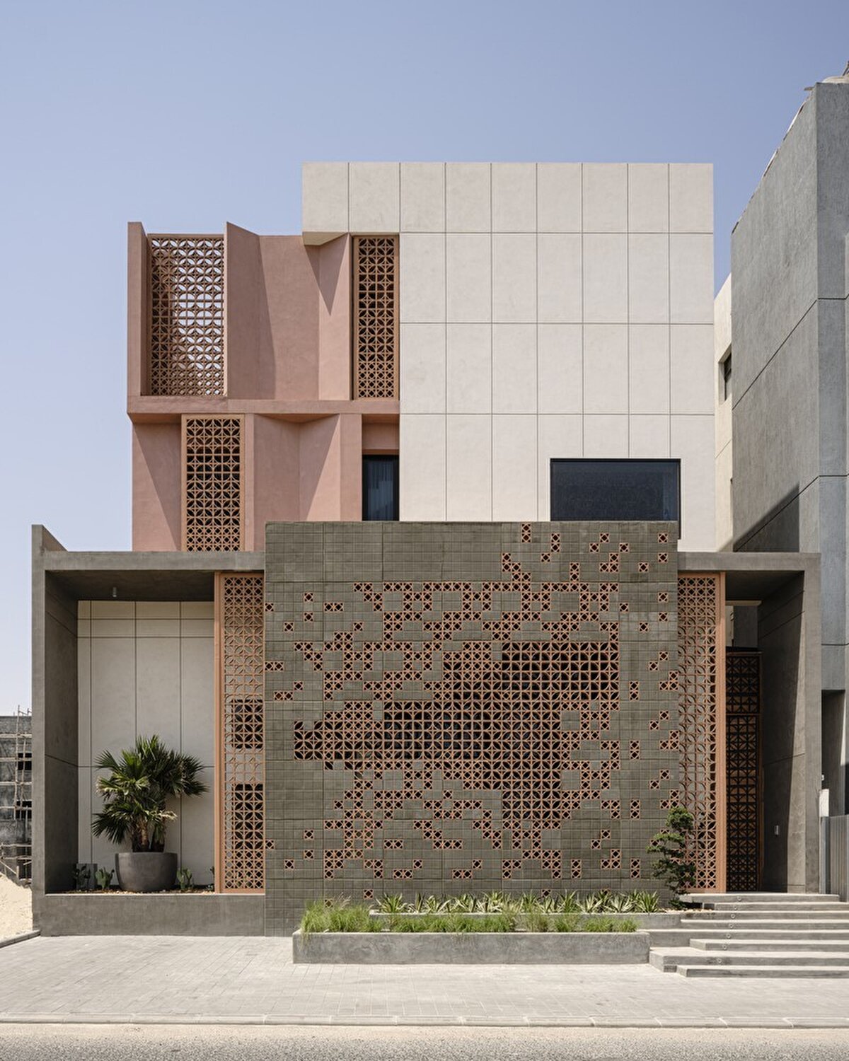 Dış renk şeması, çöl manzarasından ilham alarak toprak tonlarını kullanır. Arap ve Meksika etkileri, cobogó karolarının pikselli desenlerinde görülüyor. Cephenin çok katmanlı yapısı, derinlik ve görsel çekicilik katıyor. Küçük bir merkezi avlu ve çevresindeki havuz alanı, doğal ışığın iç mekana yayılmasını sağlıyor. Işık, cobogó karolarının açıklıklarından iç mekana dağılıyor.