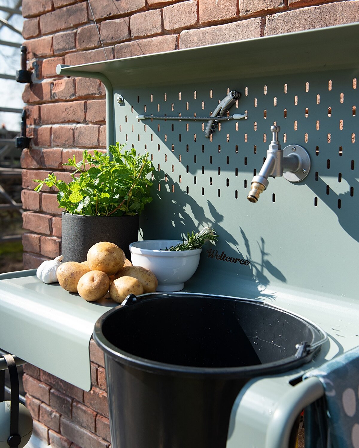 Meyve ve sebzeleri yıkayabileceğiniz, bahçe malzemelerini düzenlemek veya harika bir mini bar ve buz kovası olarak da kullanabileceğiniz bir alan olarak tasarlanıyor. Bu tasarım, ihtiyacınıza göre kişiselleştirilebiliyor. Waterworks, boyası sayesinde hava koşullarına dayanıklı üretiliyor🌱💧