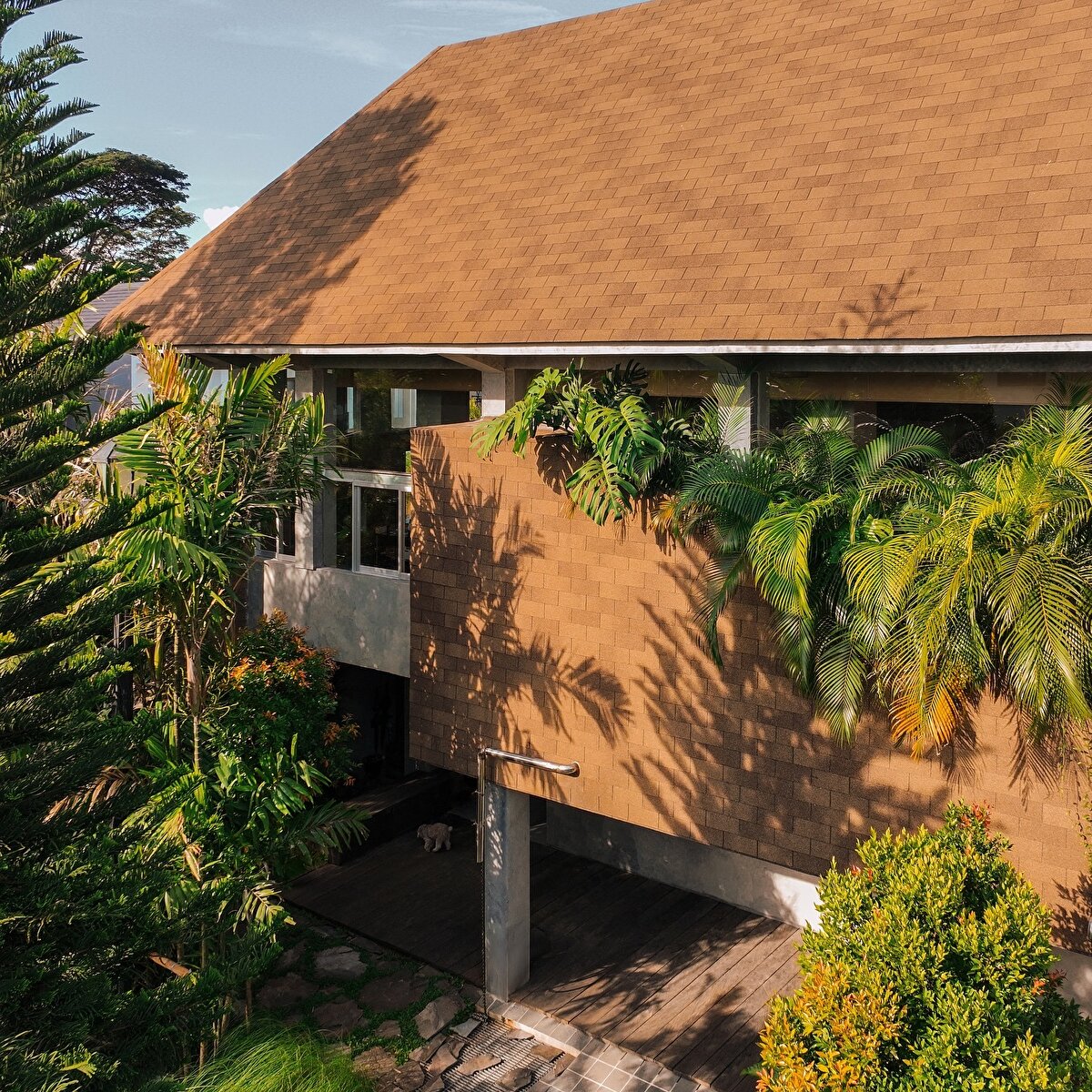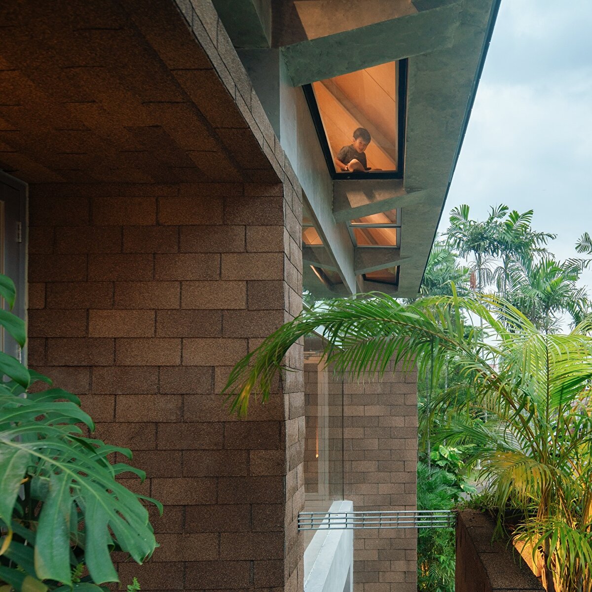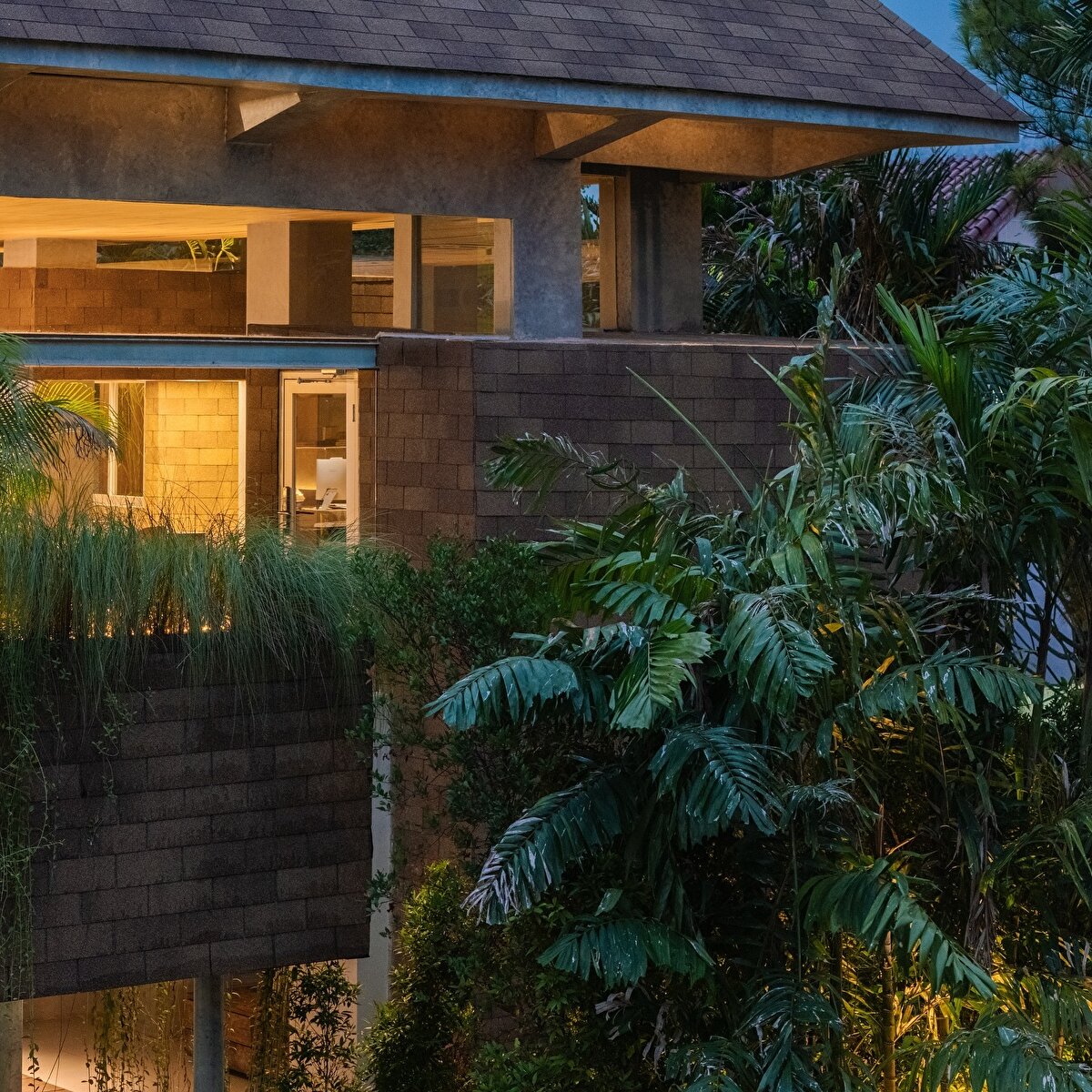 Bahçe üzerindeki çatı katı, dört içe dönük kütlenin peyzajın üzerinde konumlanmasıyla yapı kimliğini oluşturuyor ve bu kütlelerin arasında ters boşluklar meydana geliyor. Açık plan kurgusuyla oluşturulan tasarım, mevcut taşıyıcı sistem korunarak ağır bölücü elemanların kullanımını en aza indiriyor. İç mekânda mahremiyet ve açıklığın dengelendiği alanlar yer alıyor; mobilyaların konumlanışı ise kullanıcı deneyimini ve dış mekânla kurulan ilişkiyi şekillendiriyor. Banyolarda daha yoğun bir renk kullanımı yer alırken, diğer alanlarda açık tonlar ve pürüzsüz yüzeyler devam ediyor. Katları birbirine bağlayan iki merdiven daha koyu renk ve gözenekli dokusuyla mekâna entegre ediliyor Ev, mahremiyeti korurken doğal ışık ve manzarayı iç mekâna dâhil eden bir yaşam kurgusuyla tasarlanıyor. - The rooftop terrace above the garden establishes the building's identity through the positioning of four inward-facing volumes above the landscape, creating inverted voids between them. The design, created with an open plan concept, minimizes the use of heavy partitioning elements while preserving the existing structural system. The interior features areas where privacy and openness are balanced; the placement of furniture shapes the user experience and the relationship with the exterior. While a more intense use of color is found in the bathrooms, light tones and smooth surfaces continue in other areas. Two staircases connecting the floors are integrated into the space with their darker color and porous texture. The house is designed with a living concept that incorporates natural light and views into the interior while maintaining privacy.