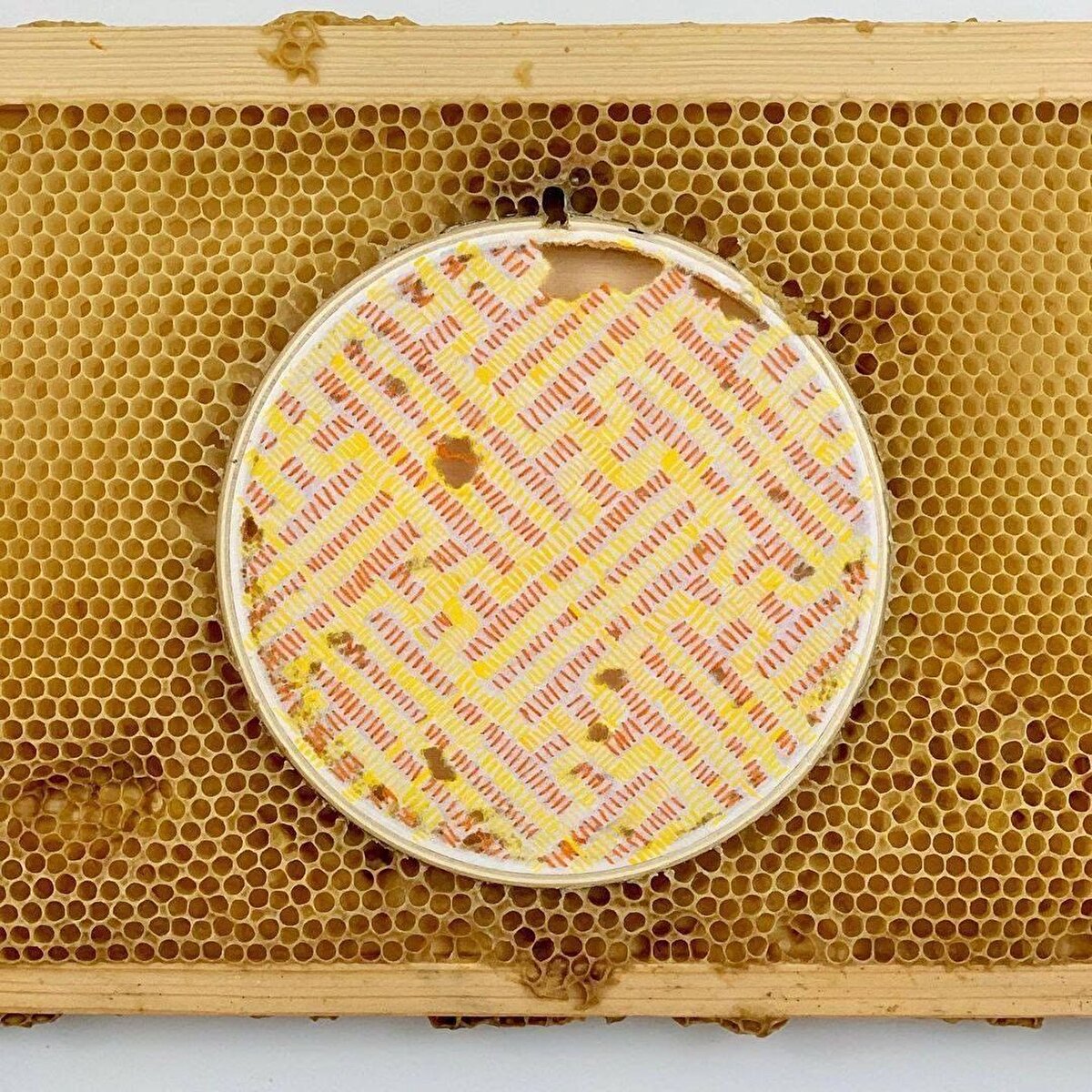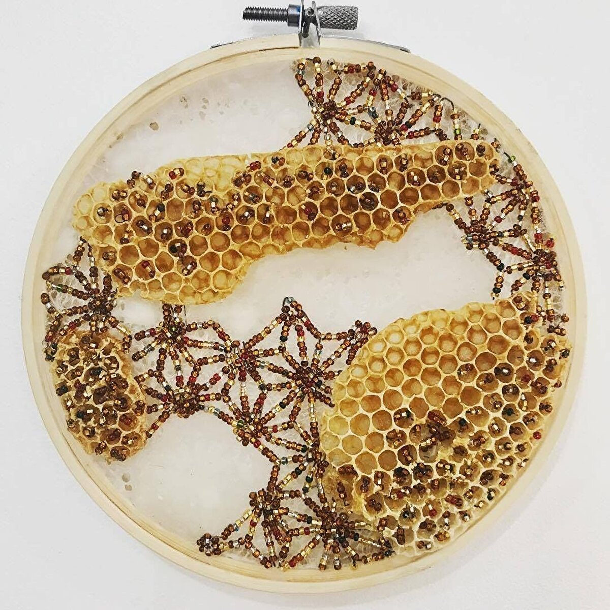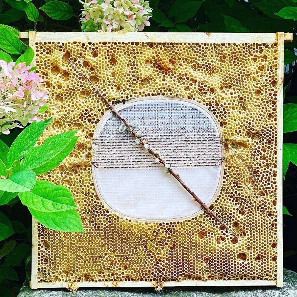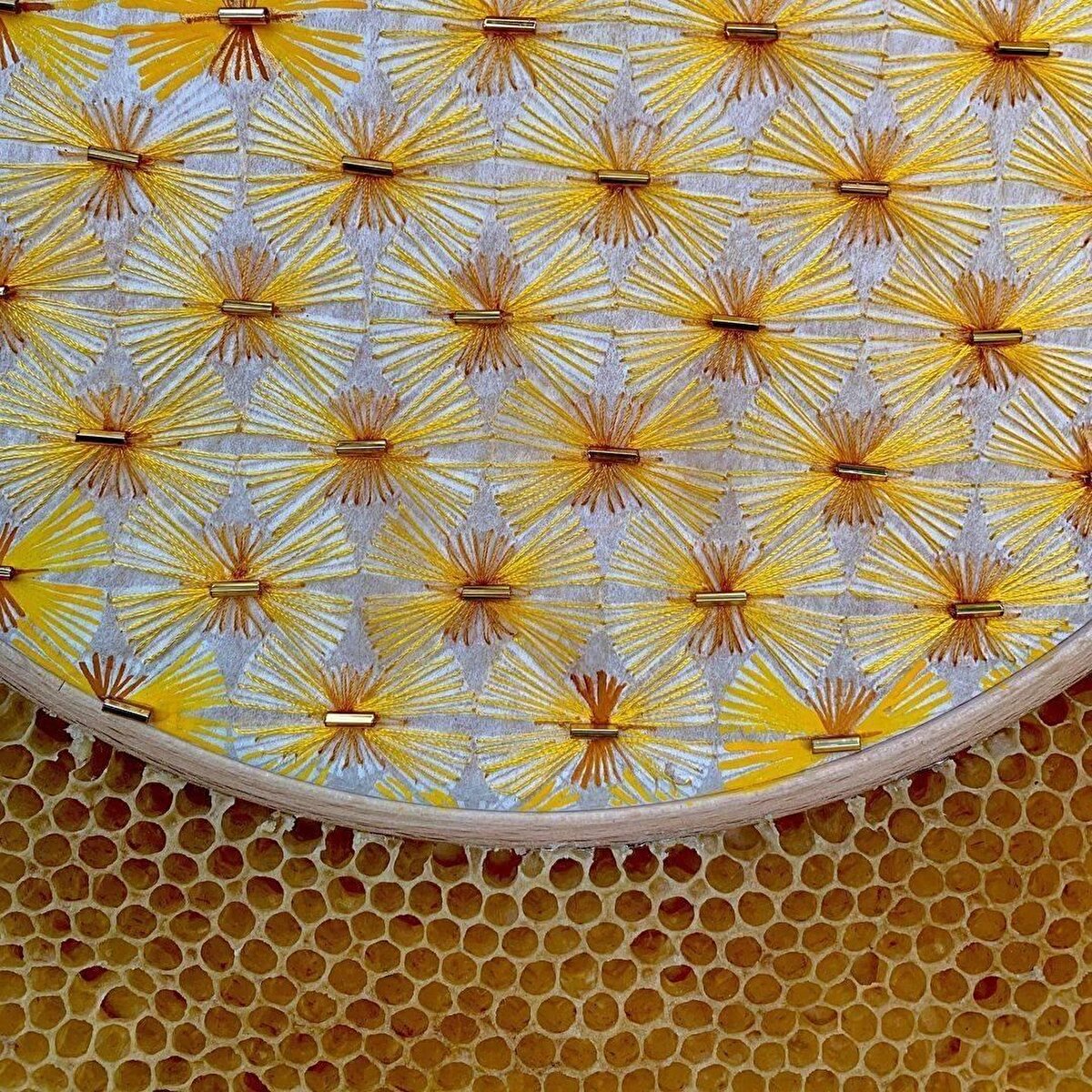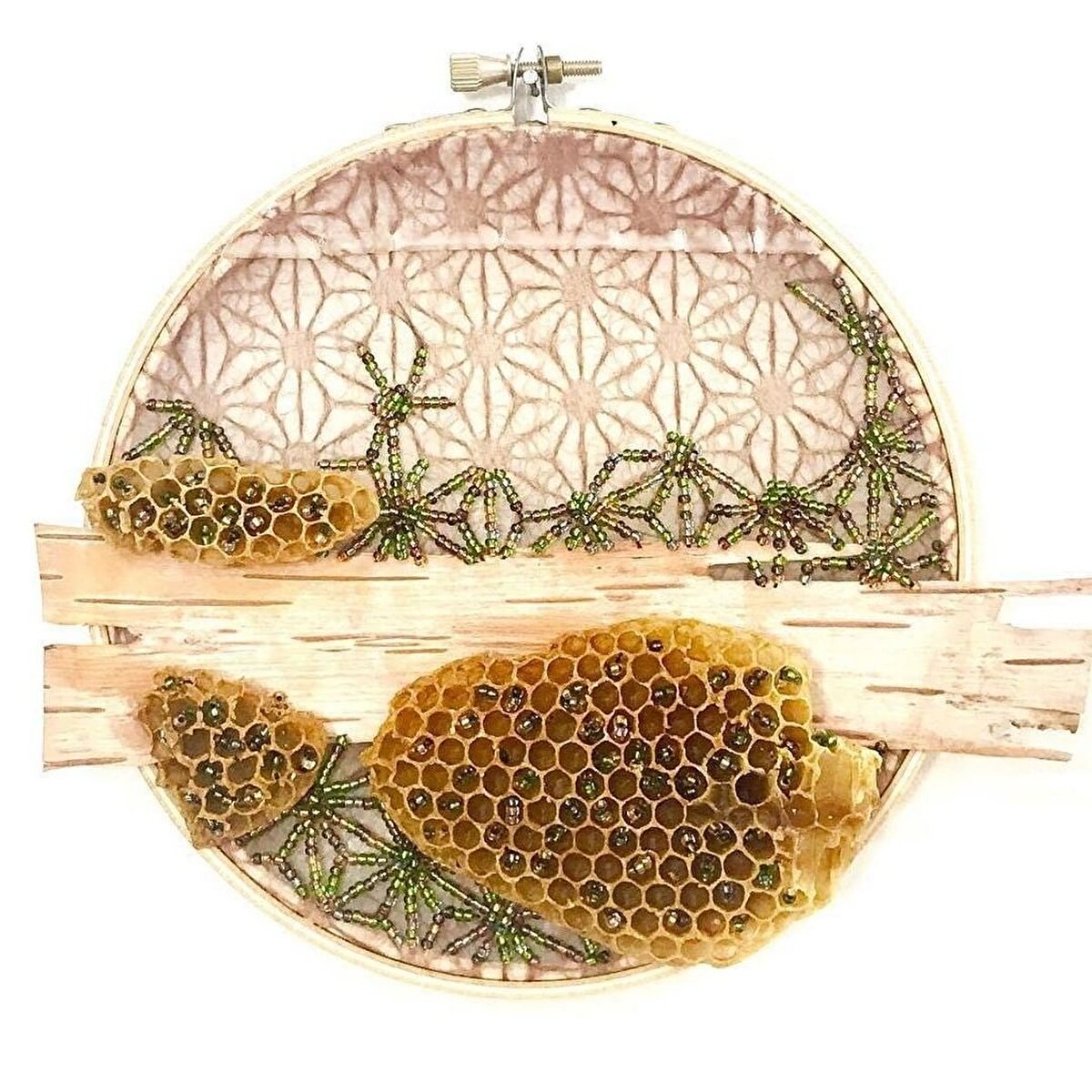 Doğayla iç içe geçen tasarımlara yeni bir soluk getiren Torontolu sanatçı Ava Roth; nakış, ağaç kabuğu ve kumaş kullandığı çalışmalarını bal arılarının yardımı ile tamamlıyor.