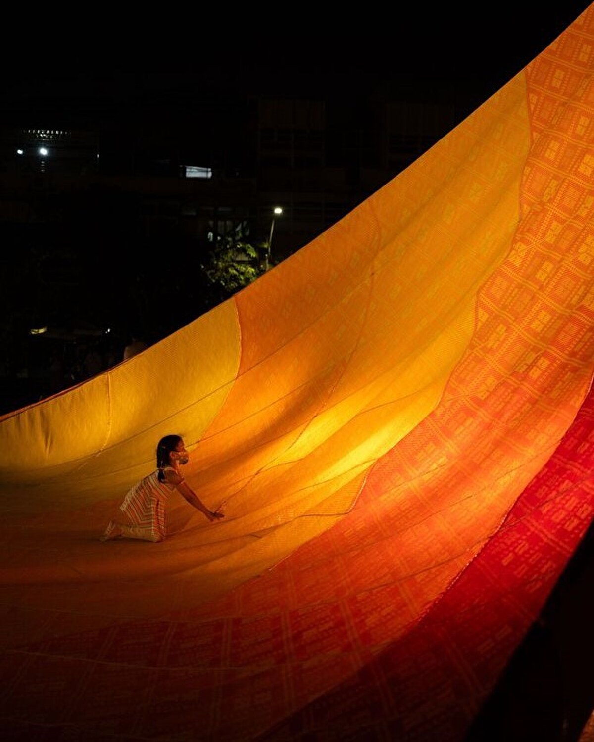 Tayland her yıl yaklaşık 2 milyon ton plastik atık üretiyor. Mega Mat, bu soruna dikkat çekmek için geleneksel Sua-mat dokuma deseninden ilham alarak 552 modüler parçayla tasarlanıyor. Renkli matın her tonu, ülkedeki plastik atık yönetiminin farklı aşamalarını simgeliyor. Kırmızı, kontrolsüz çöp sahalarına giden atıkları, turuncu düzenli depolama alanlarına yönlendirilenleri, sarı ise hiç toplanmayan atıkları temsil ediyor. Matın ortasındaki yeşil bölge ise geri dönüştürülen plastik oranını gösteriyor.