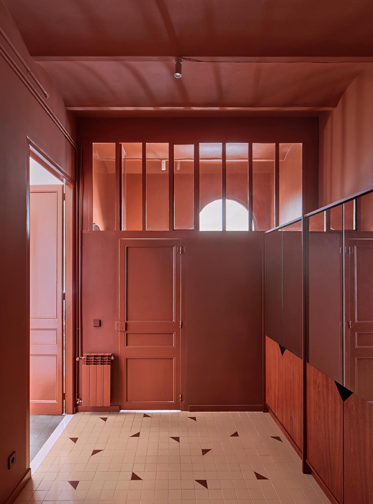Cal Totxo projesi, Barselona'daki Collserola Tabiat Parkı'nın eteklerinde yer alan modernist bir konutun yeniden işlevlendirilmesini ele alıyor. Cierto Estudio'nun 2023'te tamamladığı tasarım, koridorları ortadan kaldırıp düzensiz bir ızgara plan kurgusu oluşturarak mekânlar arasındaki dolaşımı güçlendiriyor. Odalar arasında oluşturulan çoklu erişim noktaları, daha önce karanlık kalan alanların doğal ışık almasını sağlarken manzara ve geçiş çeşitliliğini artırıyor.