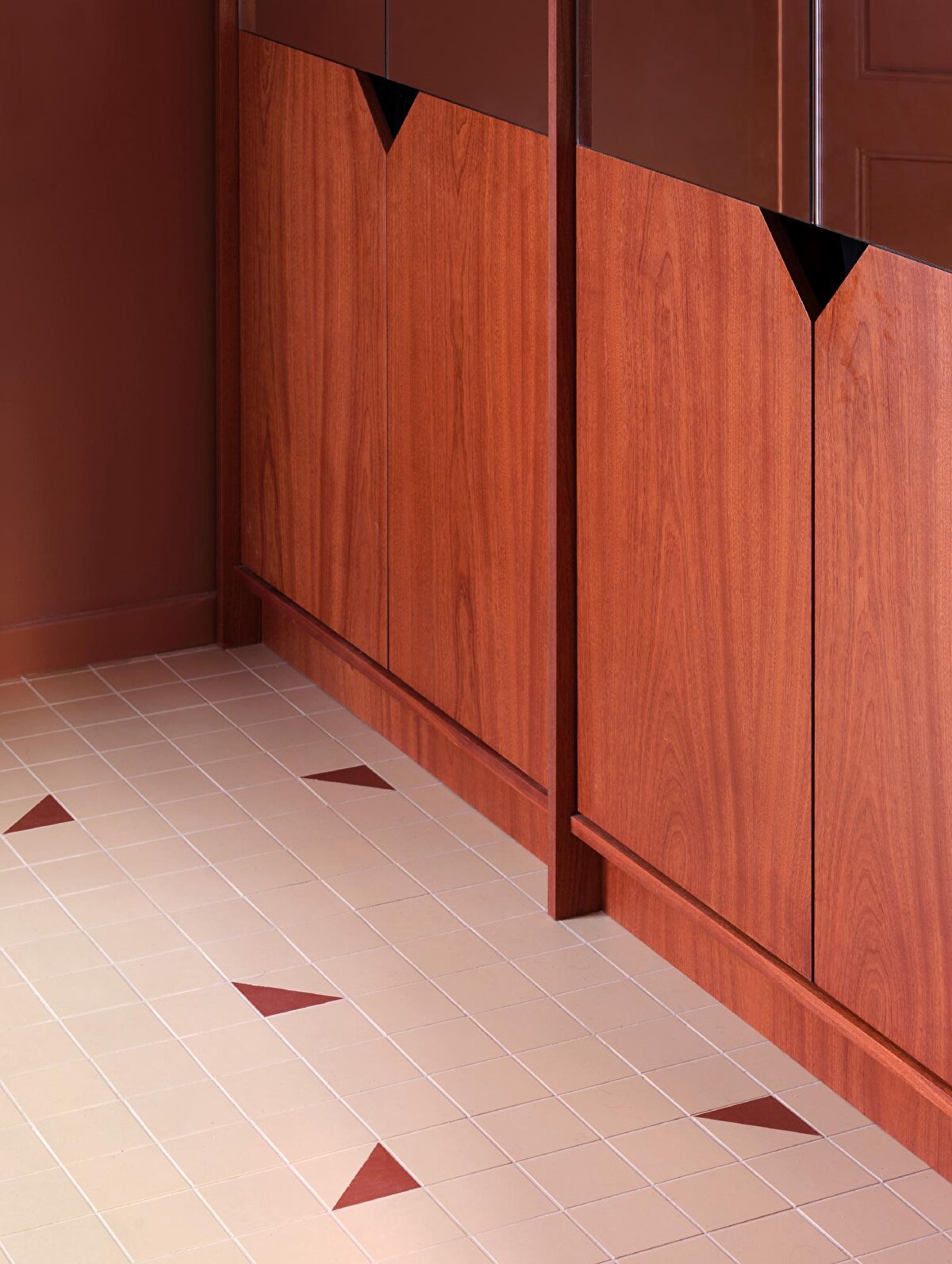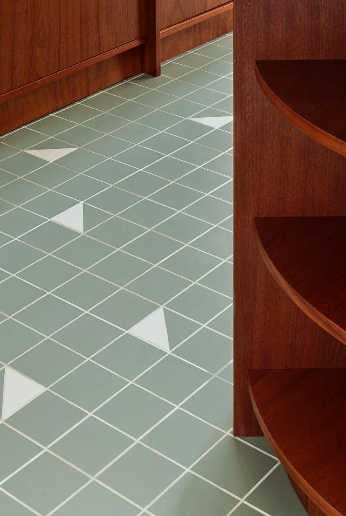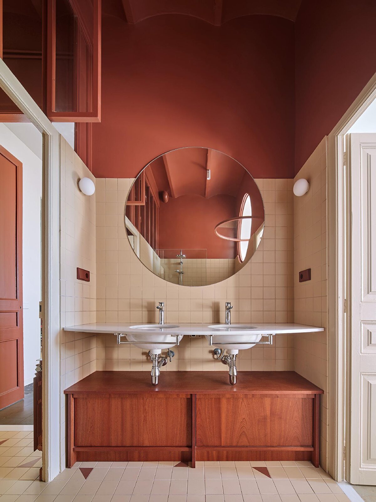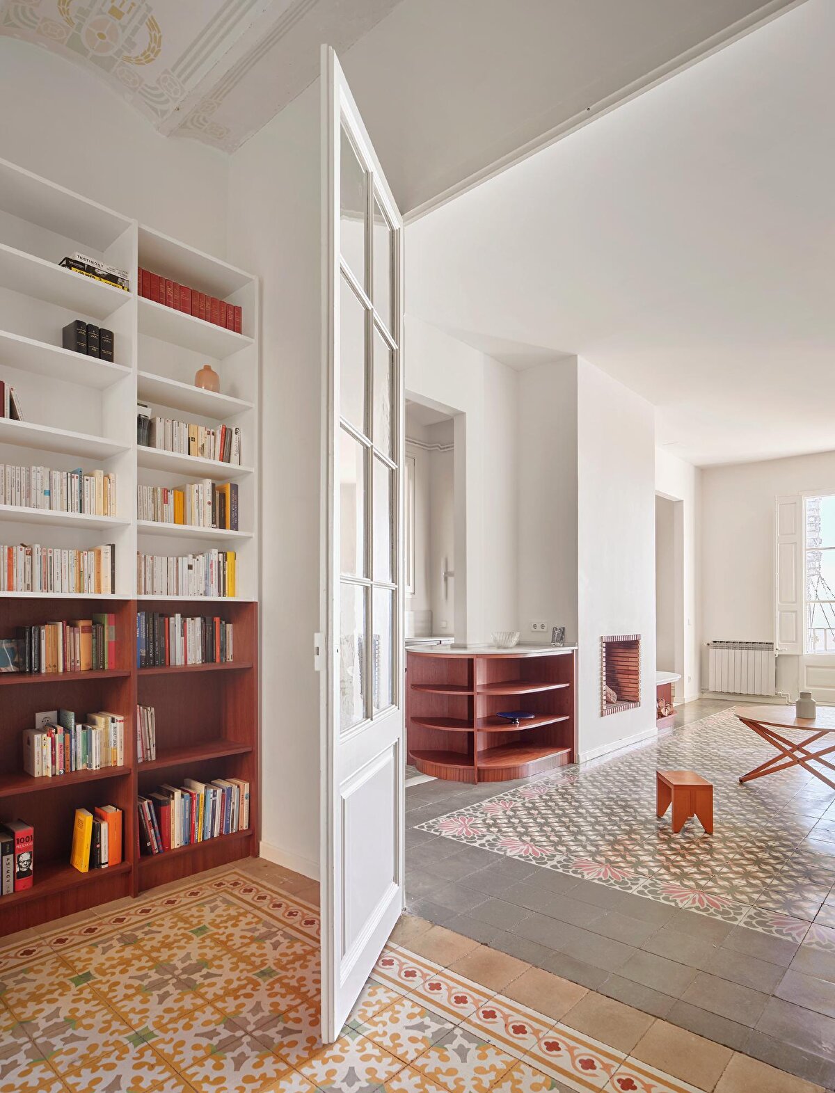 Prioritising shared space usage, the project preserves two of the three bedrooms and converts one of the bathrooms into a laundry room. Natural wood panelling, tiled floors, and custom-designed furniture add warmth and cohesion to the interior. Curved forms, mosaic patterns, and material transitions are the standout features of the project.