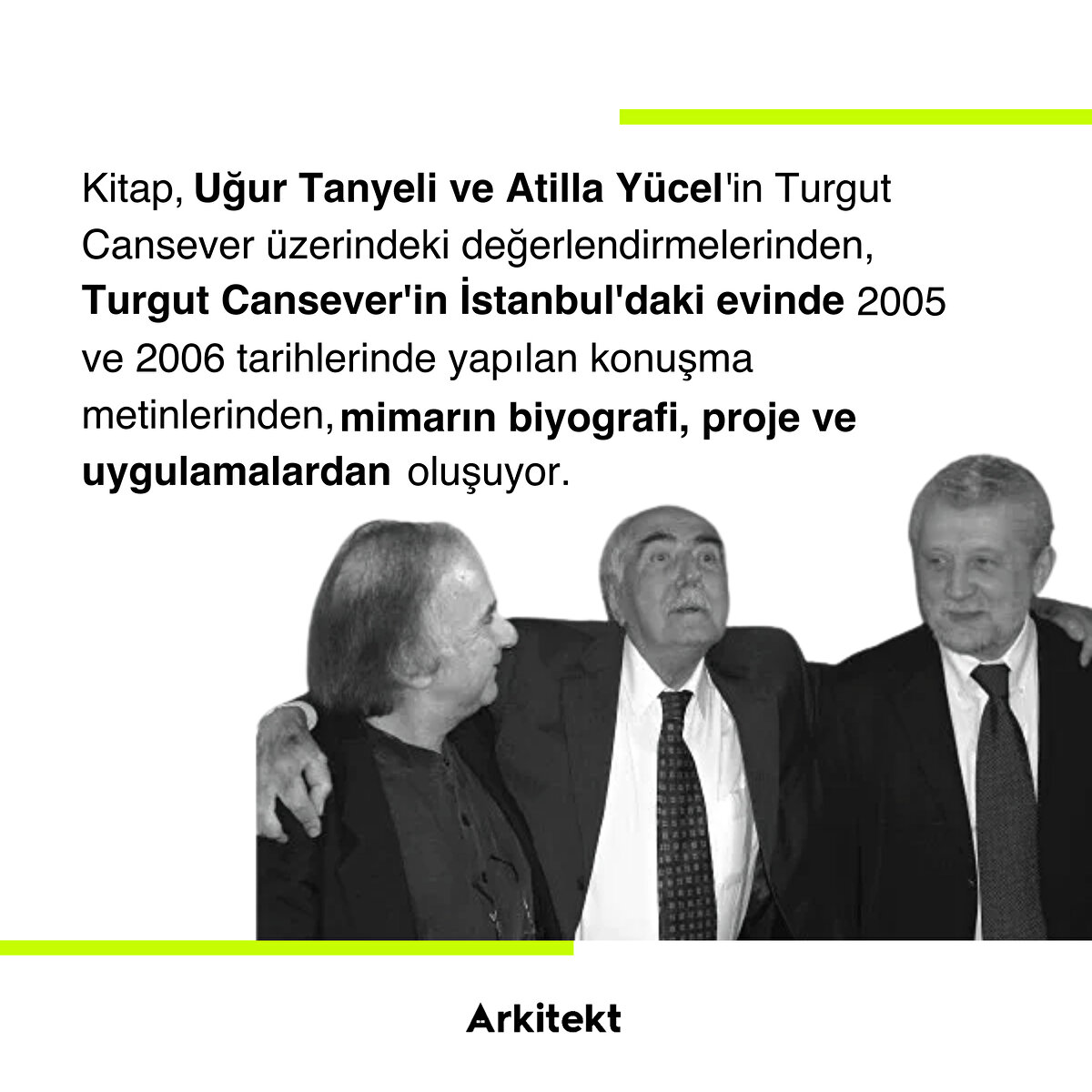 Uğur Tanyeli ve Atilla Yücel'in düzenlediği ve kaleme aldığı kitap, Turgut Cansever'in düşünce dünyasından, projelerinden ve kendi evinde yapılan konuşmalardan detaylar sunuyor. 📚