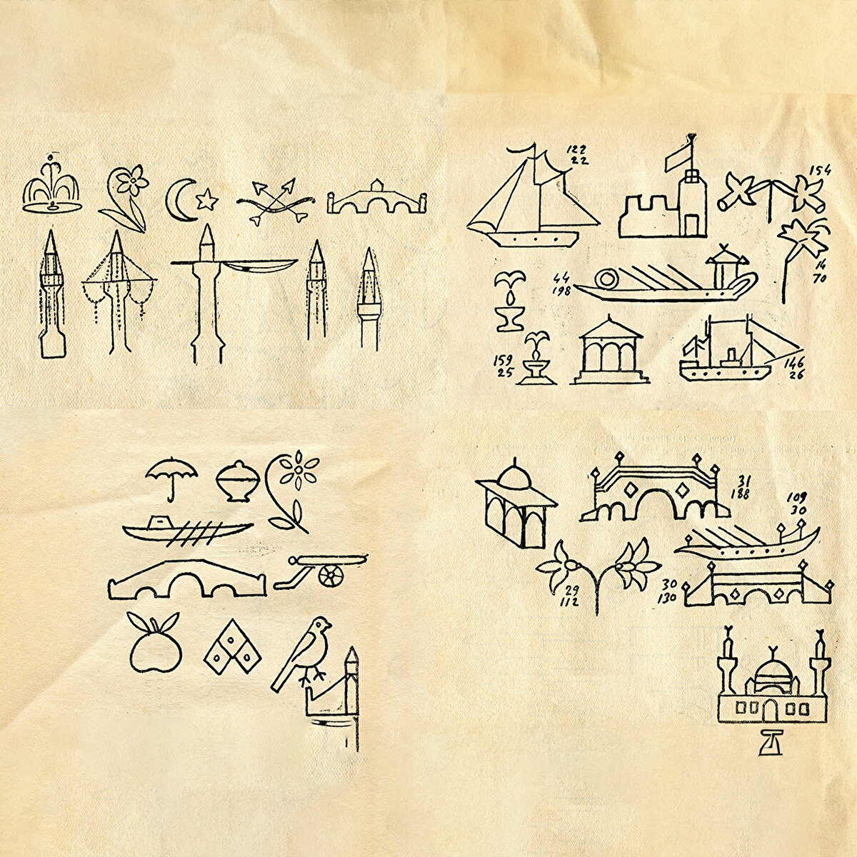 Foto 7: Mahya hakkında ilk araştırmaları yayımlayan Ahmet Süheyl Ünver'in mahya çizimlerinden örnekler (Mahya Hakkında Araştırmalar, İstanbul 1940)
