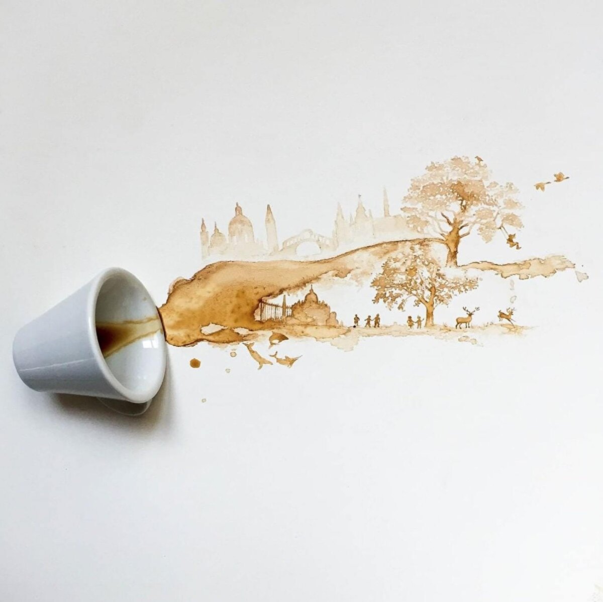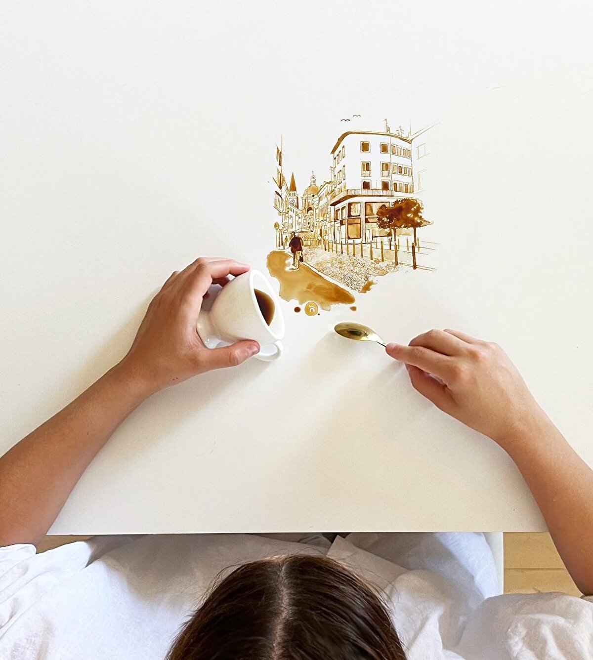 Kim dökülen bir kahvenin sadece bir kazayı temsil ettiğini düşünüyorsa, Giulia Bernardelli'yi henüz tanımıyor demektir. İtalyan sanatçı @bernulia, kağıdına dökülen bir fincan kahveyi başyapıta dönüştürüyor. Giulia'nın kompozisyonlarında kahve lekeleri bildiğimizden çok farklı hallere bürünüyor; tanıdık simalardan masalsı manzaralara kadar birçok şekilde hayat buluyor.