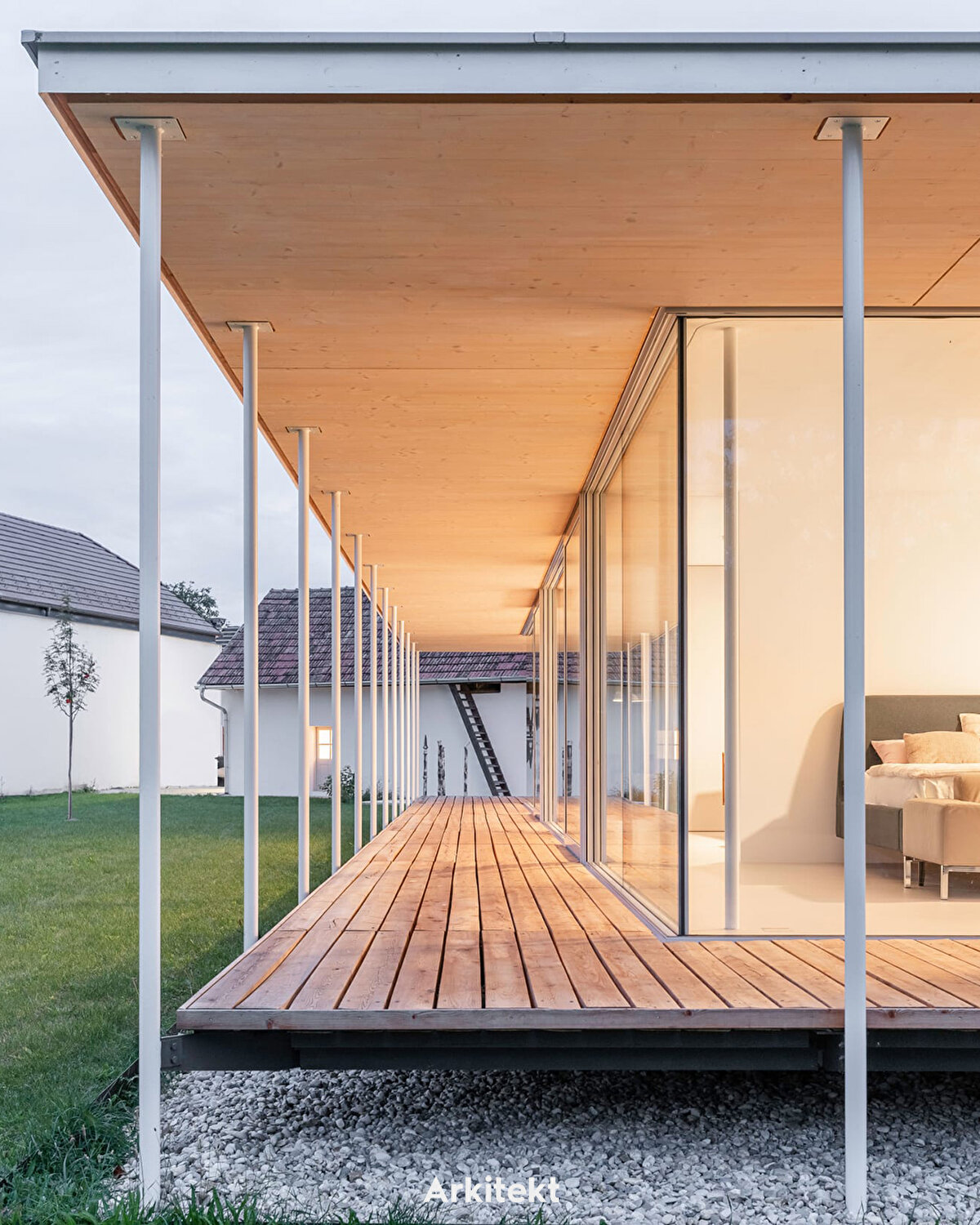 Mümkün olduğunca az parça ile tasarlanan yapı, mevcutta bulunan bir kır evinin yanına inşa ediliyor.