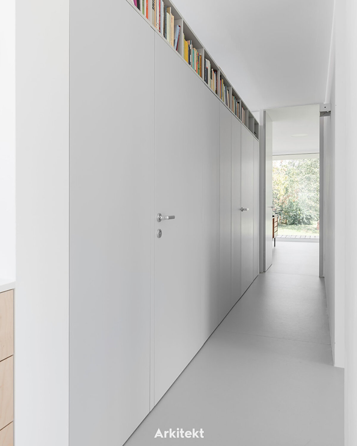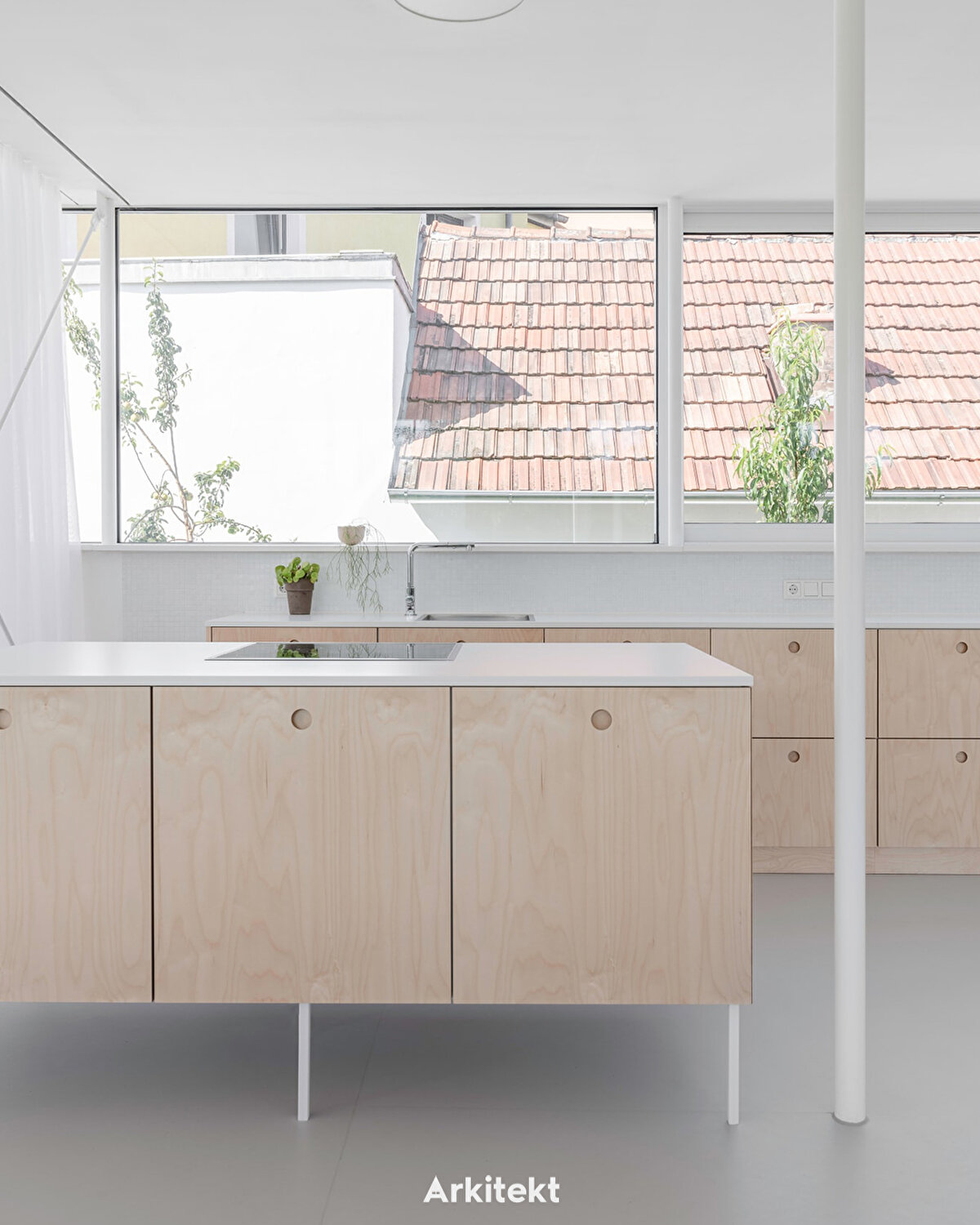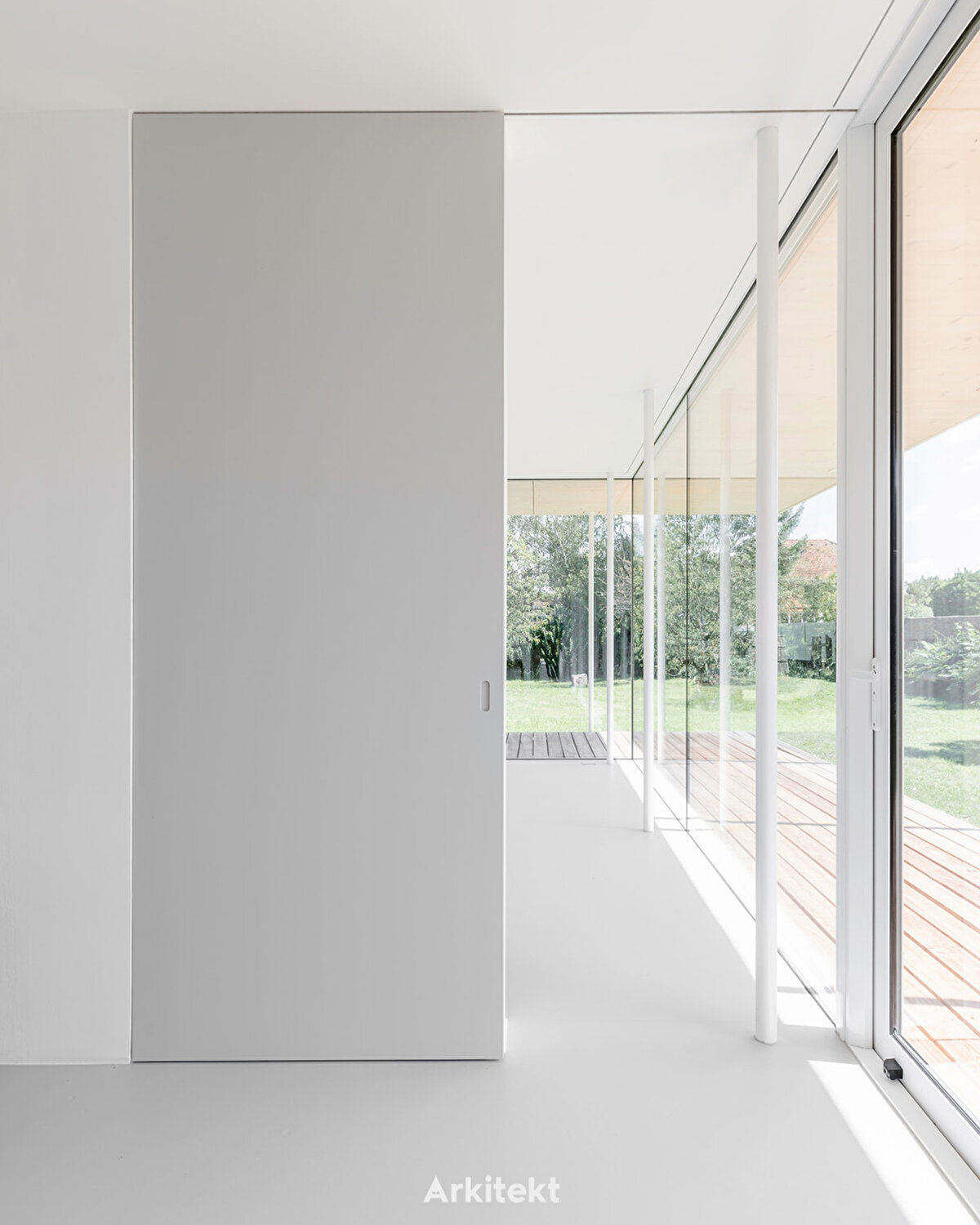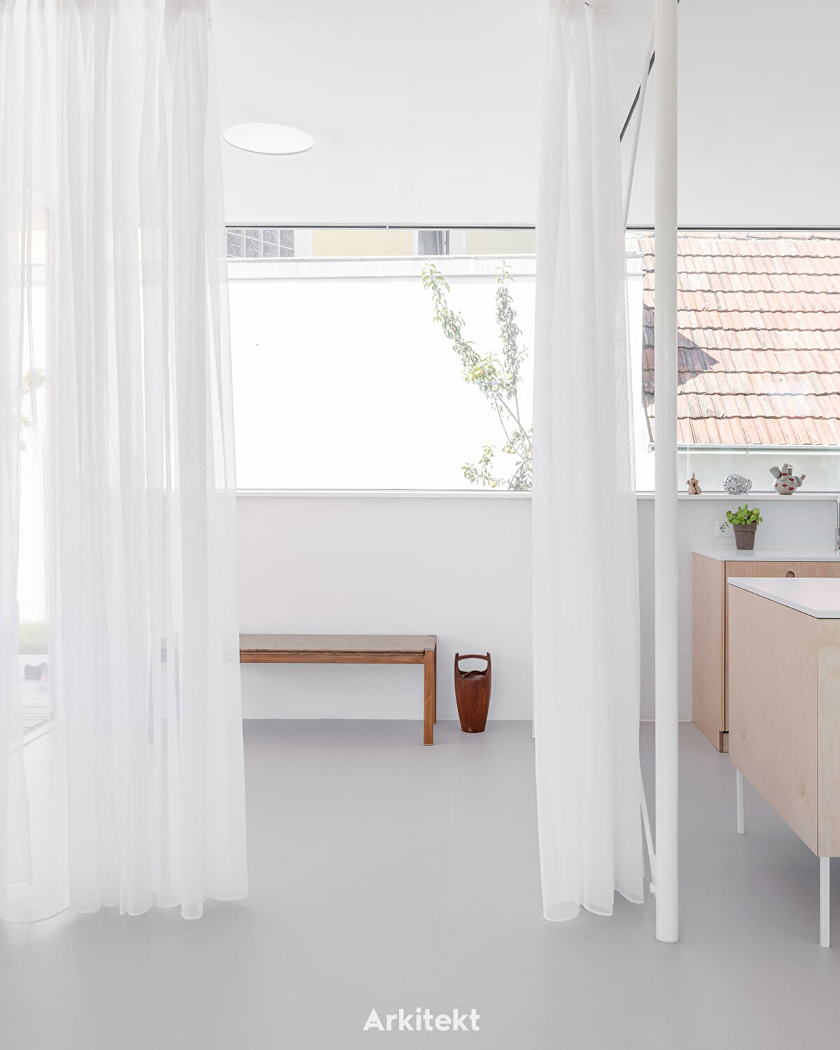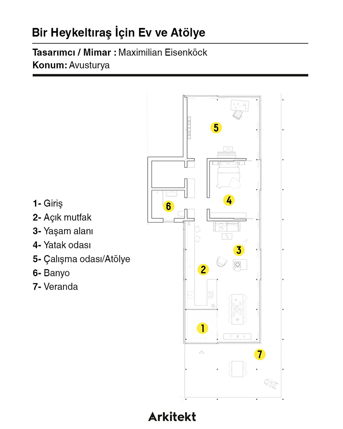 Şeffaflığın ve yalınlığın ön plana çıktığı ev, oldukça basit bir plan şemasına sahip.