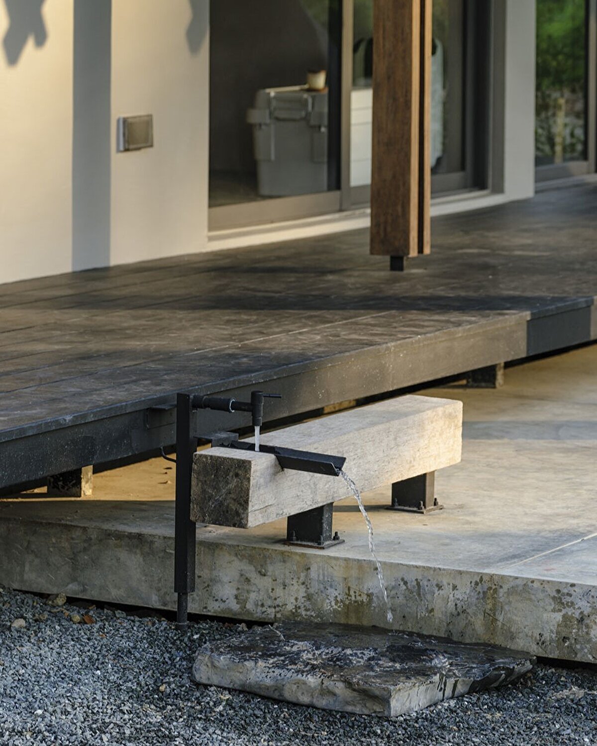 Yapının inşasında yerel malzemeler ve zanaatkârların el işçiliği ön planda tutuluyor. Çelik ve ahşap gibi malzemeler, yerel ustalar tarafından detaylı işçilikle şekillendiriliyor. Ayarlanabilir lambalar ve tekerlekli masalar gibi öğeler, esnek yaşam alanları oluşturmak amacıyla tasarlanıyor. Mutfak lavabosunun altındaki sahte taş kaplama ve özel olarak tasarlanmış ayak yıkama alanı gibi detaylar hem işlevsel hem de estetik katkılar sağlıyor.