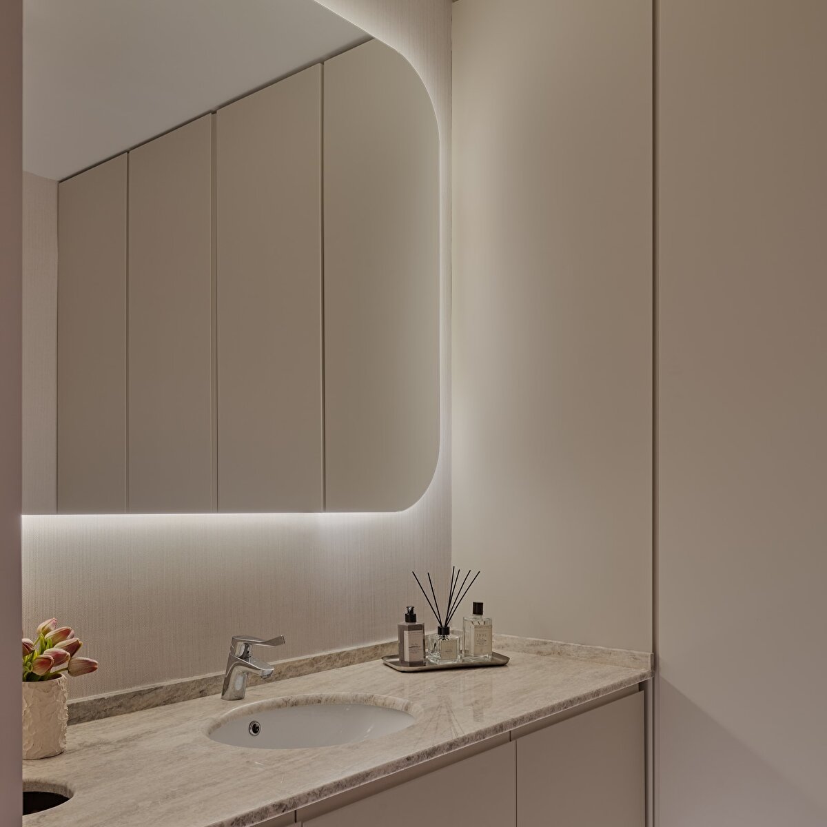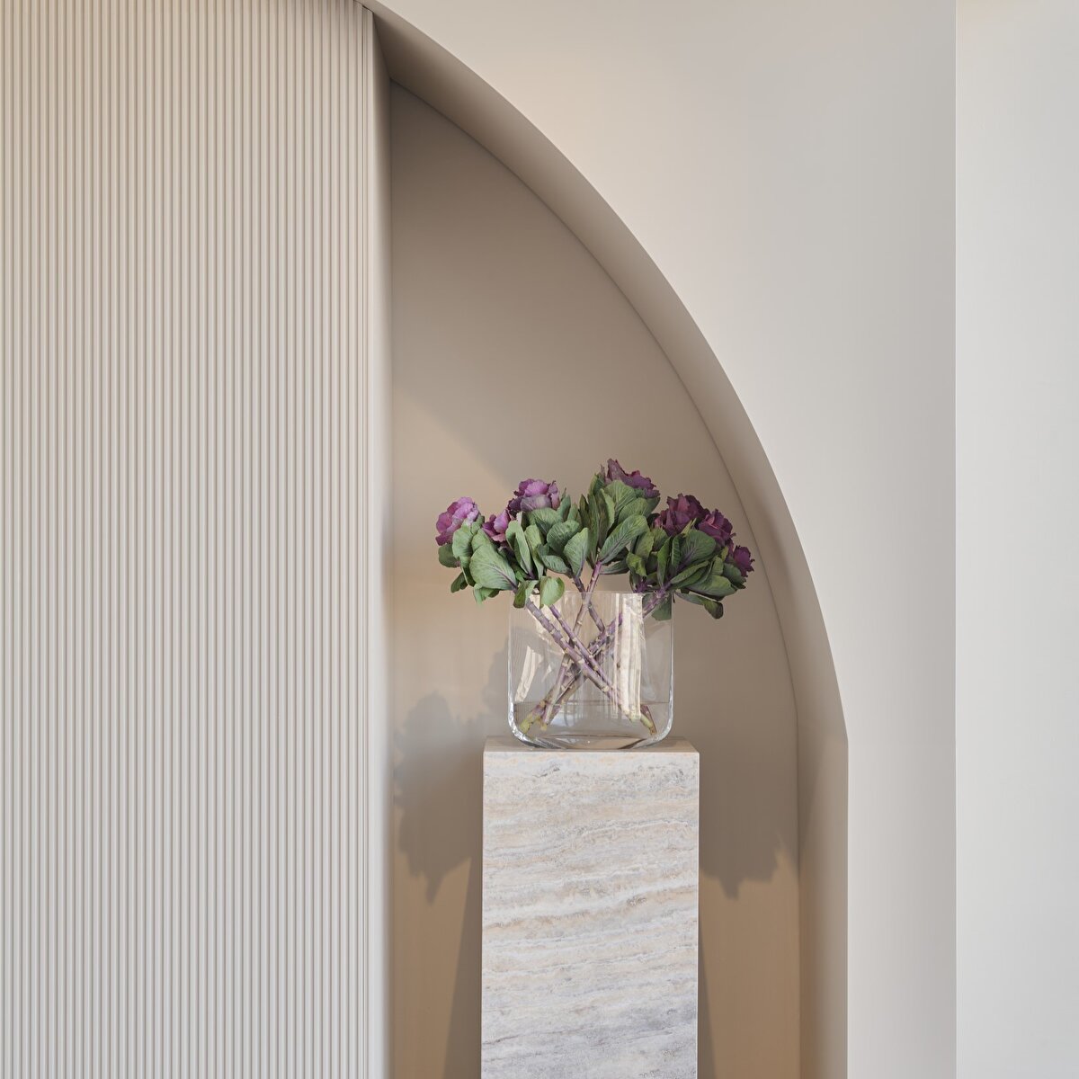 The use of color, the balance of curvilinear and linear lines, and the use of natural stone and wall textures aim to evoke feelings of purification, elegance and tenderness in the user in this clinic with the motto of highlighting 'natural beauty'.