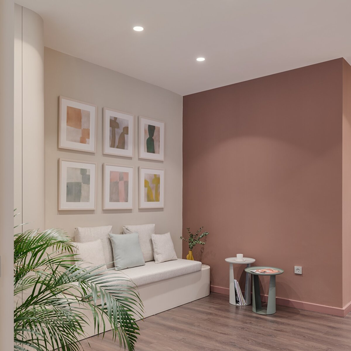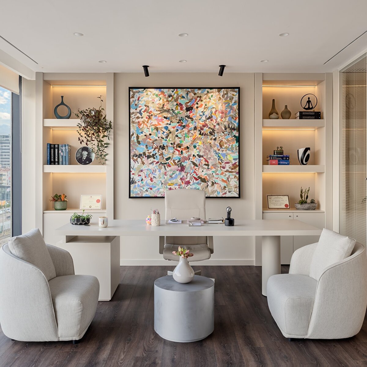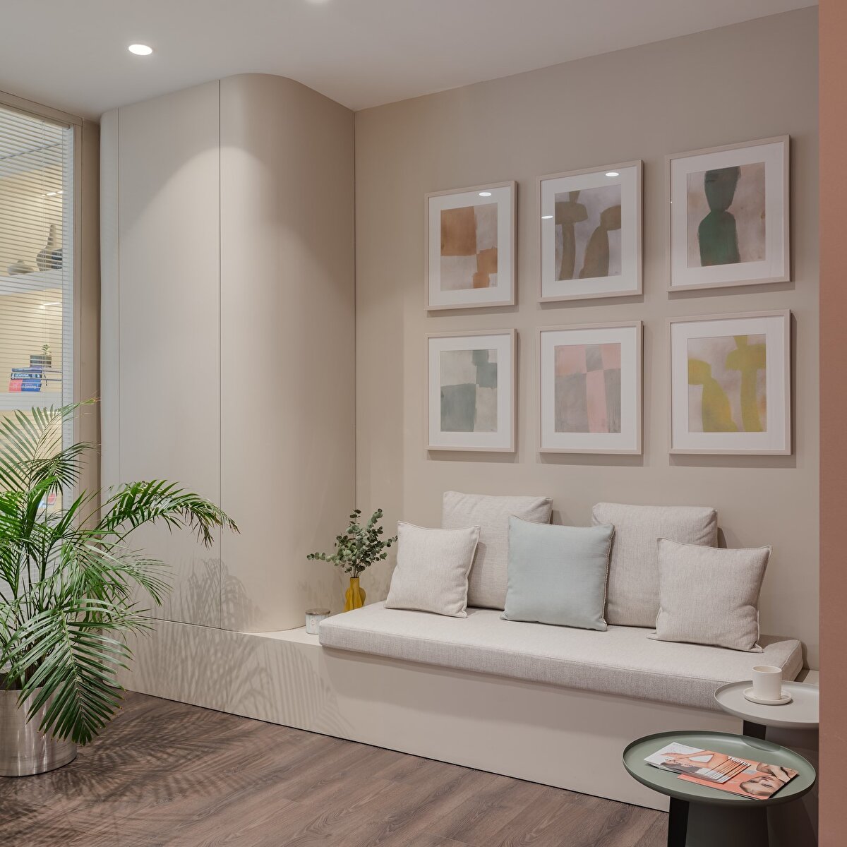 J Dermatology Clinic, designed by Setenay Erkul Architects, is the result of a complete renovation of an office space in an existing commercial building in 2024. The 100 m2 long and narrow plan includes a reception area, a skin care room, a small waiting room, a doctor's room, a WC and a kitchenette. @setenayerk.arch