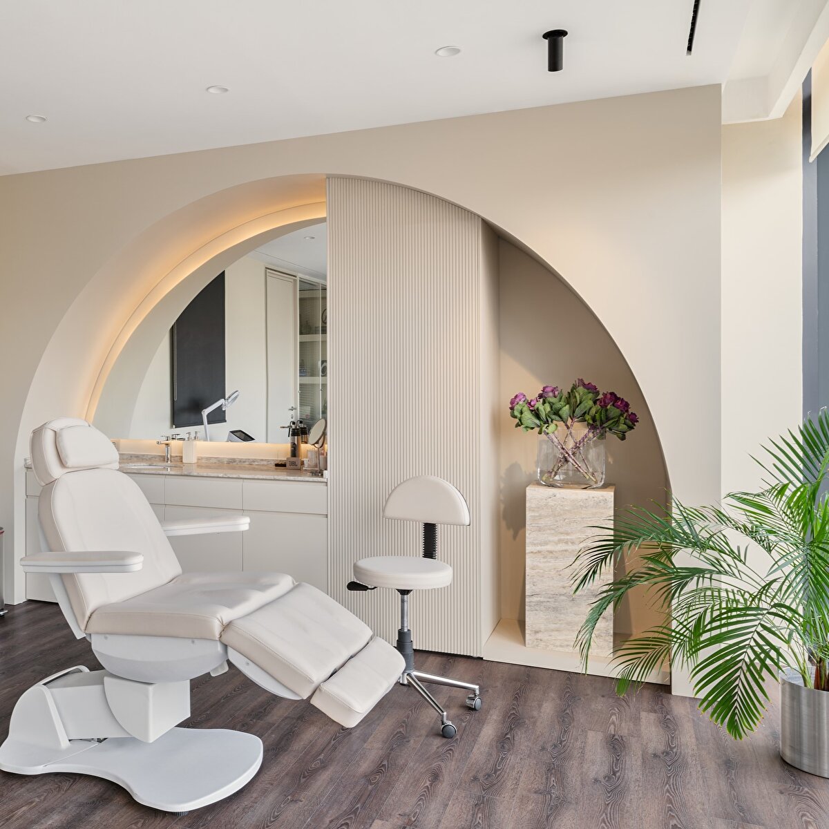 'Doğal güzelliği' öne çıkarma mottosuna sahip bu klinikte renk kullanımı, eğrisel ve doğrusal çizgilerin dengesi, doğal taş ve duvar dokularının kullanımı; kullanıcıda arınma, zarafet ve hassasiyet gibi duyguları uyandırmayı amaçlıyor.