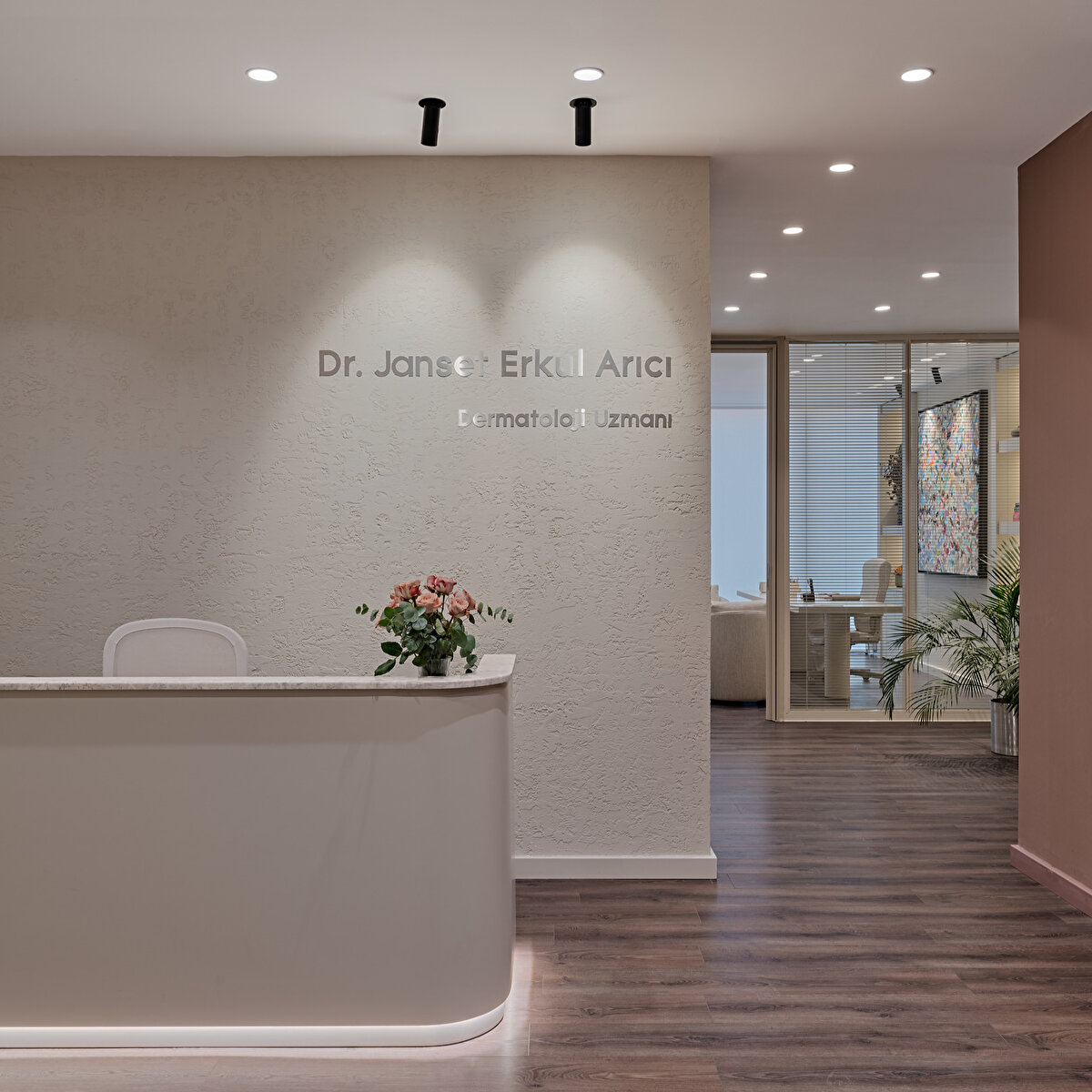 Setenay Erkul Architects tarafından tasarlanan J Dermatoloji Kliniği, mevcut bir ticari binadaki bir ofis alanının 2024'te tamamen yenilenmesi sonucu hayata geçiriliyor. 100 m2'lik dar uzun yerleşimli planda; bir resepsiyon alanı, cilt bakım odası, küçük bir bekleme salonu, doktor odası, WC ve mini bir mutfak yer alıyor. @setenayerk.arch