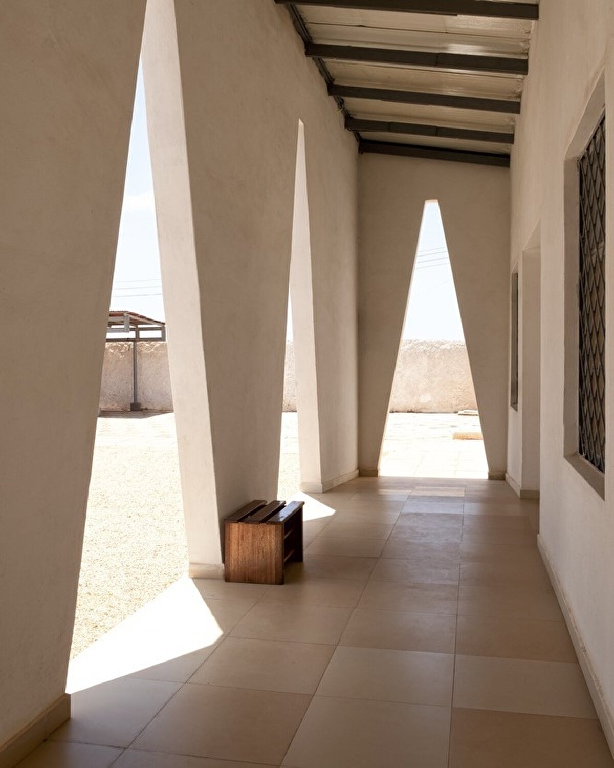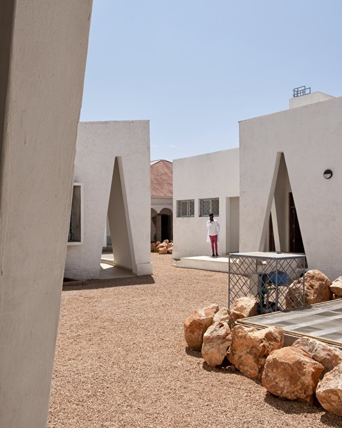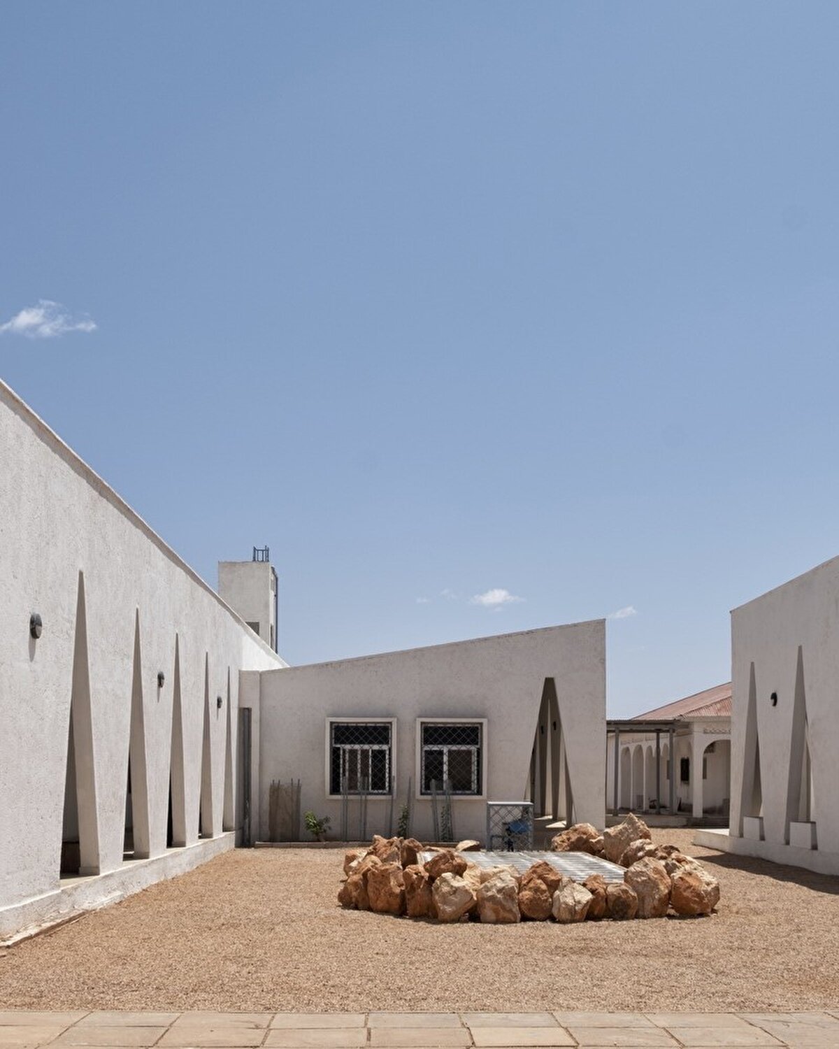Binaların yapımında, yerel olarak temin edilen malzemeler kullanılıyor. Taş duvarlar, sahada yapılan kazılardan elde edilen kayalardan inşa ediliyor, sıva ve kireç badanası gibi geleneksel Somali yüzey kaplamaları uygulanıyor. Sürekli veranda üzerindeki sahte kemerler, geniş açıklıklara ihtiyaç duymadan avlulara tanınabilir bir görsel kimlik kazandırıyor.