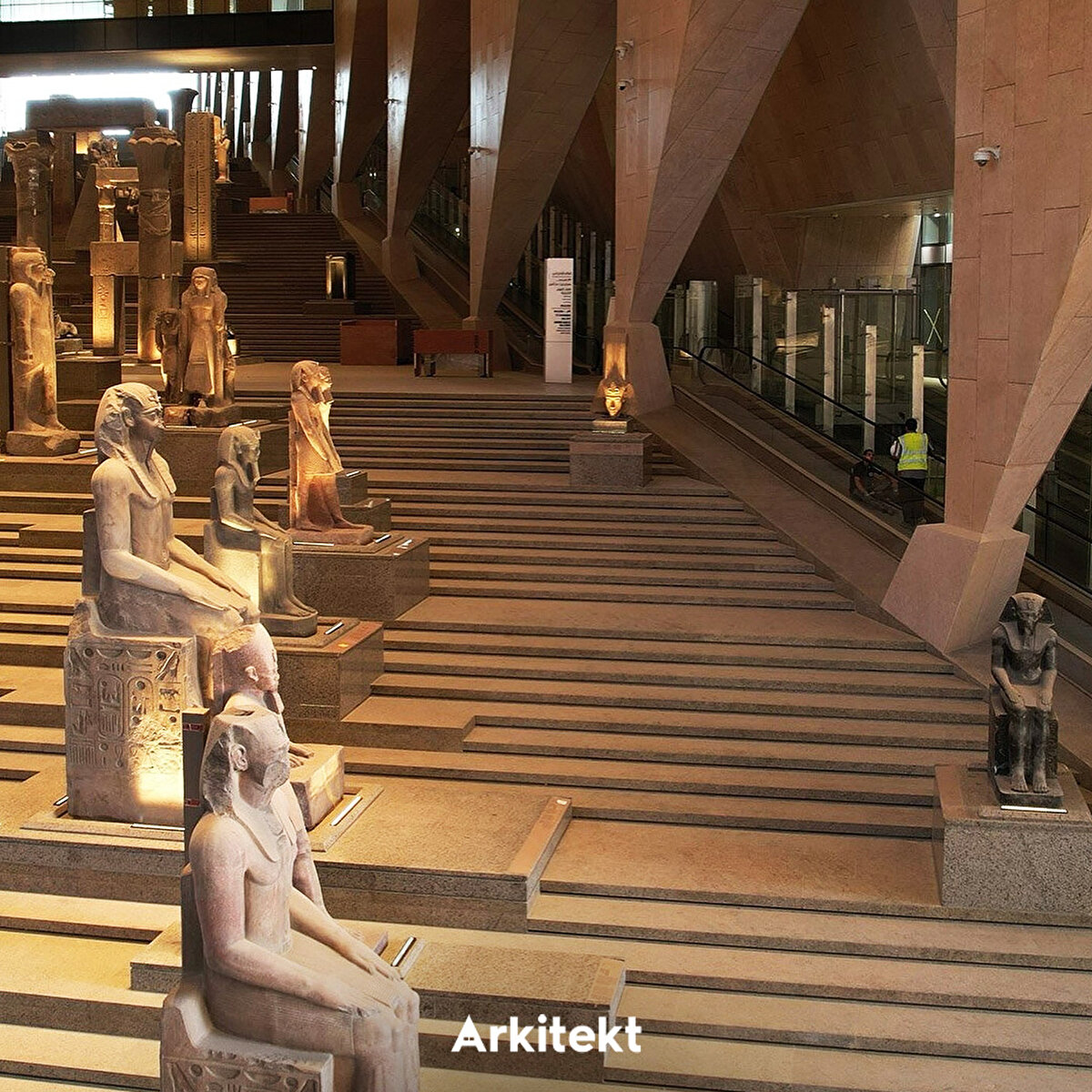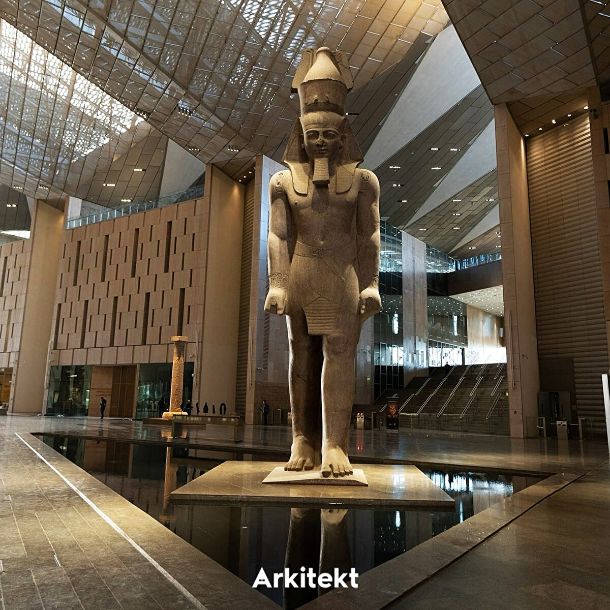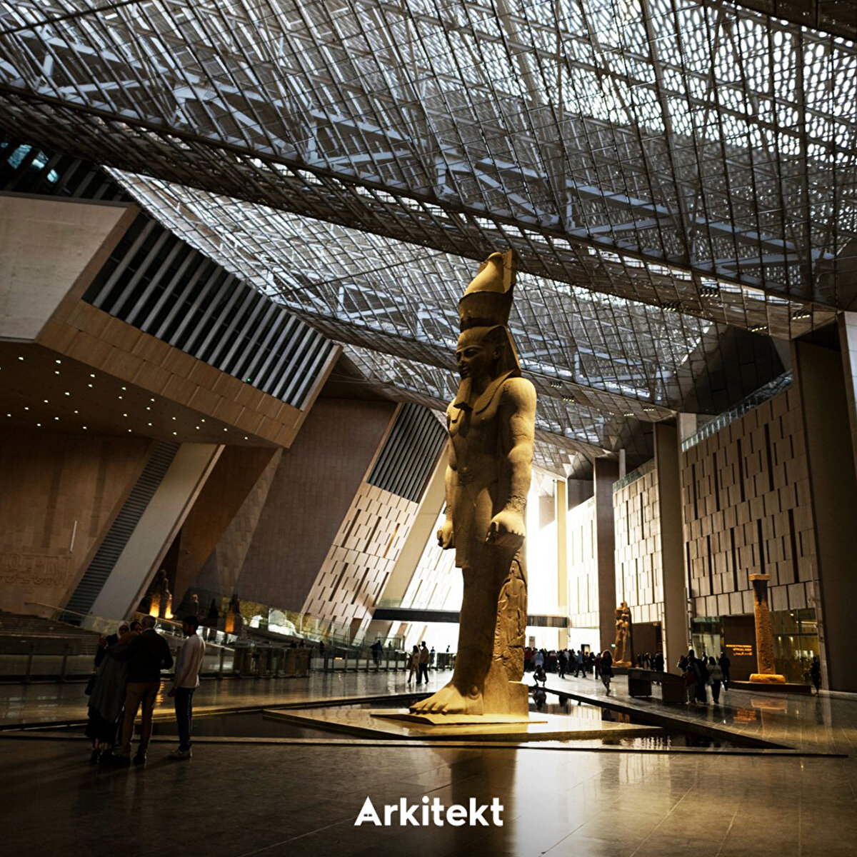 Büyük Mısır Müzesi (GEM), Kahire'de Giza Platosu'nda, Piramitler ile hizalanacak şekilde konumlanıyor ve 100.000'den fazla eseri bünyesinde barındırıyor. @heneghanpeng tarafından tasarlanan müze, 500.000 metrekarelik bir alanda yer alıyor ve yapıyı üç piramitle hizalanan görsel ve mekânsal akslar üzerinden kurguluyor. Altı kat yüksekliğindeki Büyük Hol'de, 3.200 yıllık II. Ramses heykeli difüz doğal ışık alan bir çatı altında ziyaretçileri karşılıyor ve ana sergi katına bağlanan merkezi merdiven boyunca Giza anıtlarına çerçeveli manzaralar sunuyor. Müze içinde yer alan 7.500 metrekarelik Tutankhamun Galerisi, koleksiyonun tamamını 1922'den bu yana ilk kez bir arada sergiliyor. - The Grand Egyptian Museum (GEM) is located on the Giza Plateau in Cairo, aligned with the Pyramids, and houses over 100,000 artifacts. Designed by @heneghanpeng, the museum occupies an area of 500,000 square meters and is structured around visual and spatial axes aligned with three pyramids. In the six-story-high Grand Hall, a 3,200-year-old statue of Ramses II welcomes visitors under a roof that diffuses natural light and offers framed views of the Giza monuments along the central staircase leading to the main exhibition floor. The 7,500-square-meter Tutankhamun Gallery within the museum displays the entire collection together for the first time since 1922.