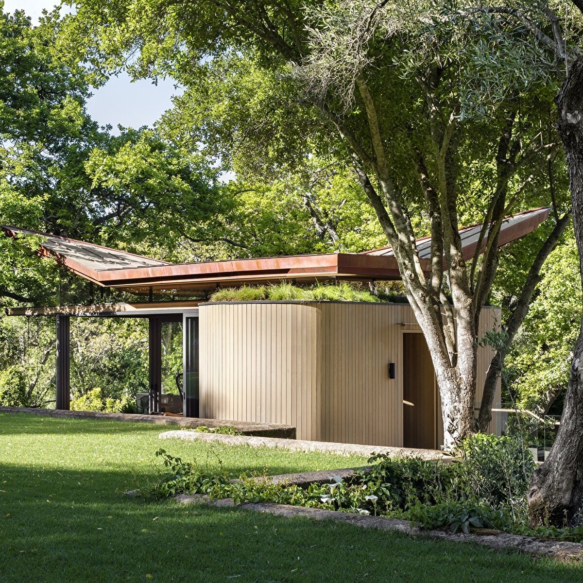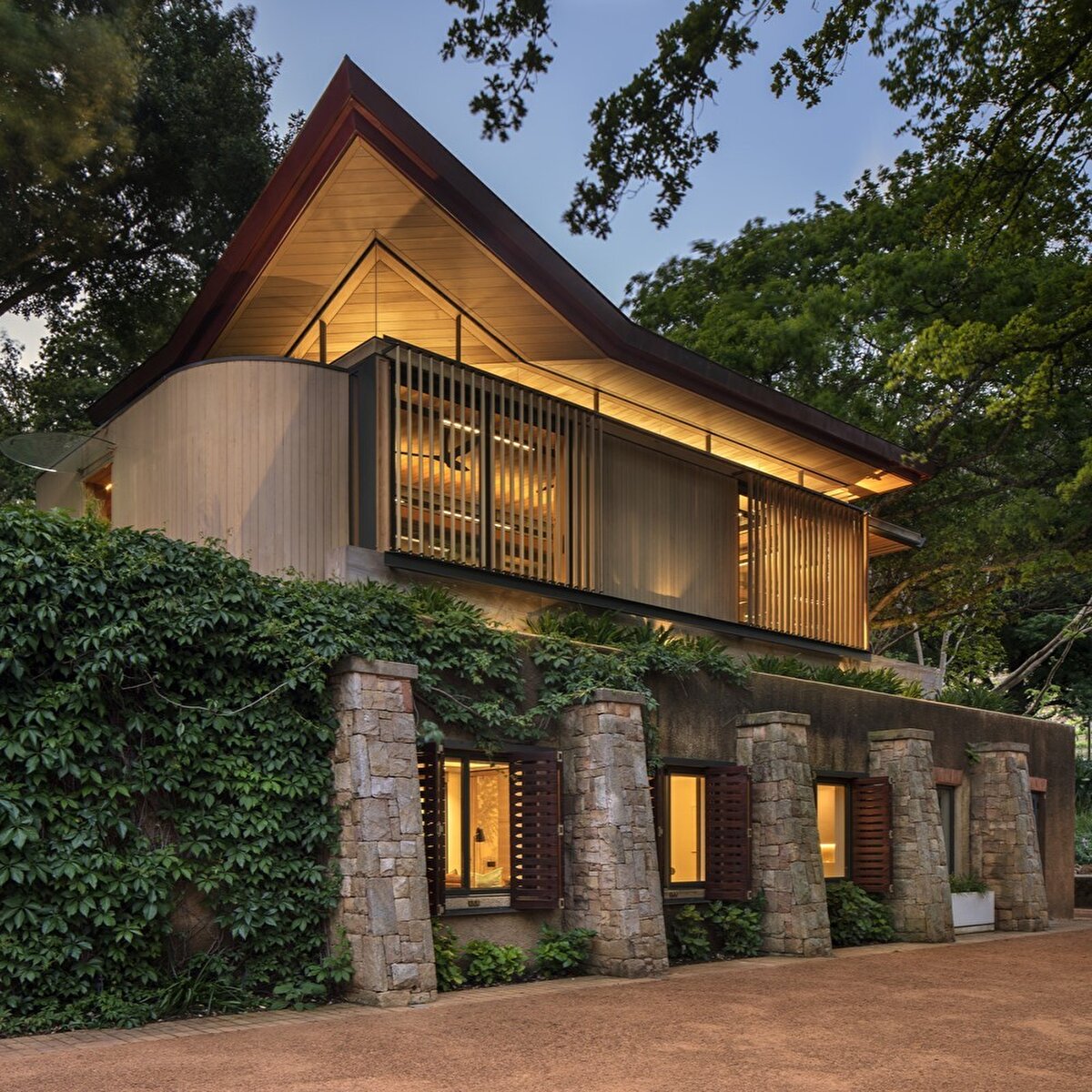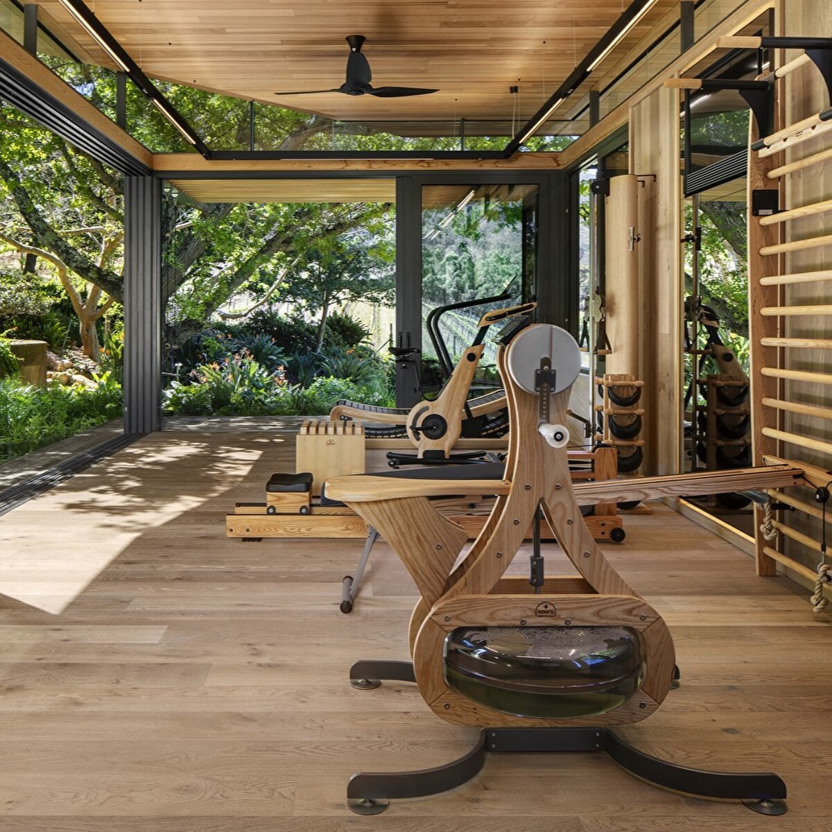 Malan Vorster Mimarlık Ofisi tarafından, Constantia Cape Town'daki büyük bir aile mülküne spor salonu pavyonu eklenmesi planlanıyor. Mimarlar, yeni yapının bahçeler üzerindeki etkisini azaltmak için eski bir konuk evi ve depolama alanının beton döşemesi üzerine inşa etmeye karar veriyor.