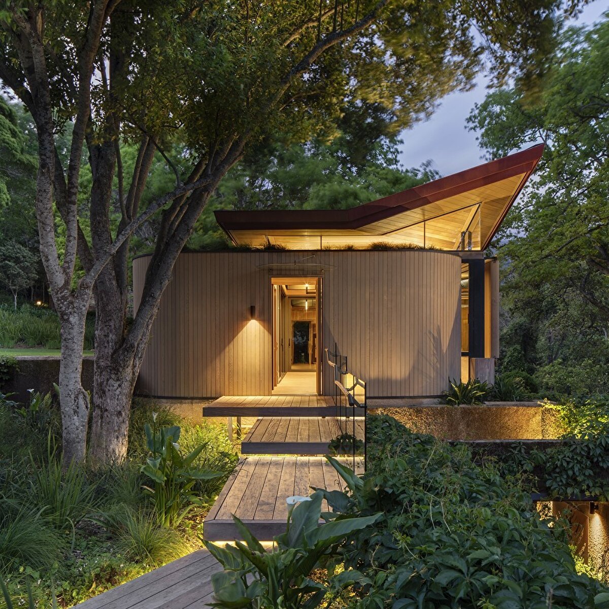 Çelik ve ahşap inşaat yöntemleri kullanılarak, beton ve diğer ıslak işlerin etkisi en aza indiriliyor. Bu yöntem, inşaat sürecinin çevresel etkisini azaltıyor. Aynı müşteri için daha önce inşa edilen ağaç ev, malzeme seçimi ve detaylandırma konusunda ilham kaynağı oluyor.
