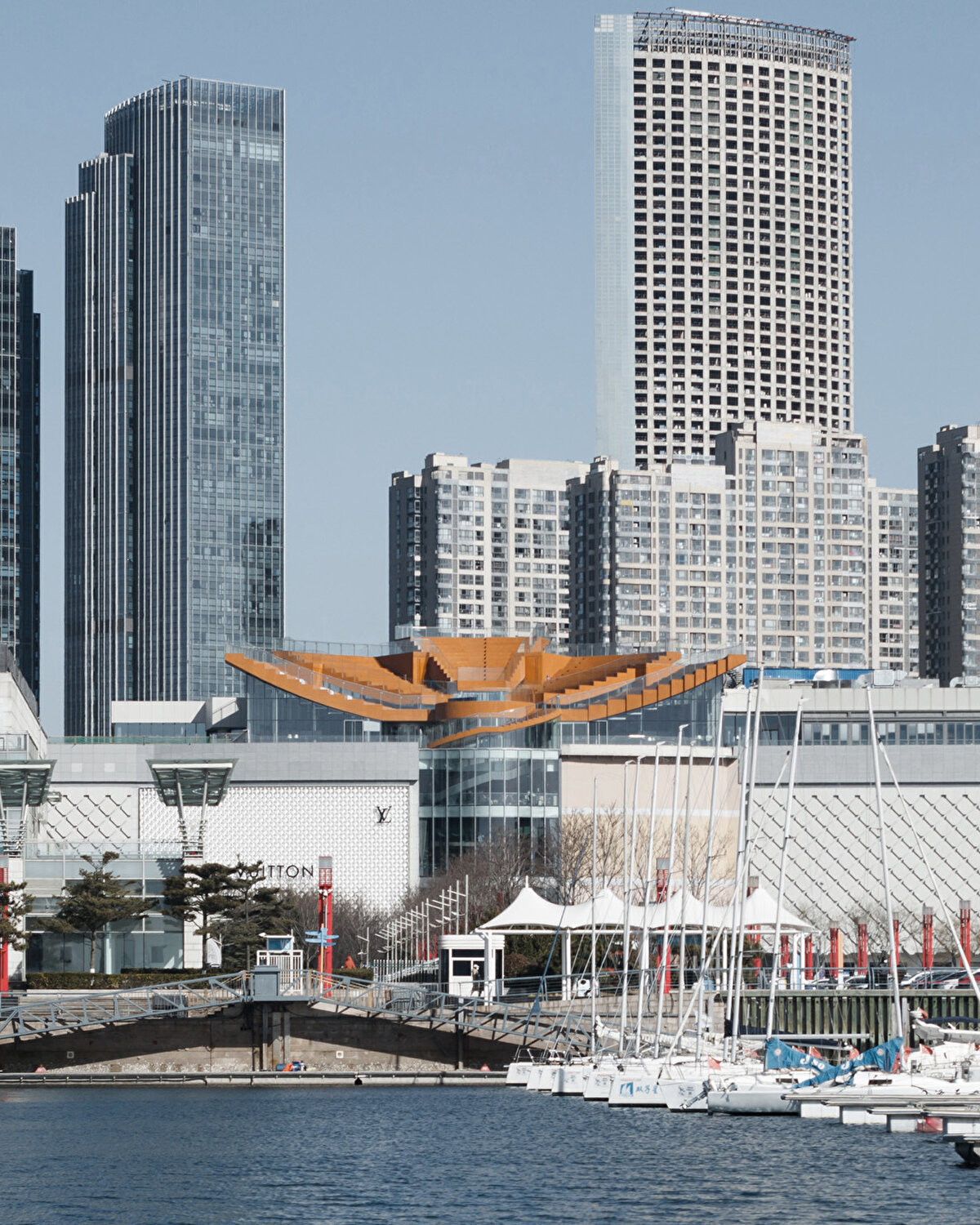 Bu proje, alışveriş merkezinin daha önce kapalı olan çatı katını, şehrin körfez manzaralarından ve ılıman ikliminden faydalanan erişilebilir bir kamusal alana dönüştürüyor. Başlangıçta özel bir VIP salonu olarak planlanan bu alan, artık hem kamusal bir amfi tiyatro hem de gözlemevi olarak hizmet veriyor. SKYBOWL, ticari alanları kamusal alanlarla birleştirerek topluluk ve kapsayıcılığı teşvik ediyor. Amfi tiyatronun kentsel dokuya entegre edilmesi, alışveriş merkezinin çevresiyle olan bağlantısını güçlendiriyor ve Qingdao'nun sosyal ve kültürel hayatına katkıda bulunuyor.