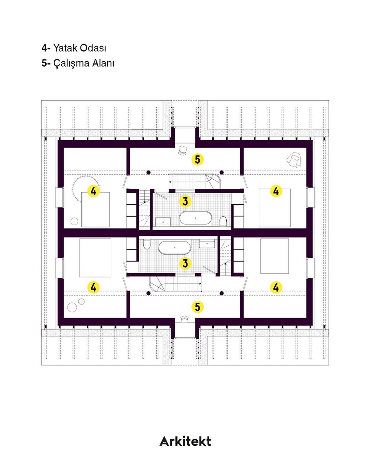 Sazdan çatı, çatı eğimi ve destek yapısının kalınlığı gibi parametreleri belirleyerek tasarlanıyor. İki yerleşim birimi kuzey ve güney cephelere bakacak şekilde konumlanıyor. Kuzeydeki birim mevcut bina ile birlikte kullanılırken, güneydeki birim kiraya veriliyor. Yeni bina, yerel gereksinimlere uygun olarak caddeye paralel hizalanıyor. Becker, her iki dairenin de zemin kattan çatıya kadar uzanması nedeniyle sazdan çatının her kattan farklı deneyimlenebileceğini belirtiyor.