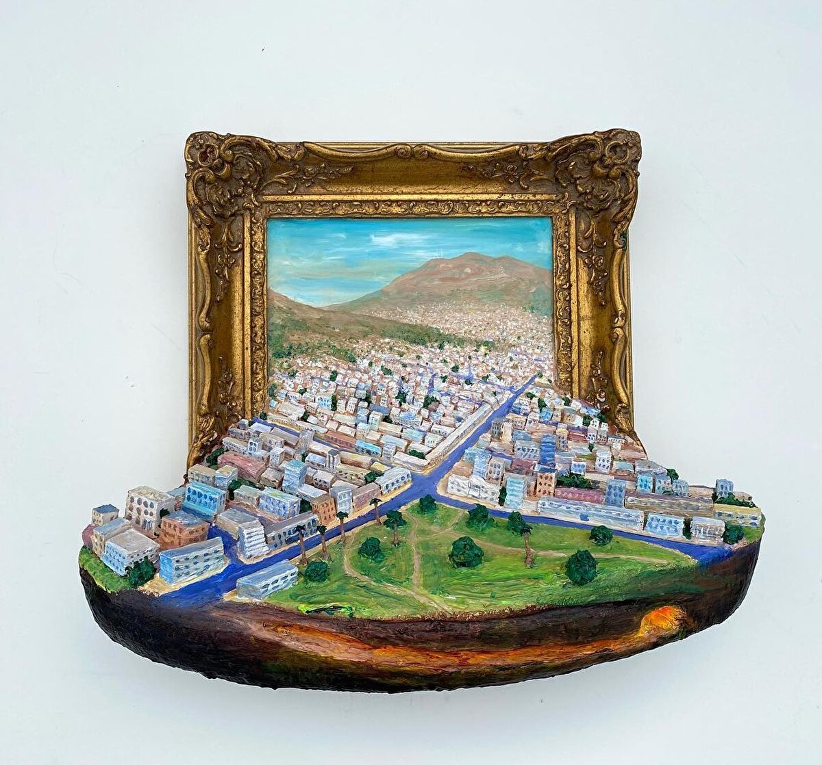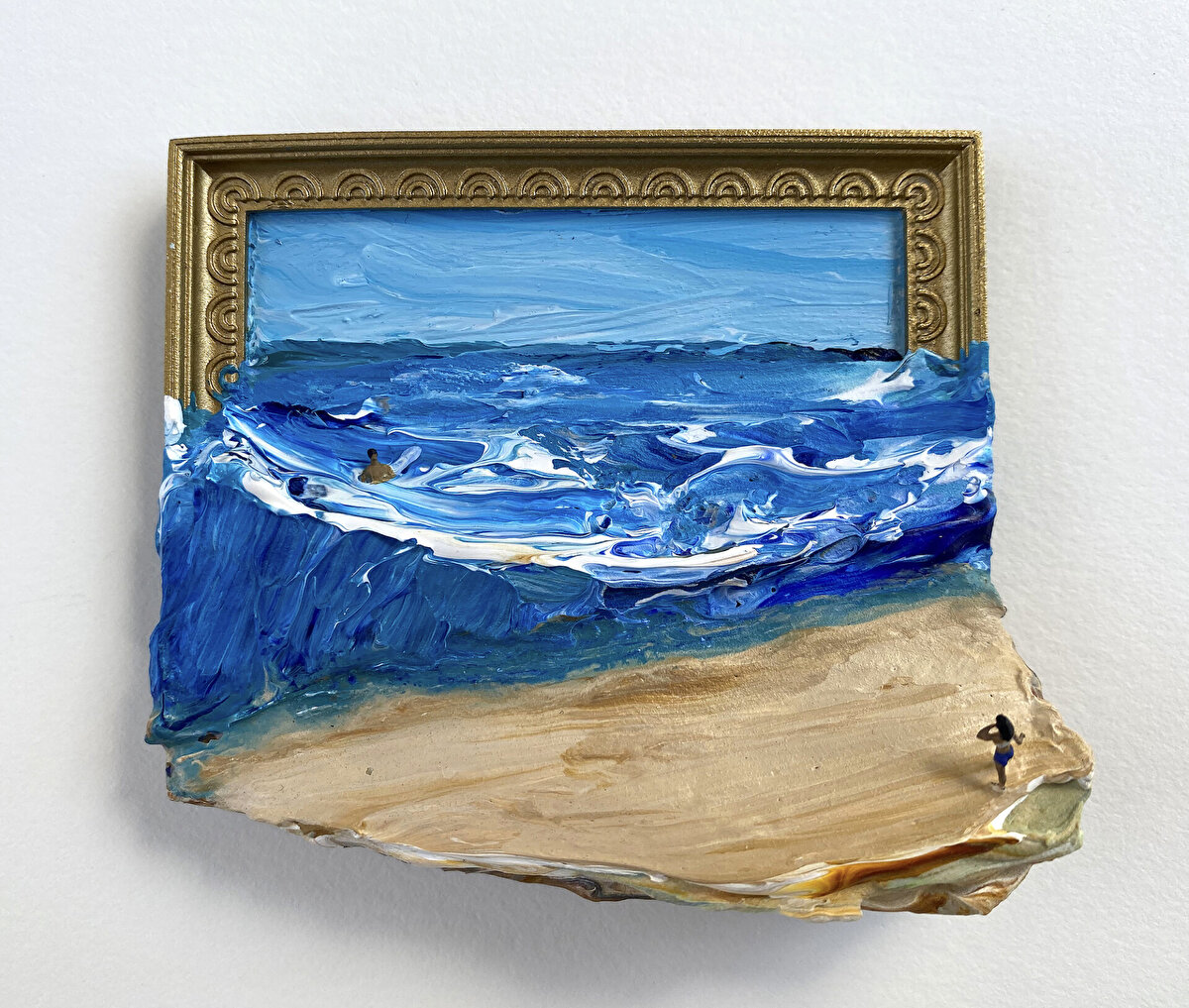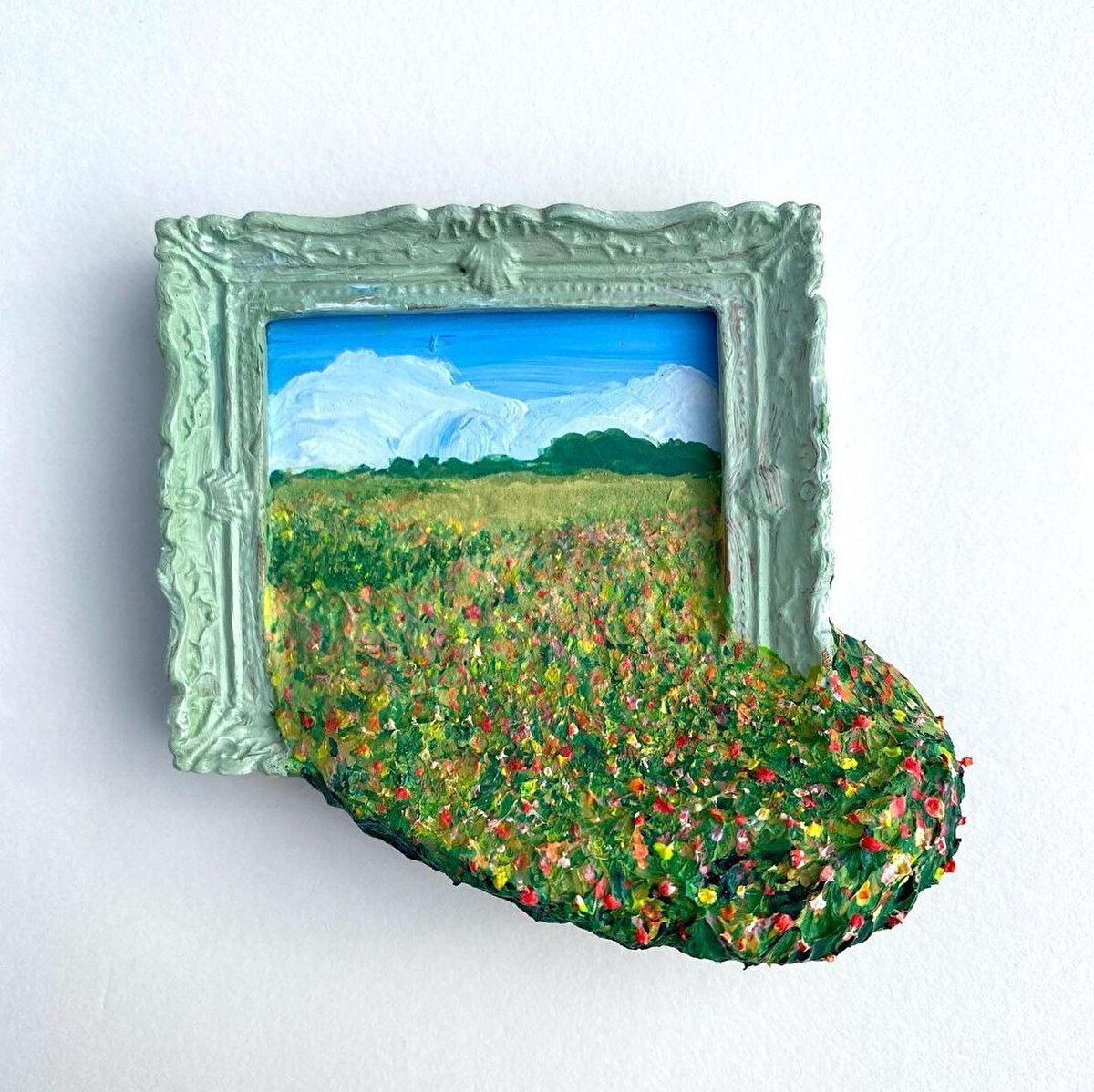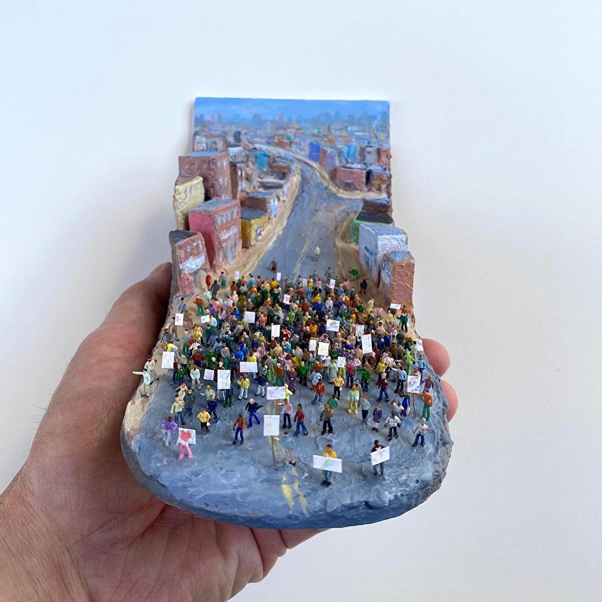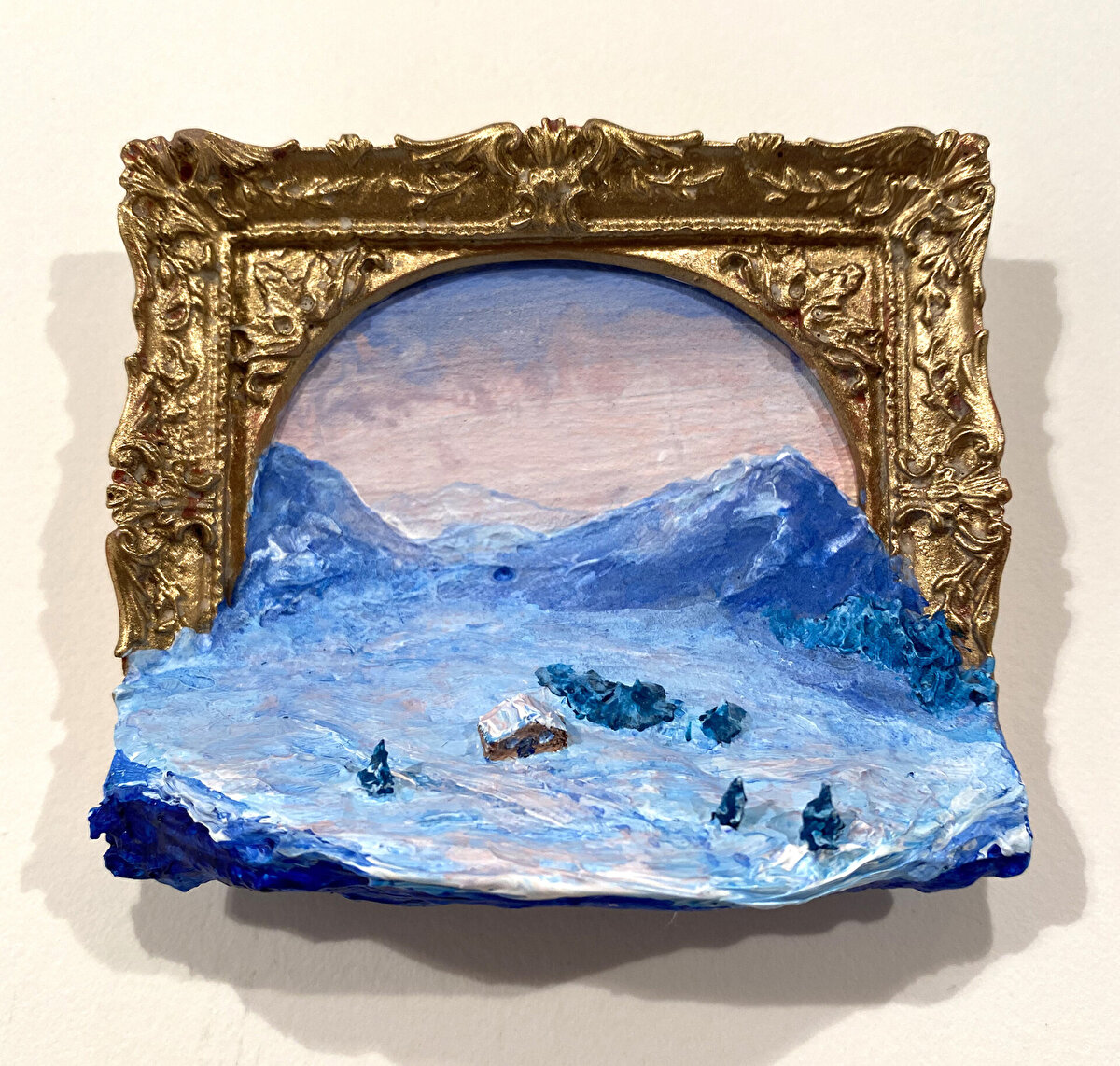 Barry Hazard insan elinin içine sığabilecek ölçekte geniş manzaraları tasvir eden minyatür resimler oluşturuyor. Hazard, kalın akrilik boya ile heykelsi manzaralar oluştururken yabani çiçekler, kumsallar ve karla kaplı zirveler gibi tablonun dışına çıkan ayrıntılar ekliyor.