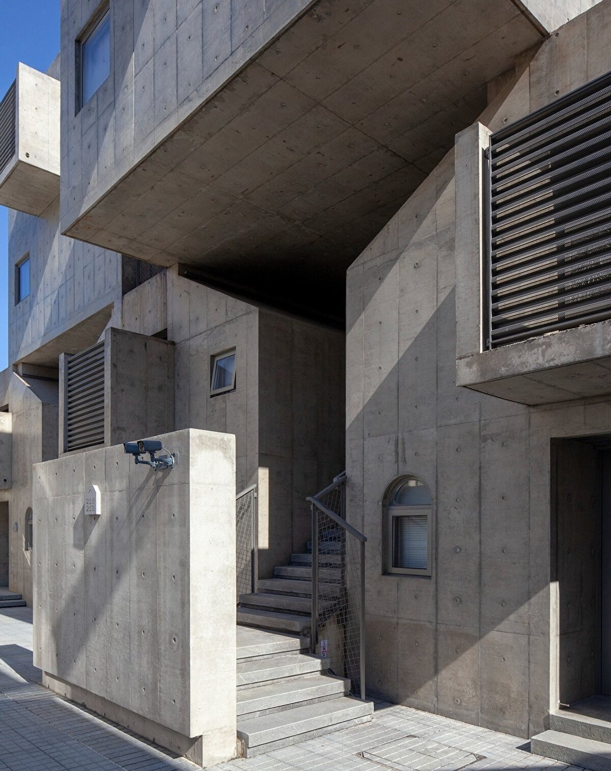 İç avlu, temizliği ve bakımı kolaylaştırmak amacıyla yükseklik farkı olmayan sert bir döşeme ile kaplanıyor.