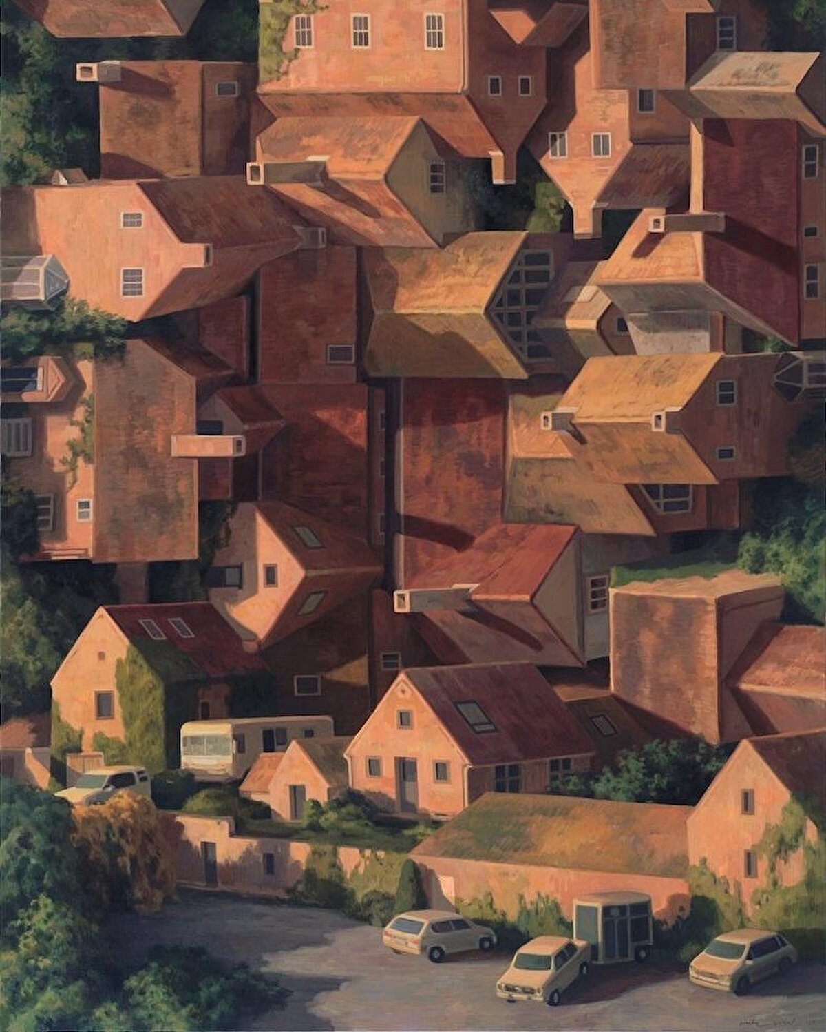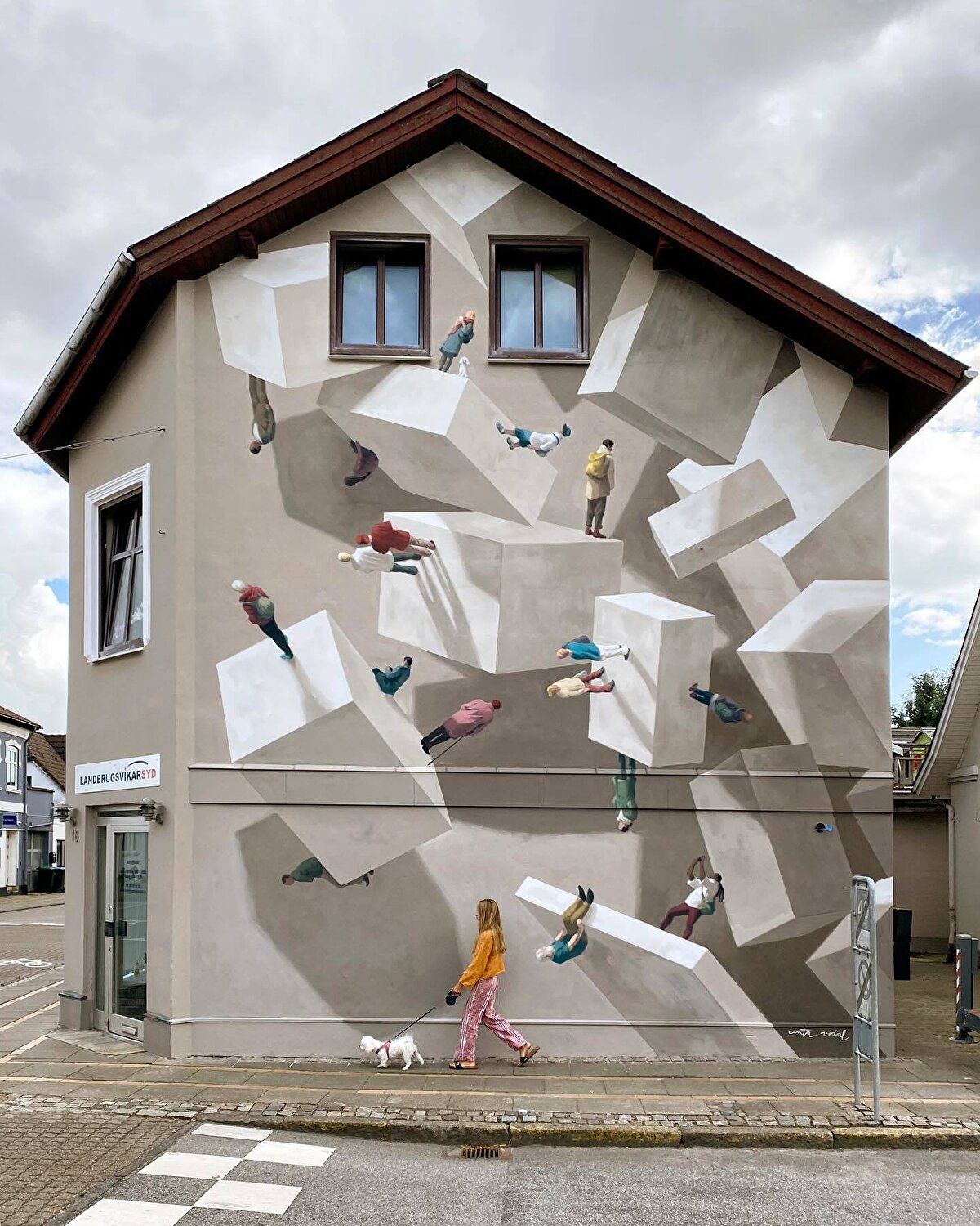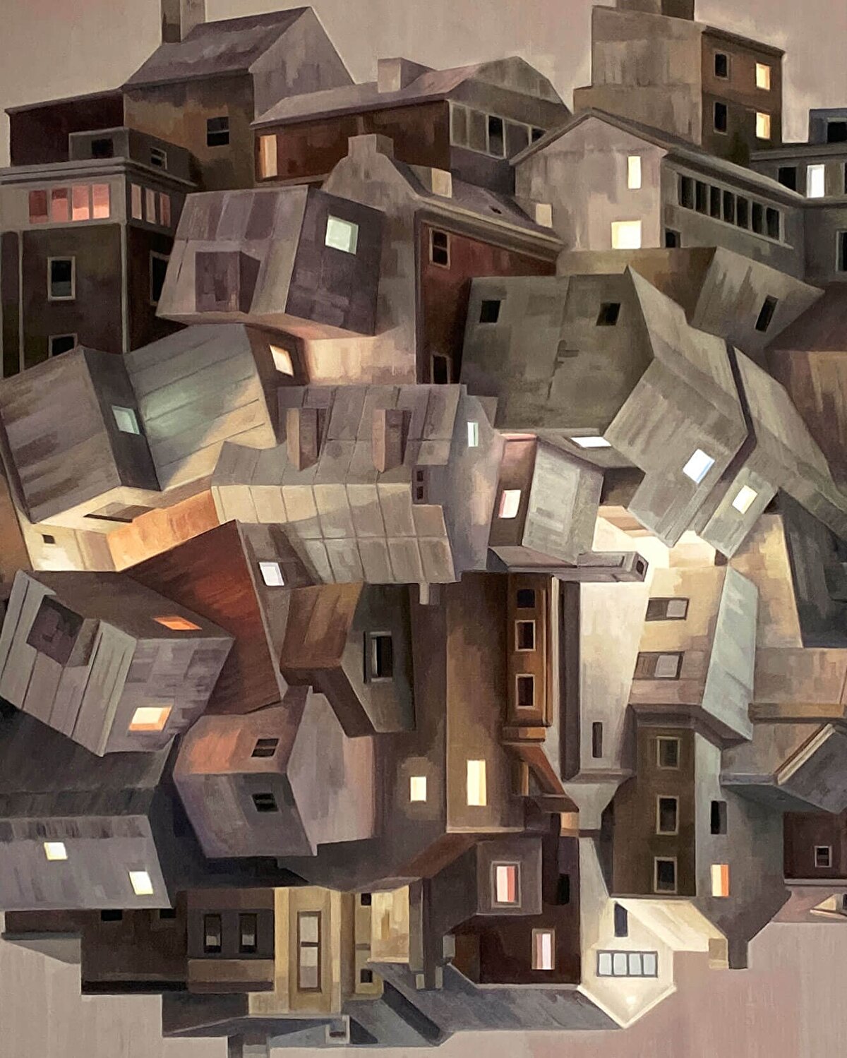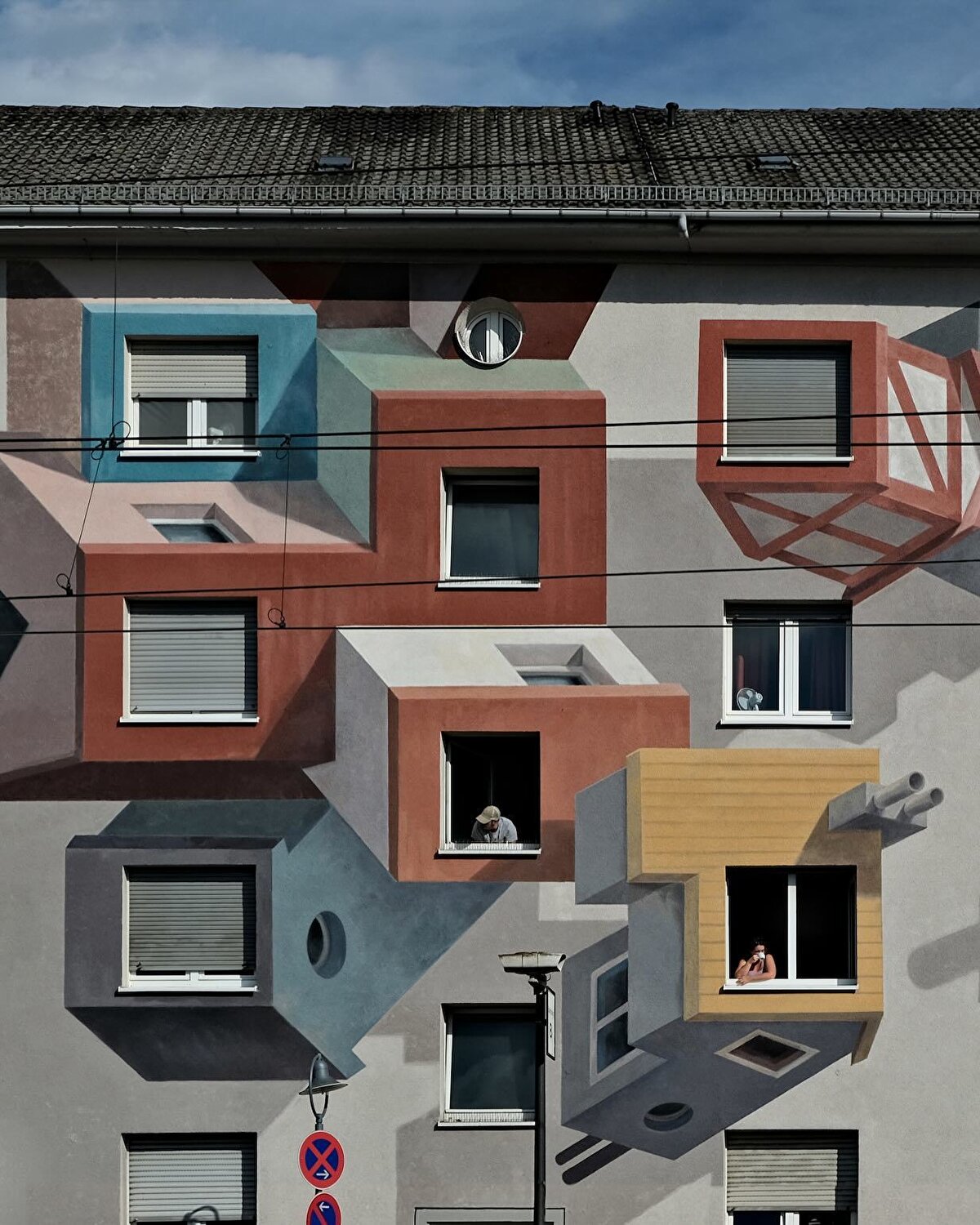 Cinta Vidal @cinta_vidal, mimari yapıları ve gündelik yaşam sahnelerini çoklu perspektiflerle yorumluyor. Çalışmalarında yön, ölçek ve mekân algısıyla oynayarak birey ve yapı ilişkisini yeniden kurguluyor. Yerçekimi kurallarını devre dışı bırakan bu kompozisyonlar, sabit bir bakış noktasına bağlı kalmadan mekânı yeniden tanımlıyor.